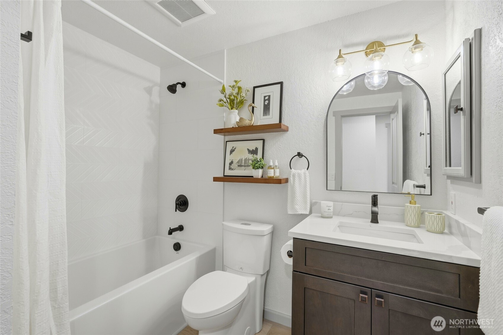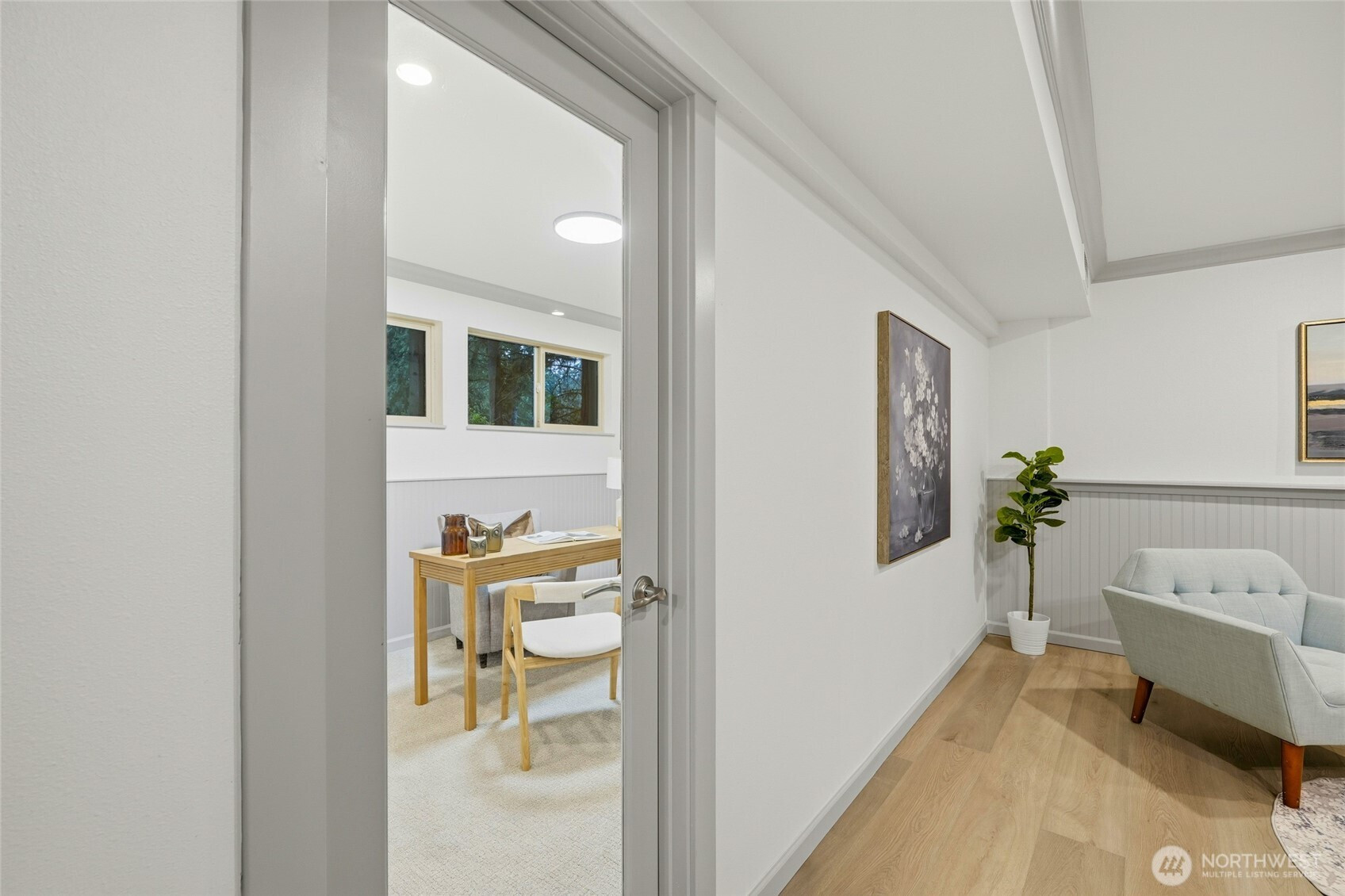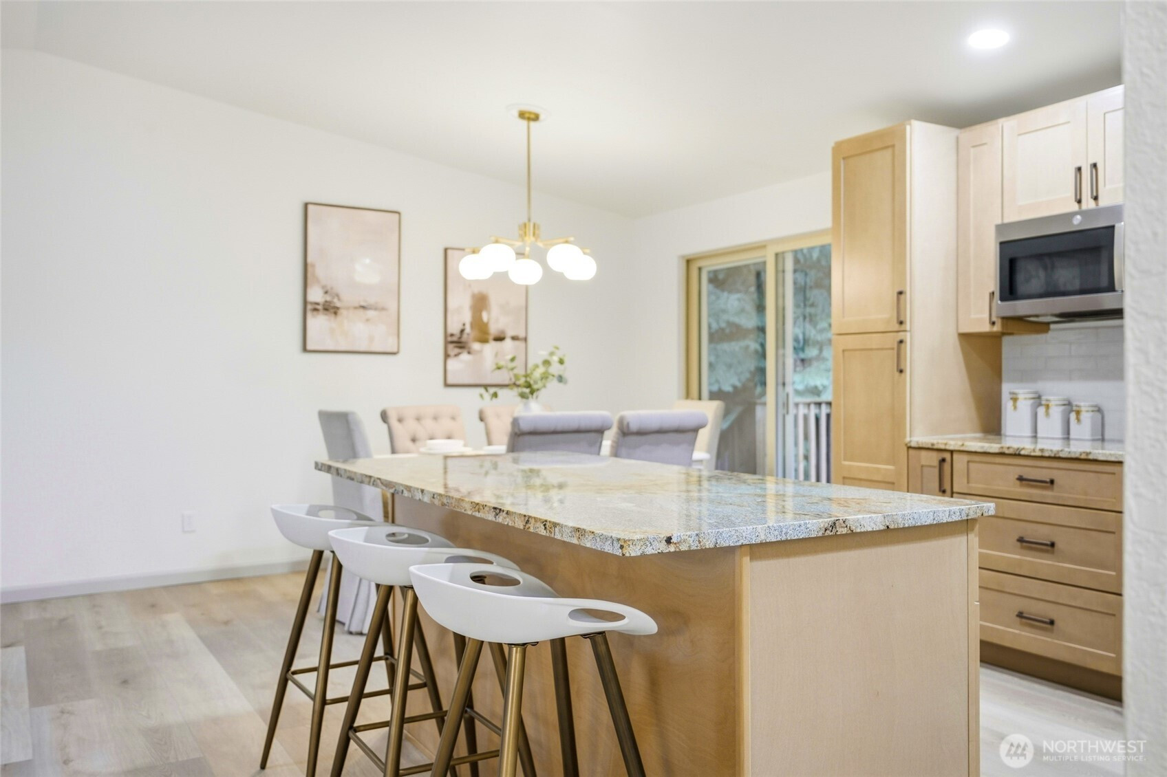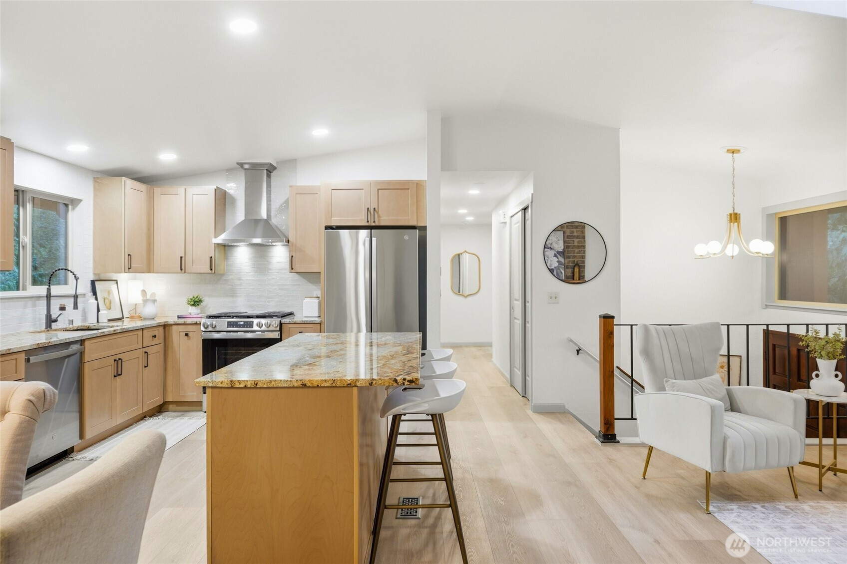 Elegantly updated 3-bedroom, 3-bath home with bonus room & office, blending modern style with everyday functionality. The open-concept living areas feature vaulted ceilings, skylights, two wood-burning fireplaces, creating bright & inviting spaces. The entertainer’s kitchen offers artisanal timber cabinetry, granite countertops, new appliances, & workstation sink. Enjoy LVP flooring throughout the main living areas, new carpet in bedrooms & office, fresh interior paint, & new shaker-style doors & trim. Primary suite includes a ¾ bath with custom tile & closet organizer. Main bath features a soaking tub with tile surround. New roof, exterior paint, rebuilt cedar & composition decks. Secluded cul-de-sac location near Woodinville Town Center.