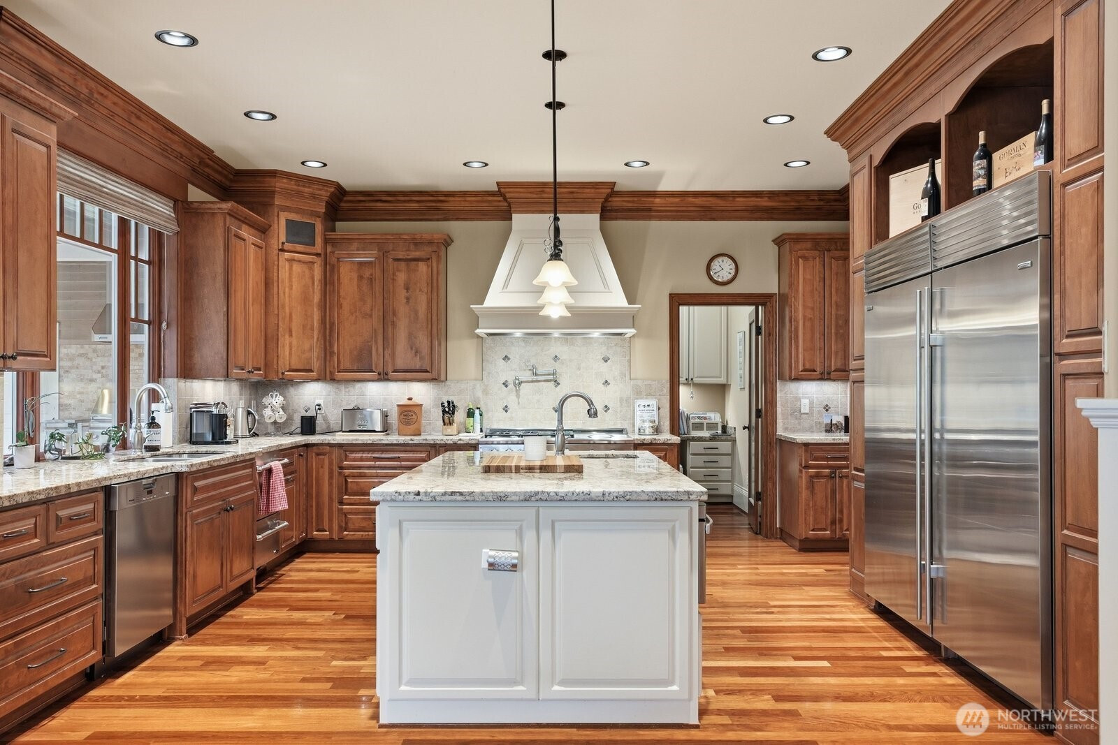 The search is over; this is the one you’ve been waiting for! Striking quality built timeless residence atop Hollywood Hill minutes to Woodinville’s renowned wine country. With over 7600* sq ft on a sun drenched 2-plus acre lot down a private lane, this 5-6* bedroom/4.5 bath home exudes exquisite quality throughout. With 2 stories and a fully finished daylight basement, epicurean kitchen with professional appliances, masterful primary suite, dedicated media room, huge bonus room, tremendous rec room, 2 laundry rooms & private office area. Extensive Brazilian cherry floors grace the main level, exquisite, gratuitous millwork, thick crown molding, wide wood-wrapped hallways and abundant natural light, all showcase the feeling of Home. The sweeping curved iron clad stairway rests proudly in the lighted rotunda open to the floor above. Covered deck with heaters and covered cooking station with high end Twin Eagles BBQ. 1500* sq ft opportunity space under the 4 car garage, there’s plenty of room for everyone and everything. This is more than a home—it is a private estate designed for living beautifully.