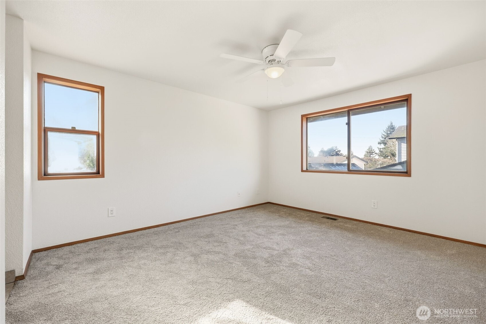 Enjoy peace, privacy, and space in this beautifully refreshed Burien home offering 3,130 sq ft, privately located at the end of a quiet road. Recent updates include new interior paint, new carpet, and refinished hardwood floors throughout the main level. The spacious layout features an open living room with a wood-burning fireplace, a separate dining room, and an additional bonus room providing extra living space, plus a dedicated office with a half bath on the main level. The upper level offers a primary bedroom with an ensuite bath and walk-in closet, three additional bedrooms, and a full bath with laundry. The fully finished basement with high ceilings provides expansive space for recreation or guest accommodations. Additional highlights include a 2-car attached garage and a quiet end-of-road setting close to parks, shopping, dining, and commuter routes.
