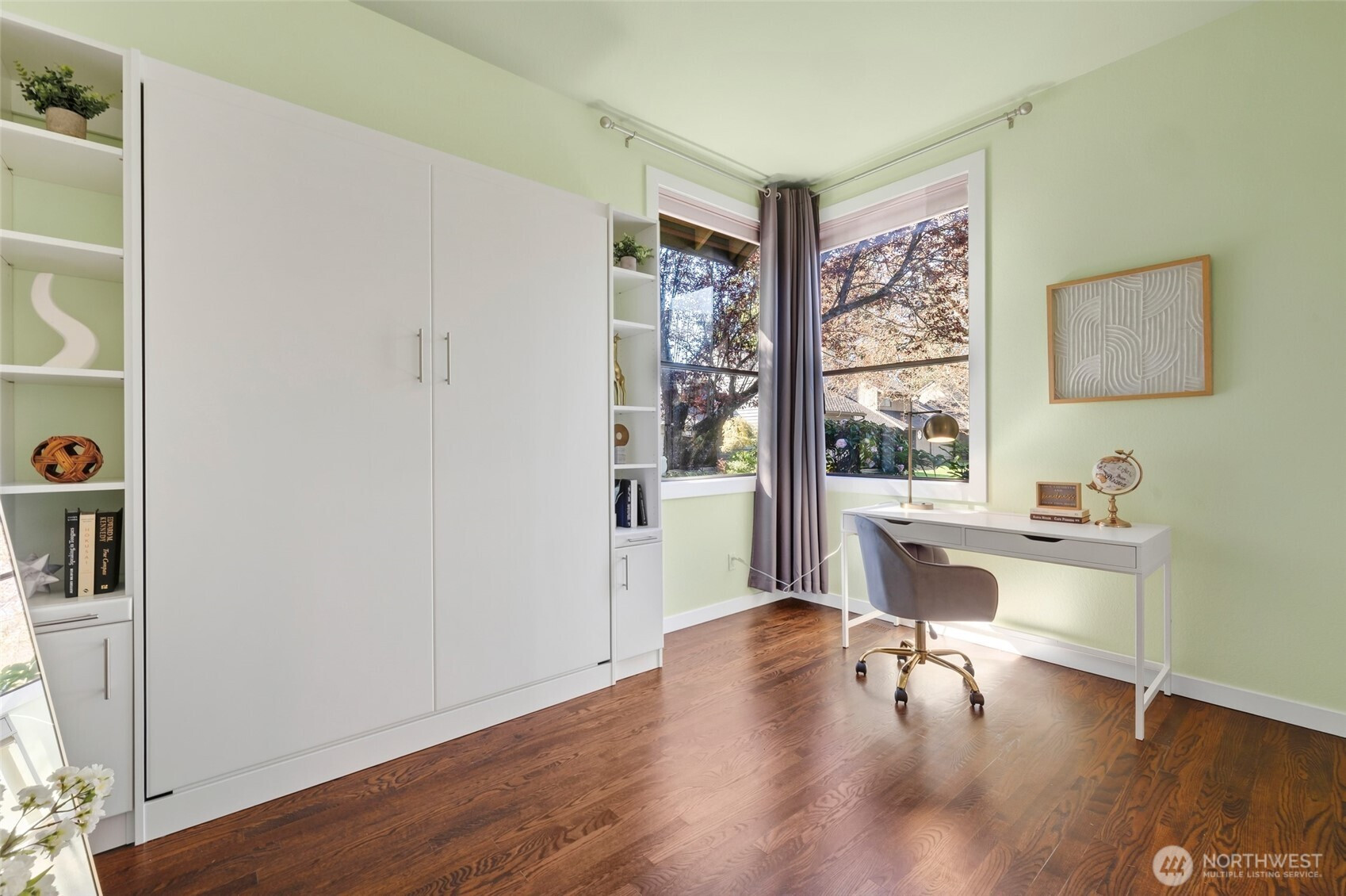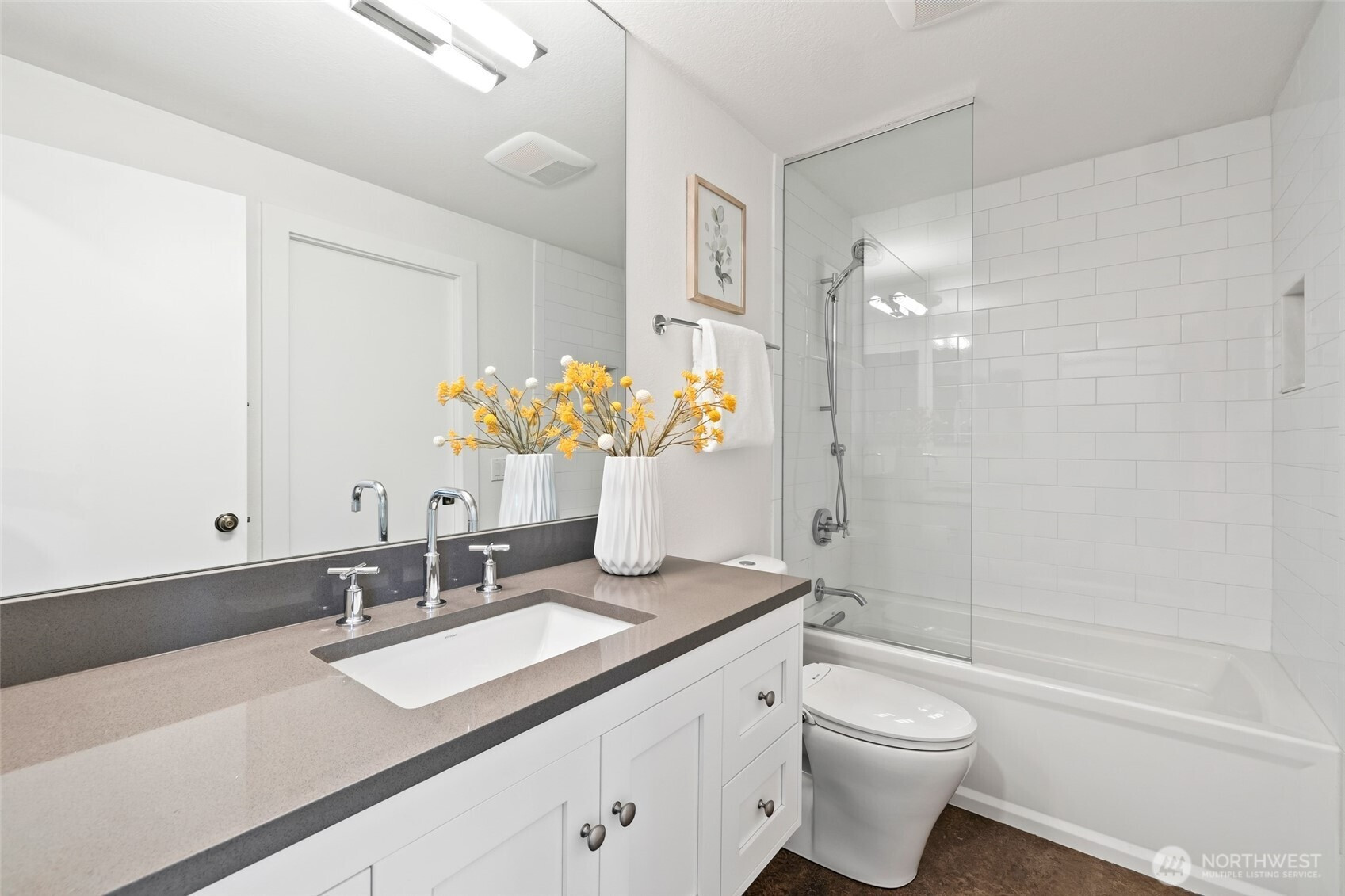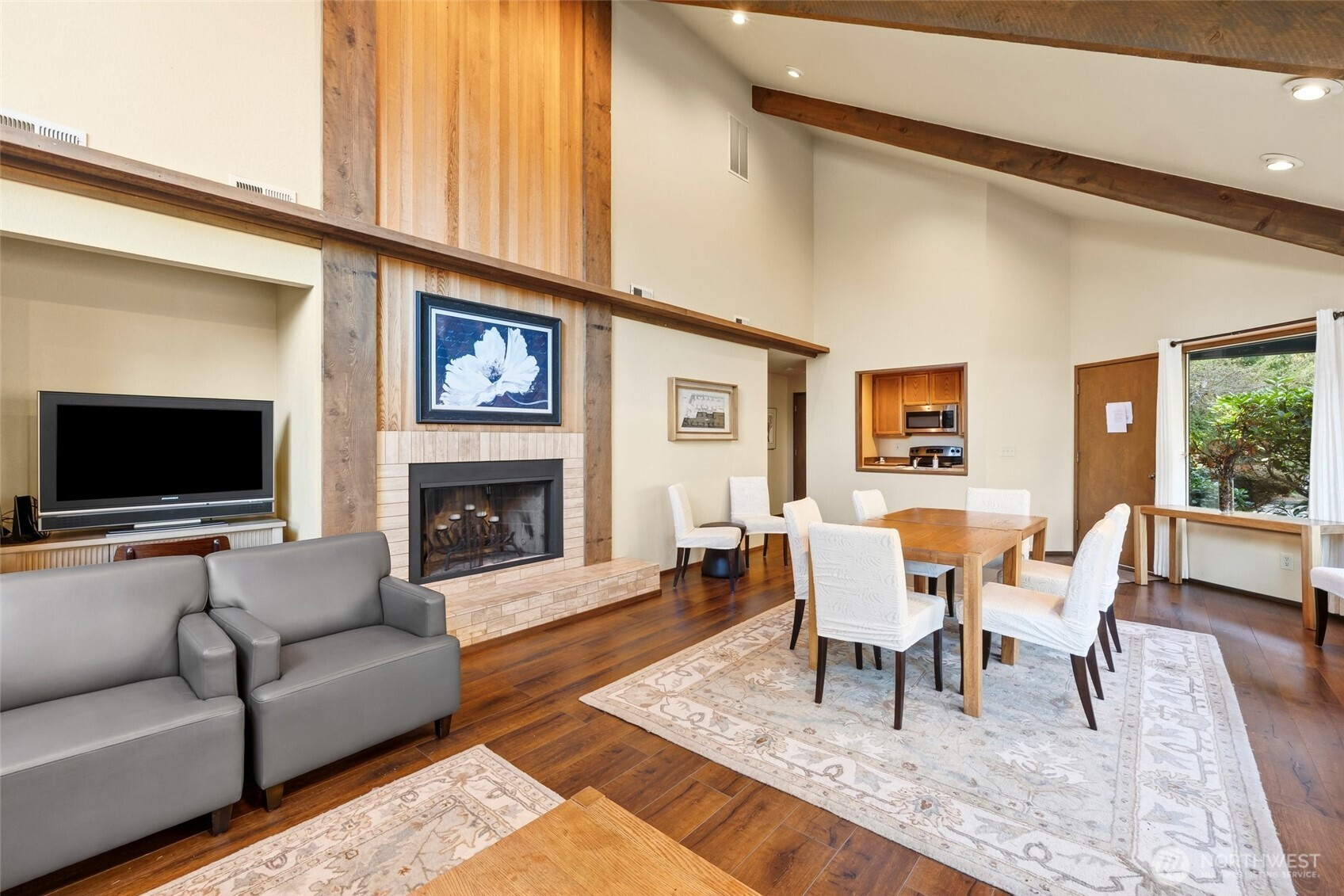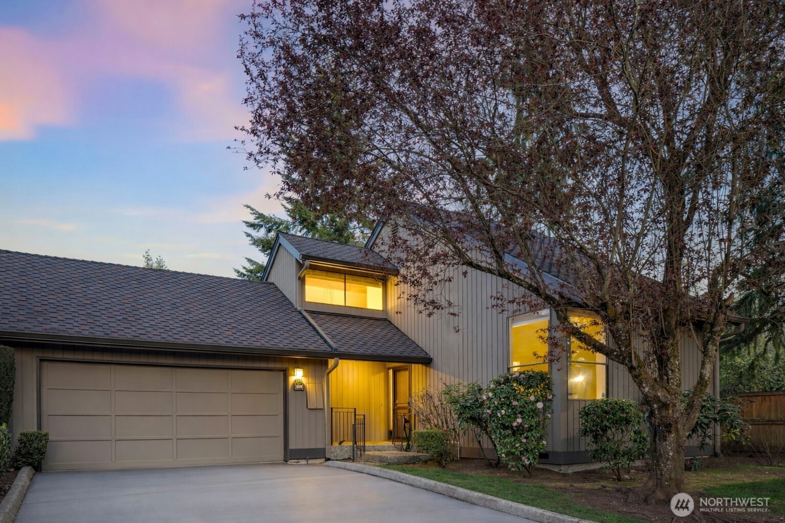 Experience a lock-and-leave lifestyle in this sun-drenched Craftsman townhouse, nestled within the serene Inglebrook community. Sharing only a garage wall, this 2BR/2BA residence lives like a single-family home, offering rare privacy and a sprawling floor plan just 12 blocks from Microsoft. Stepping inside, you are greeted by an open, airy layout featuring soaring vaulted ceilings, elegant oak hardwood floors throughout, and a large living room anchored by a cozy gas fireplace. Renovated kitchen boasting granite countertops, hardwood cabinetry, and a spacious dining area. A main-floor bedroom with a Murphy bed sits next to a full bathroom, easily converting into a gym or home office. The second floor is dedicated to the primary suite, featuring a steam shower retreat. Both bathrooms are beautifully updated with contemporary floating cabinets, sleek quartz counters and designer glass shower door. HOA dues covers everything from siding replacement, exterior painting, roof/skylight/gutter replacement (2019) to landscaping, driveway upkeep, & master insurance w/earthquake coverage. Key highlights include fresh interior paint, central A/C, a new water heater (2026), and a 2-car garage with 2 driveway spaces plus 2 guest parking nearby. Step outside to a generous private backyard—a rare find that is perfect for pets, gardening, and outdoor enjoyment. Community amenity includes club house, athletic court and gym. Mins to Crossroad mall, and easy access to 520 and I-405.