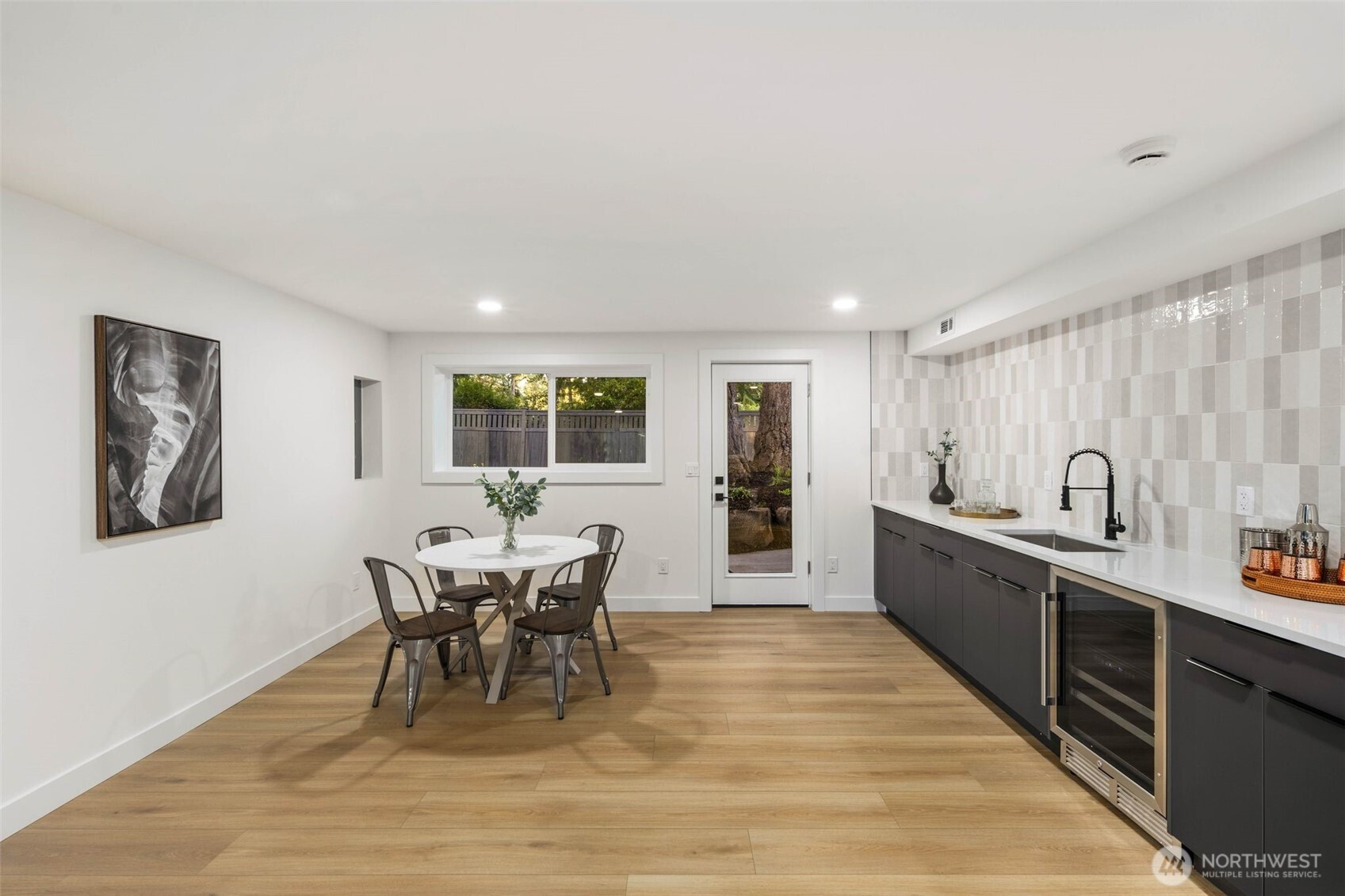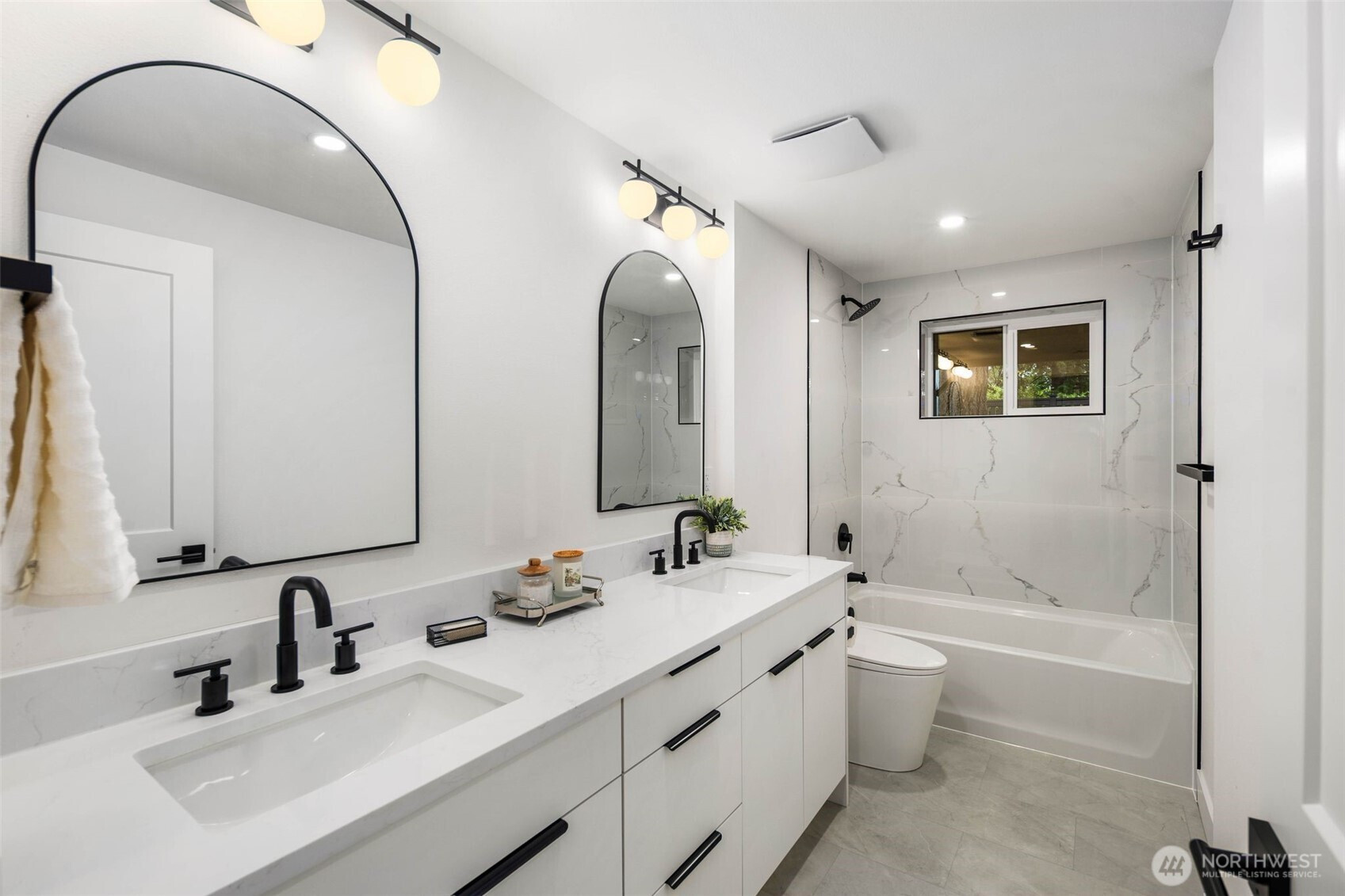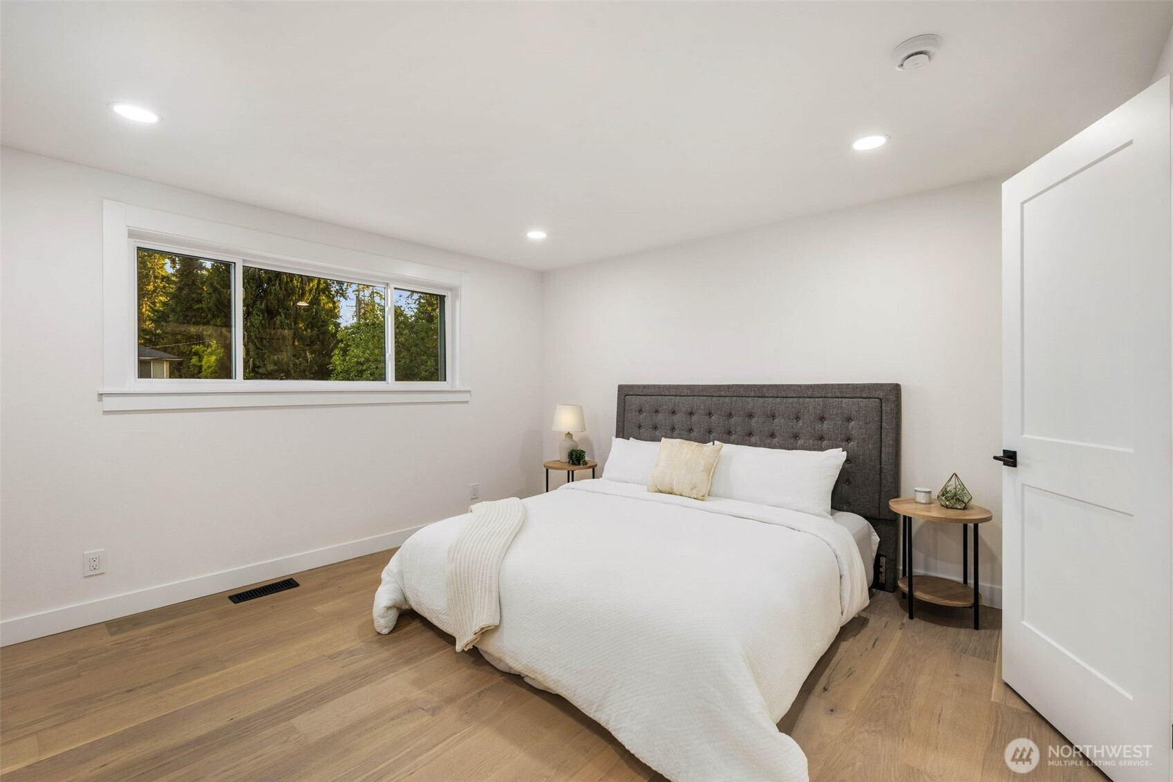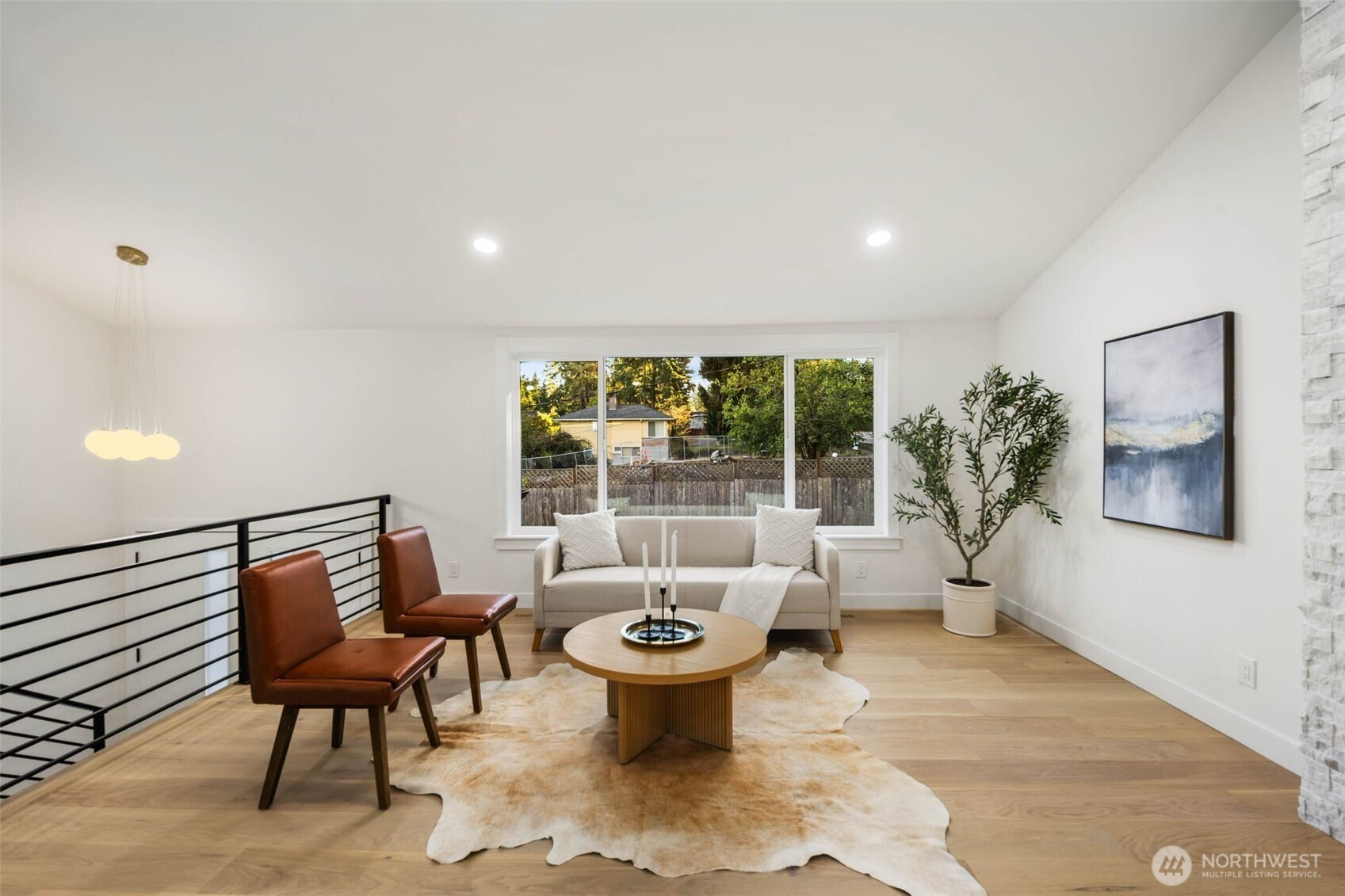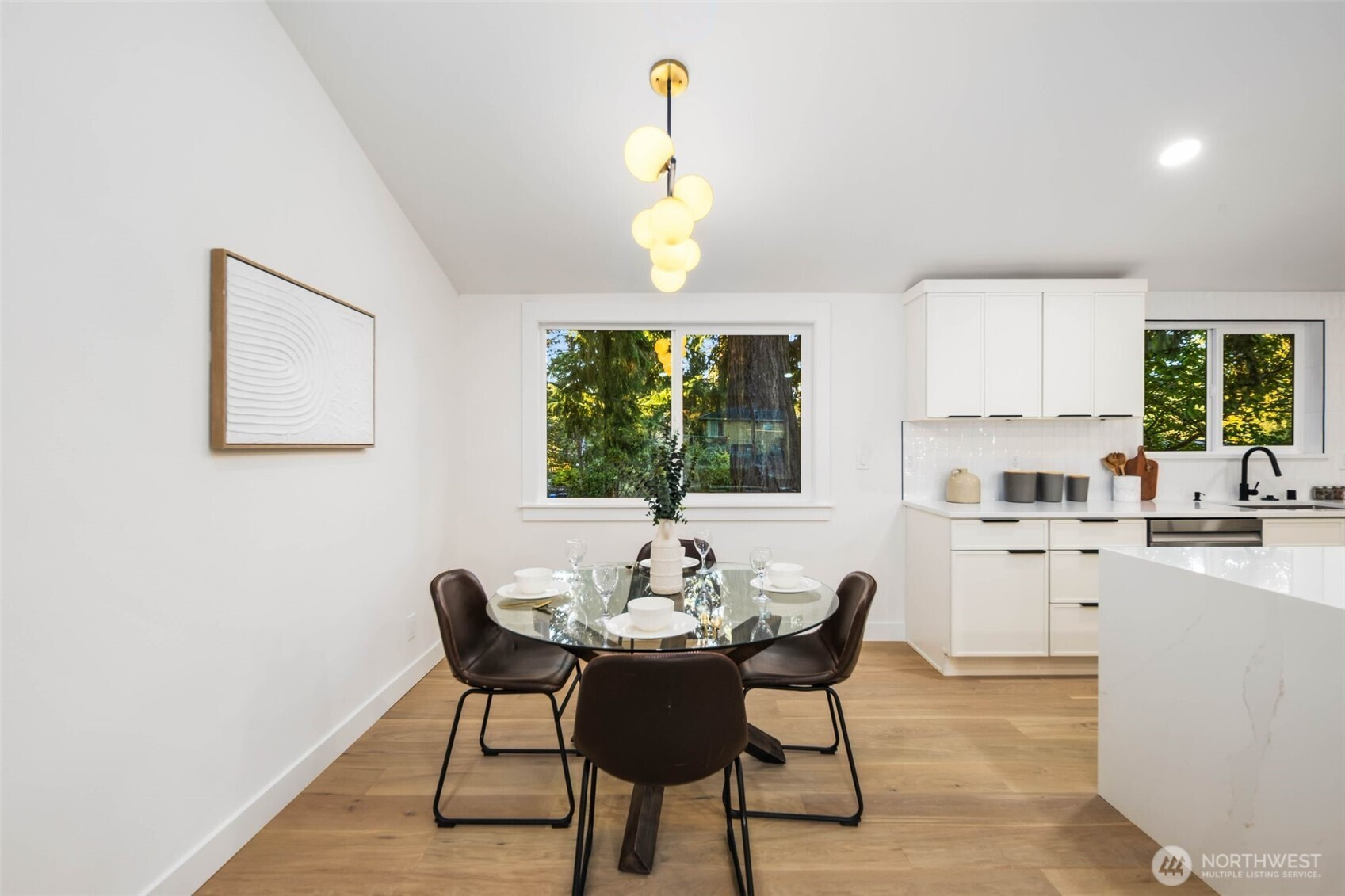 Experience modern elegance in this fully remodeled and permitted Shoreline home! Soaring vaulted ceilings, wide-plank floors, and exquisite tile work set the tone for refined living. The chef’s kitchen is the heart of the home, which includes a massive island and top tier appliances designed for both style and function, while the inviting living spaces flow seamlessly for entertaining or relaxation. Downstairs, a spacious family room with wet bar and wood-burning fireplace offers the perfect gathering place. Step outside to a beautifully landscaped yard with a deck and fire pit - your private retreat. Just steps from Shoreline Community College, shops, schools, parks, and transit, this home blends luxury, warmth, and location perfectly.