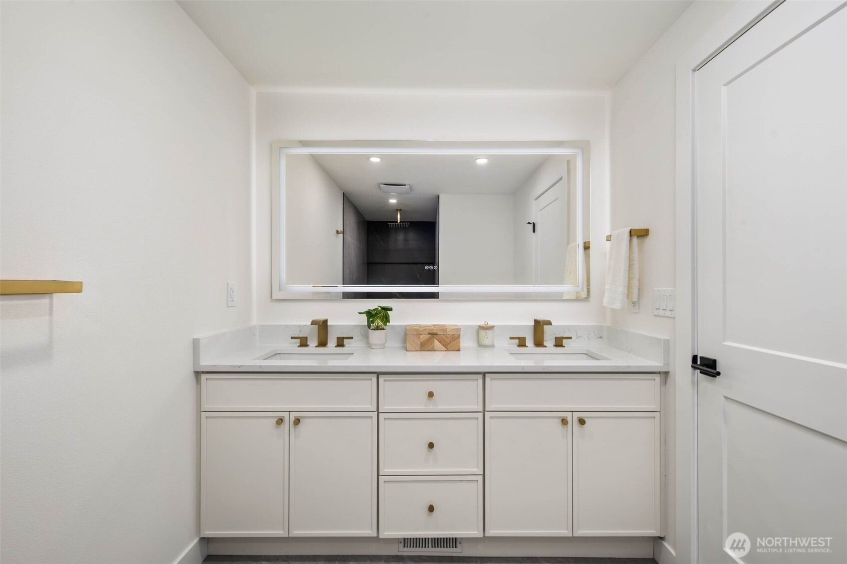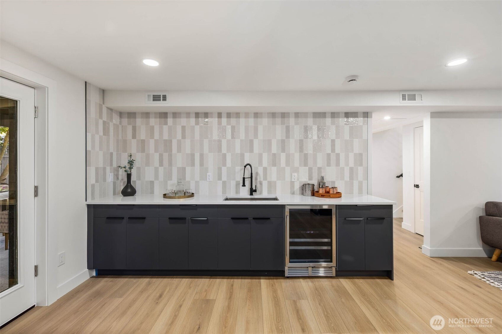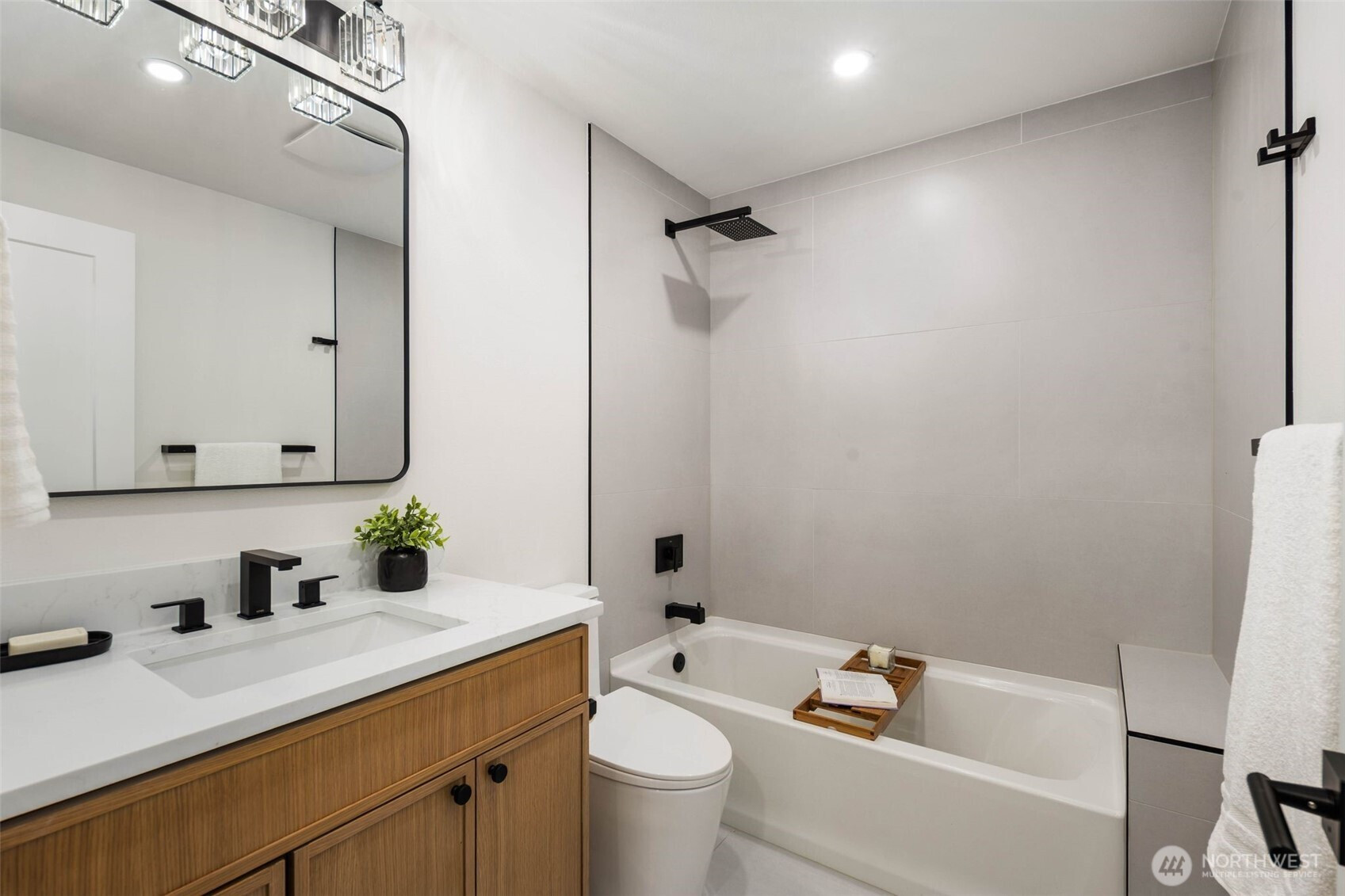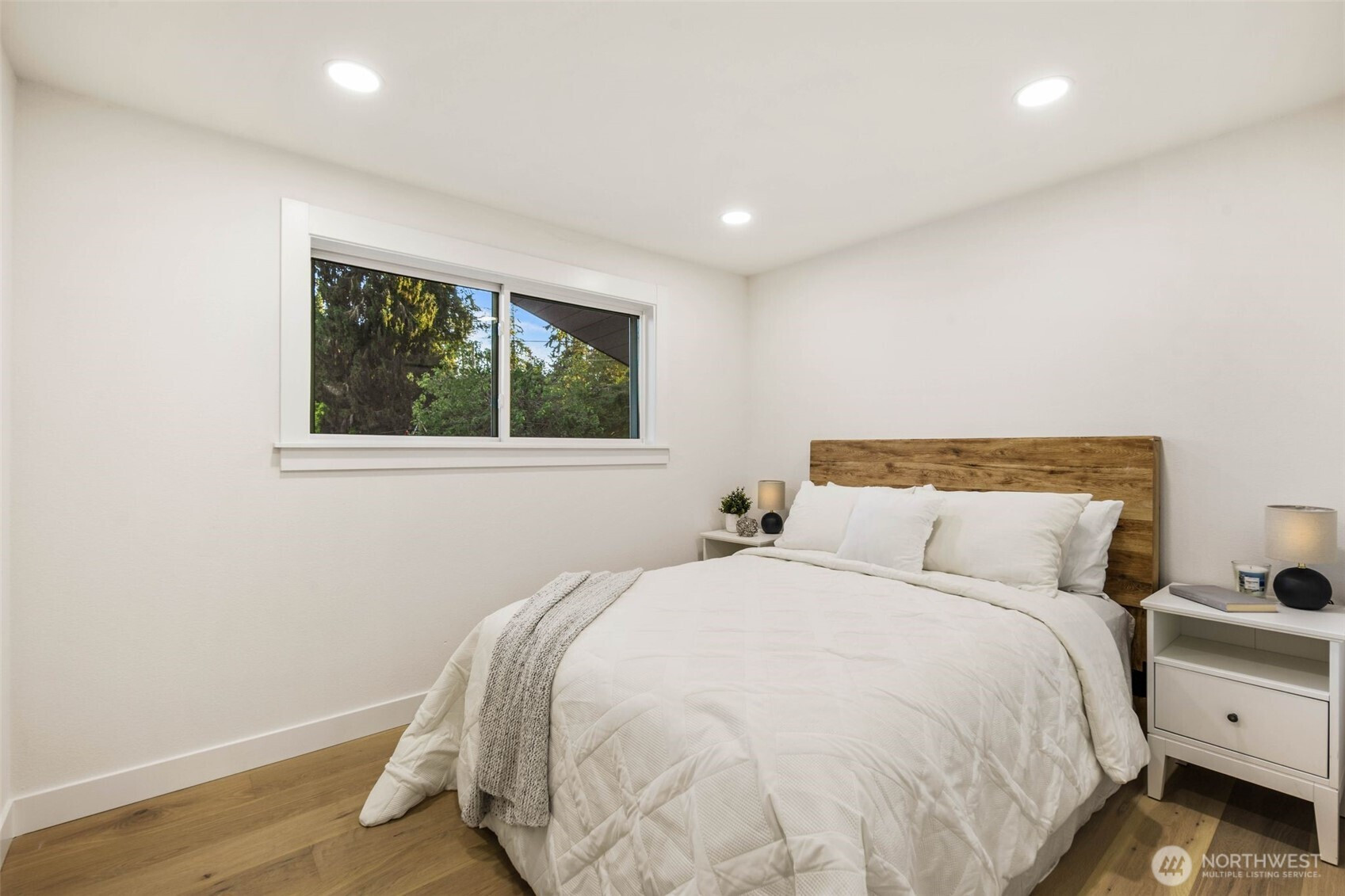 Experience modern elegance in this fully remodeled and permitted Shoreline home! Soaring vaulted ceilings, wide-plank floors, and exquisite tile work set the tone for refined living. The chef’s kitchen is the heart of the home, which includes a massive island and top tier appliances designed for both style and function, while the inviting living spaces flow seamlessly for entertaining or relaxation. Downstairs, a spacious family room with wet bar and wood-burning fireplace offers the perfect gathering place. Step outside to a beautifully landscaped yard with a deck and fire pit - your private retreat. Just steps from Shoreline Community College, shops, schools, parks, and transit, this home blends luxury, warmth, and location perfectly.