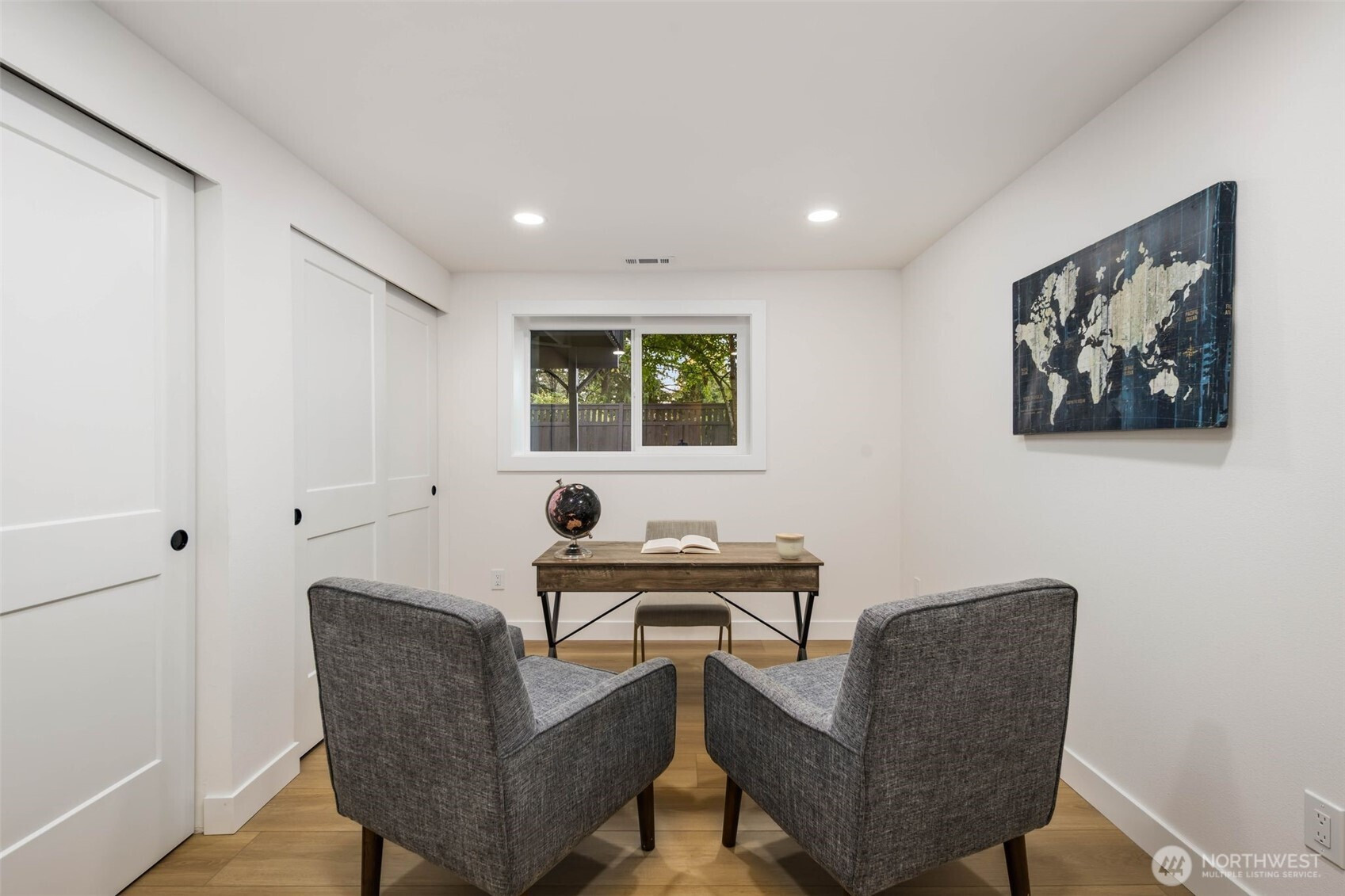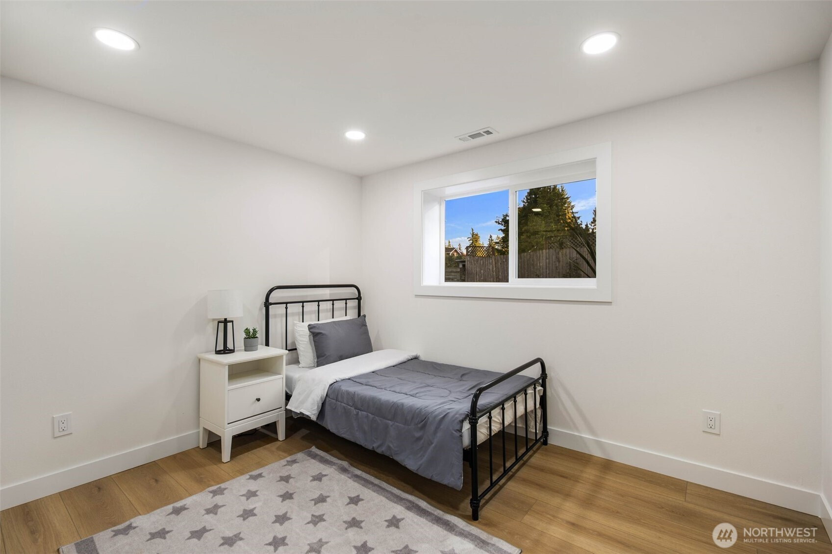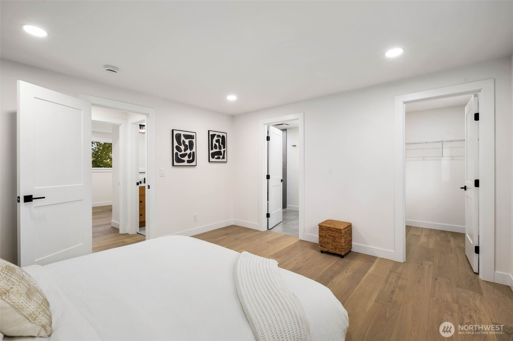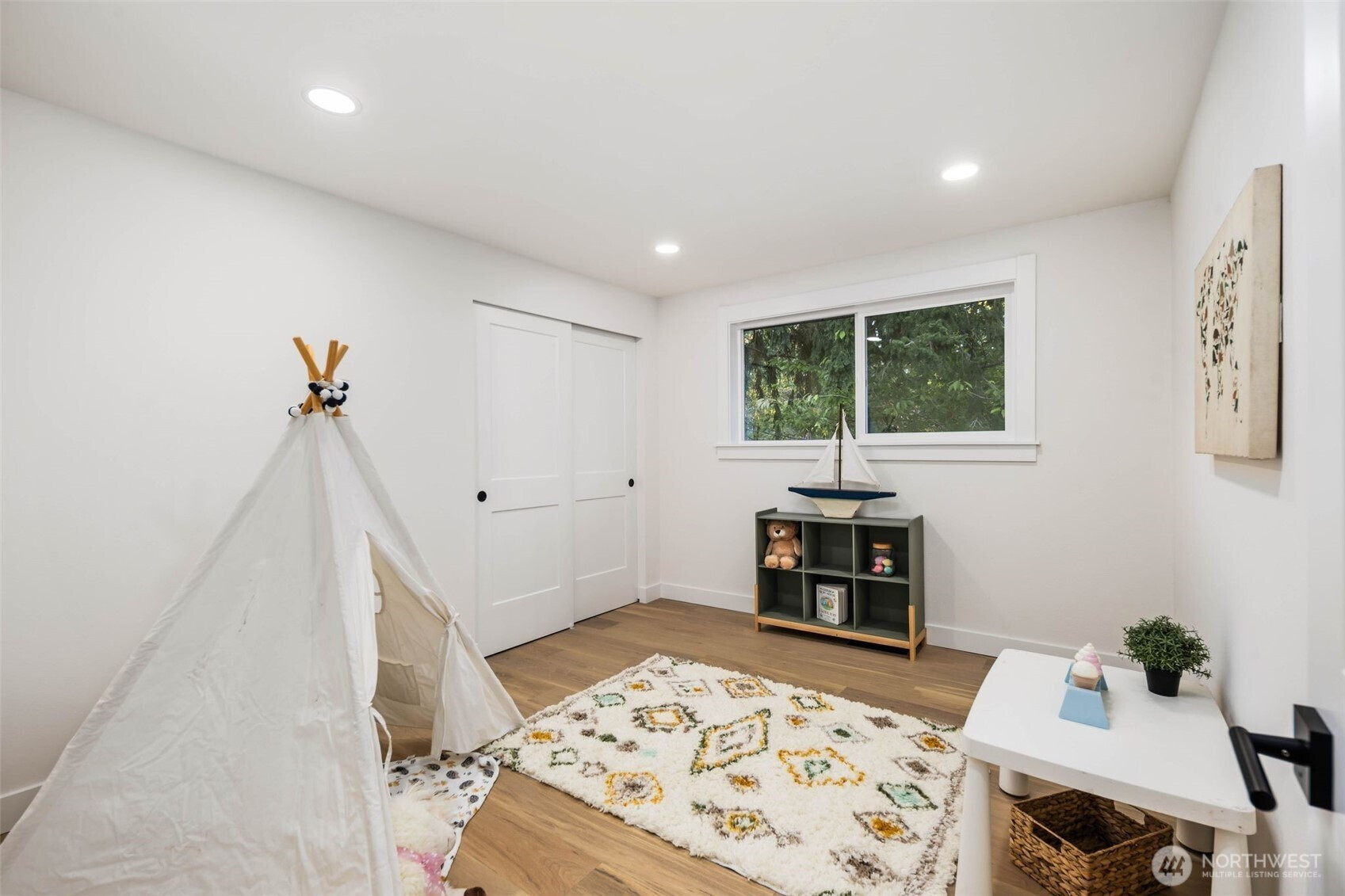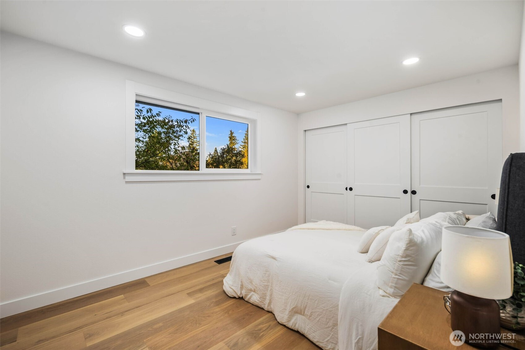 Experience modern elegance in this fully remodeled and permitted Shoreline home! Soaring vaulted ceilings, wide-plank floors, and exquisite tile work set the tone for refined living. The chef’s kitchen is the heart of the home, which includes a massive island and top tier appliances designed for both style and function, while the inviting living spaces flow seamlessly for entertaining or relaxation. Downstairs, a spacious family room with wet bar and wood-burning fireplace offers the perfect gathering place. Step outside to a beautifully landscaped yard with a deck and fire pit - your private retreat. Just steps from Shoreline Community College, shops, schools, parks, and transit, this home blends luxury, warmth, and location perfectly.