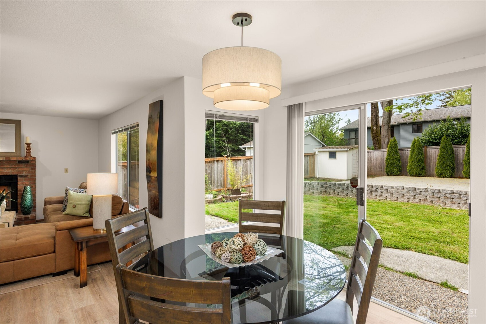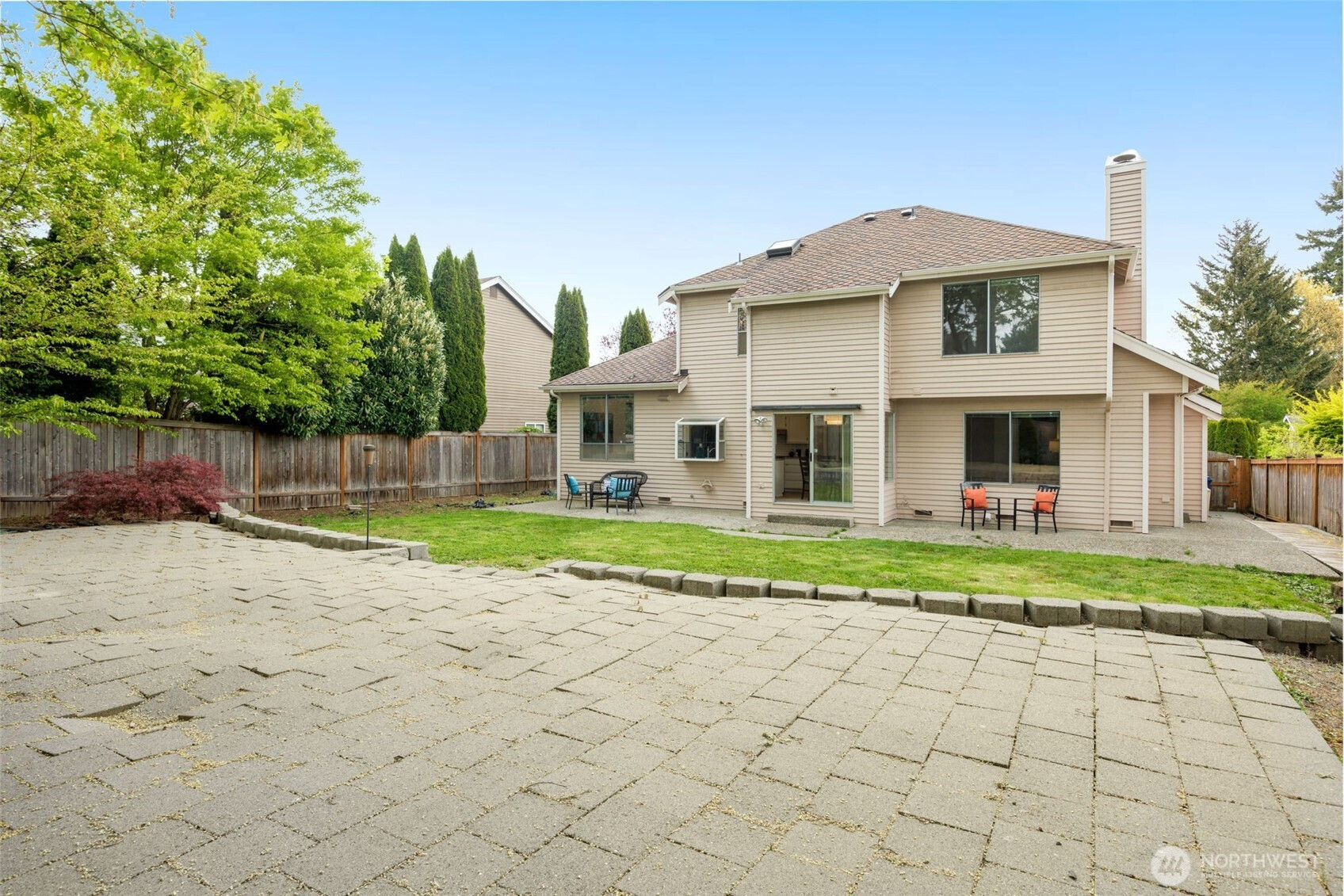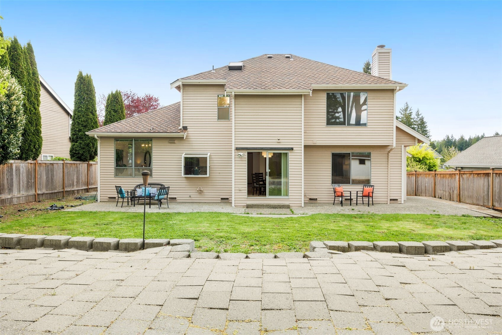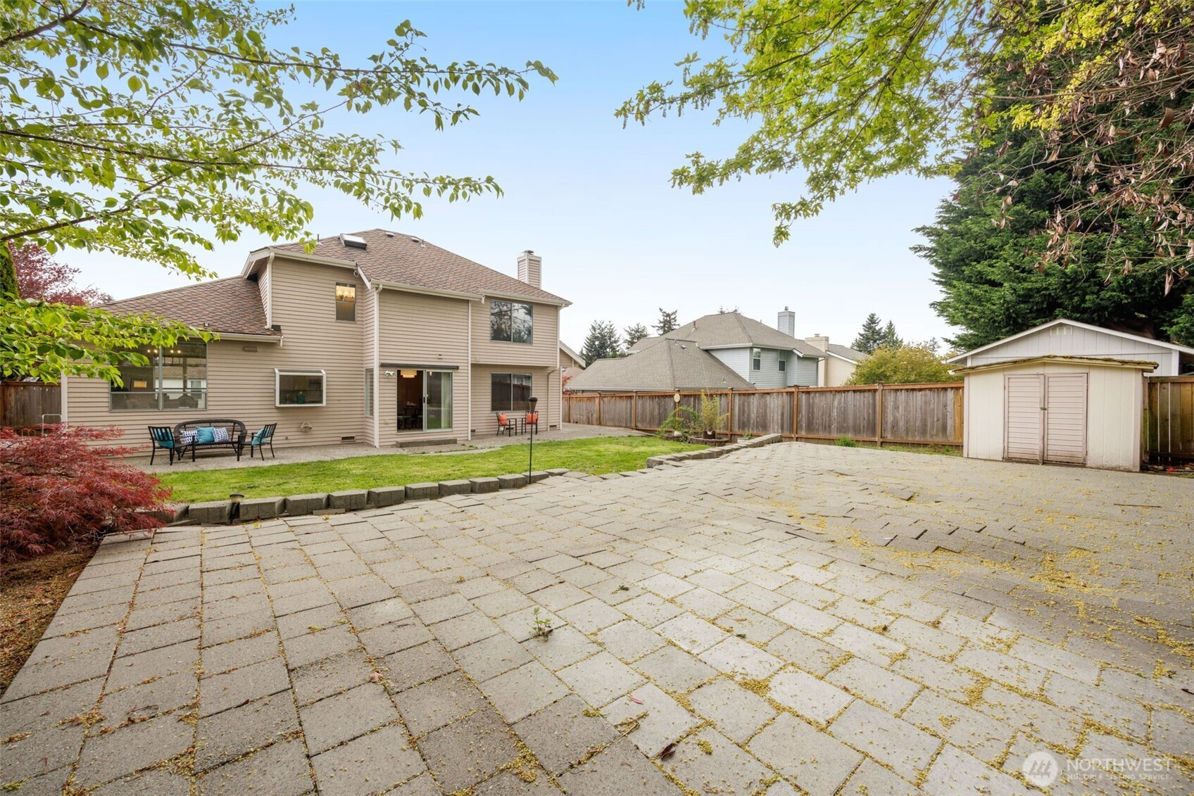 Rare opportunity to own a stunning 3-bedroom, 2.25-bath home + den/office in the coveted Fairwood community! Step inside to soaring ceilings, light-filled rooms, and brand-new LVP flooring throughout the main level. The updated kitchen boasts quartz countertops, a garden window, and stainless steel appliances, flowing seamlessly into the dining and family room for effortless entertaining. Upstairs, enjoy brand-new carpet and a spacious primary suite featuring a walk-in closet and an updated 3/4 ensuite. Fresh interior and exterior paint plus some new light fixtures make this home move-in ready. The oversized backyard is an outdoor oasis with a patio, raised paver platform, and storage shed. Ideally located across from Ridgewood Elementary with easy commuter access to I-405, SEA, restaurants, major retail & employment hubs. Home is pre-inspected!