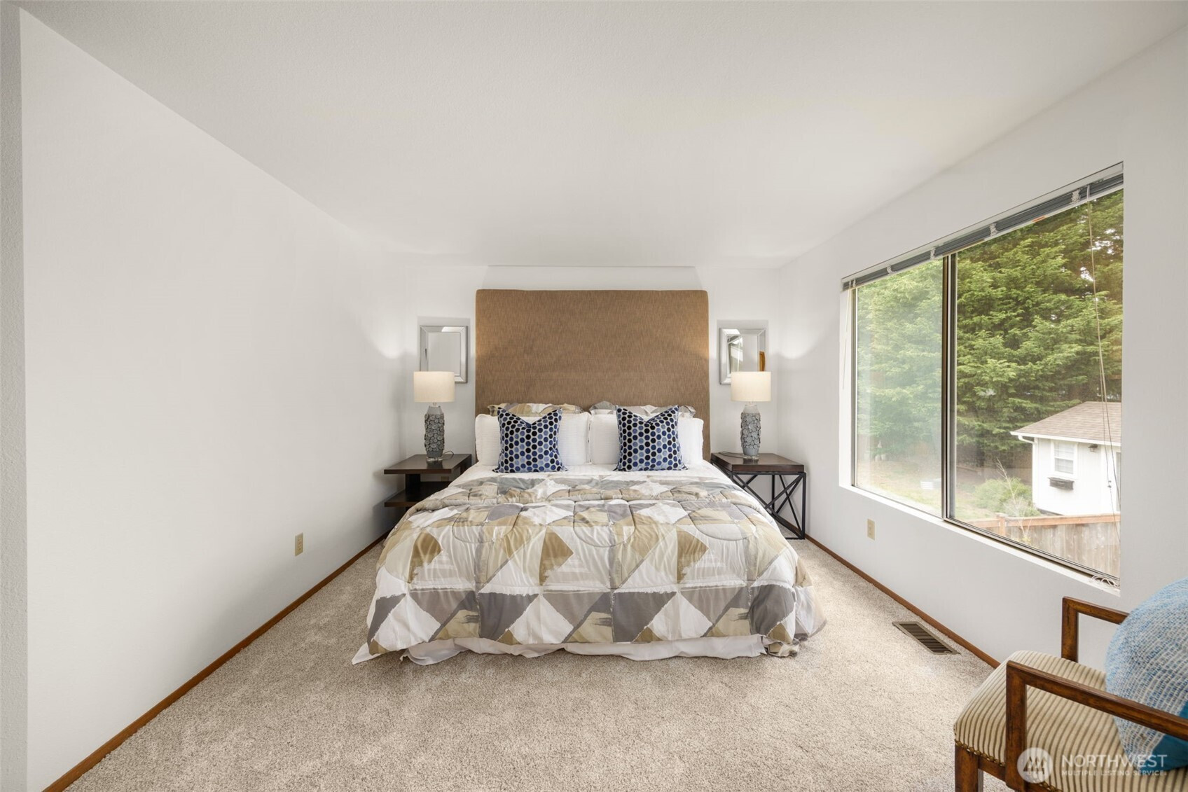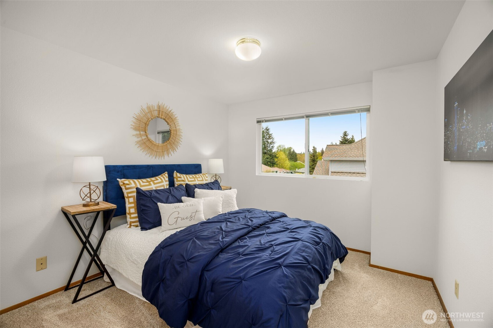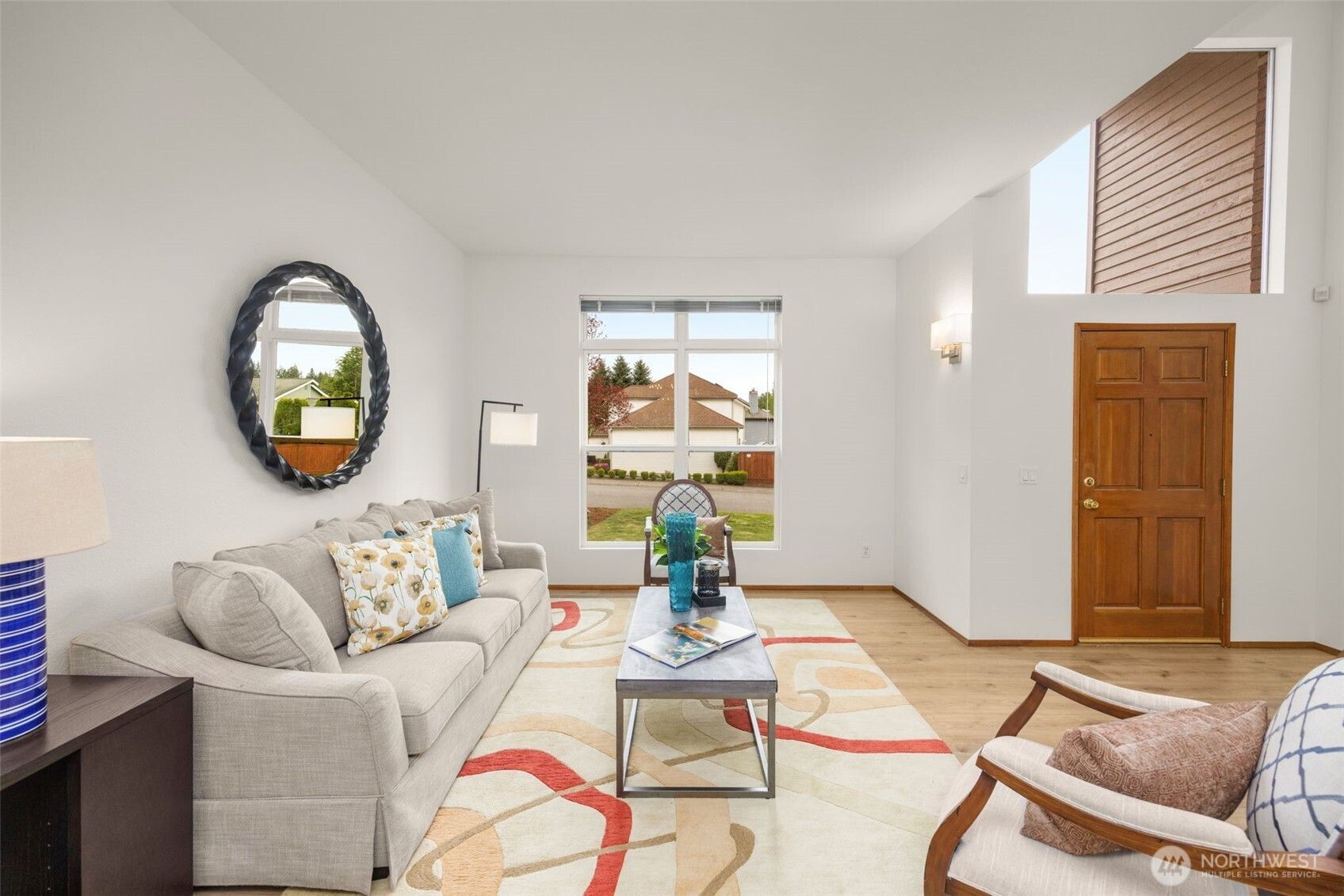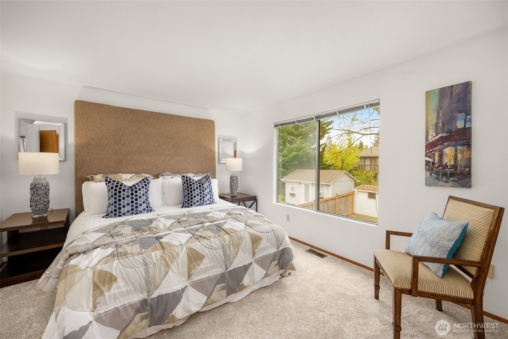 Rare opportunity to own a stunning 3-bedroom, 2.25-bath home + den/office in the coveted Fairwood community! Step inside to soaring ceilings, light-filled rooms, and brand-new LVP flooring throughout the main level. The updated kitchen boasts quartz countertops, a garden window, and stainless steel appliances, flowing seamlessly into the dining and family room for effortless entertaining. Upstairs, enjoy brand-new carpet and a spacious primary suite featuring a walk-in closet and an updated 3/4 ensuite. Fresh interior and exterior paint plus some new light fixtures make this home move-in ready. The oversized backyard is an outdoor oasis with a patio, raised paver platform, and storage shed. Ideally located across from Ridgewood Elementary with easy commuter access to I-405, SEA, restaurants, major retail & employment hubs. Home is pre-inspected!
