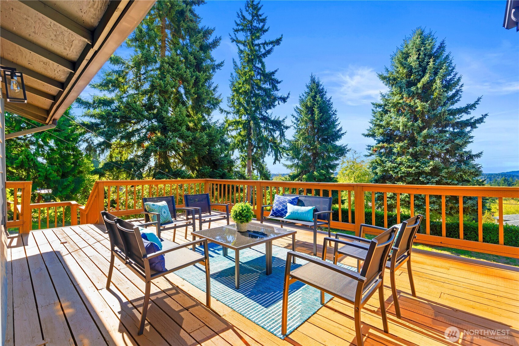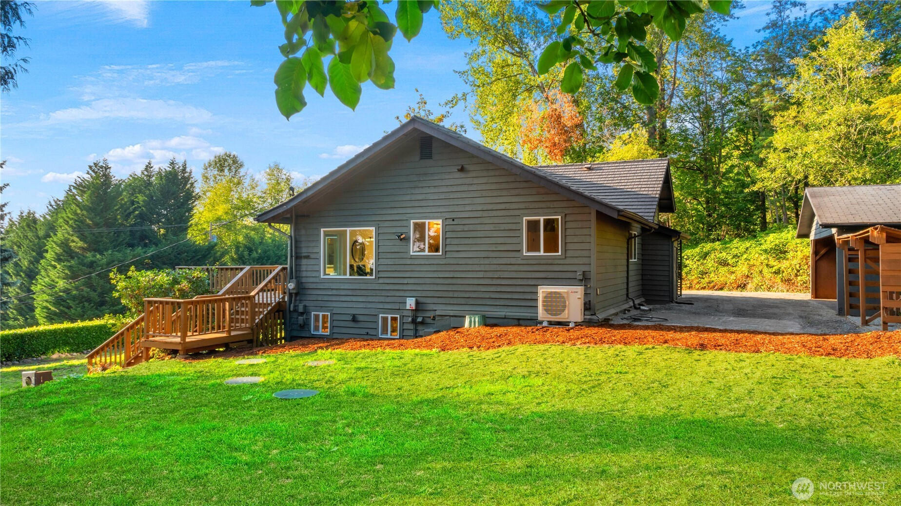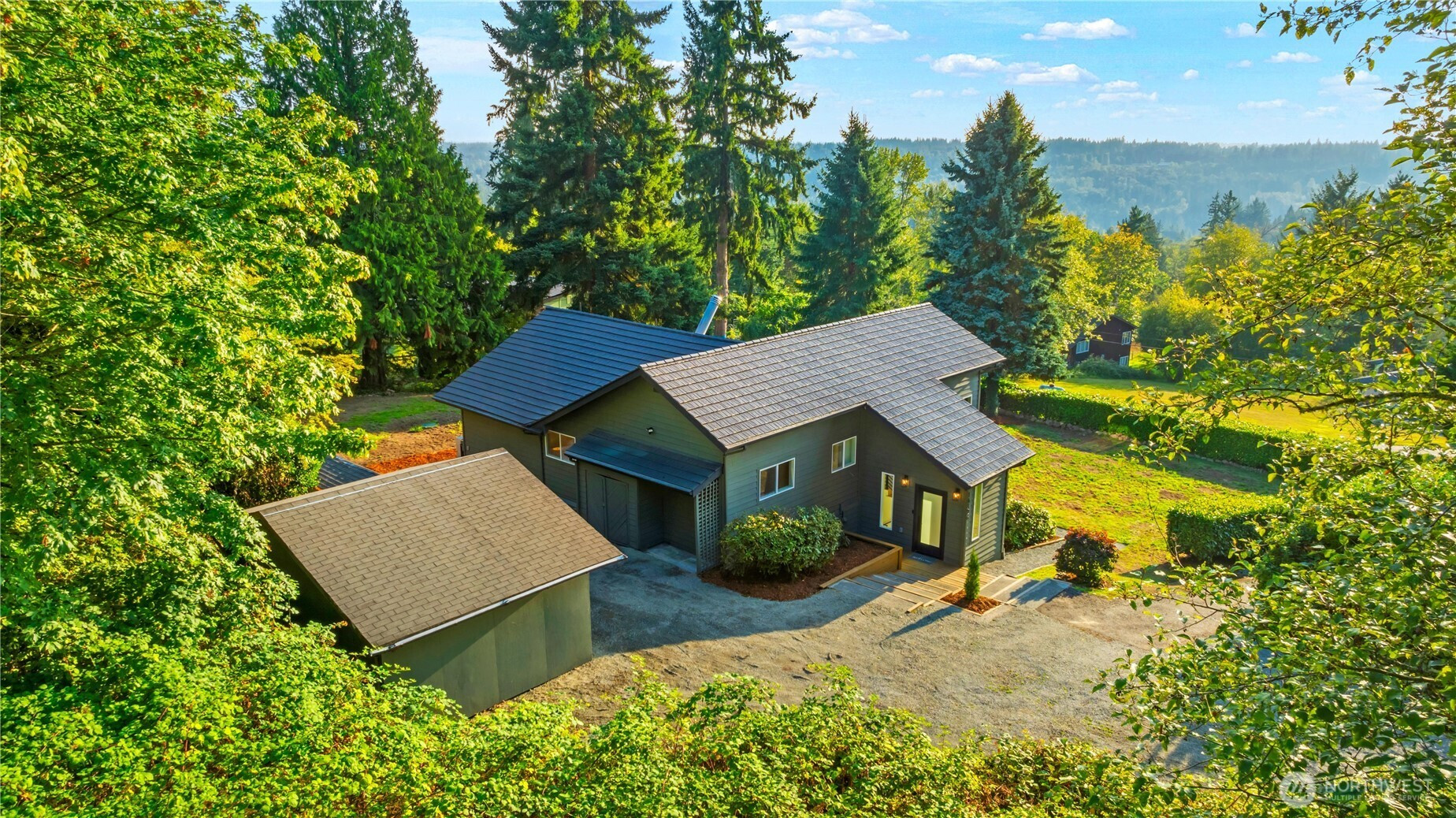 Perched high above with stunning western mountain views, this Tiger Mountain retreat is drenched in natural light and offers unforgettable sunsets. Rare 34,382 SF lot features a large, usable flat yard—nearly impossible to find in this area. Inside, a dramatic staircase leads to a living room with exposed cedar ceilings and a beautifully updated kitchen with new cabinets and deck access. Main level features a primary suite, two additional bedrooms, and a full bath. The lower level includes a bonus/playroom, powder bath, and family room. Tons of storage with detached shed. Welcome to your private oasis!
