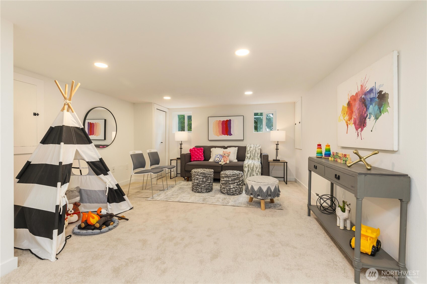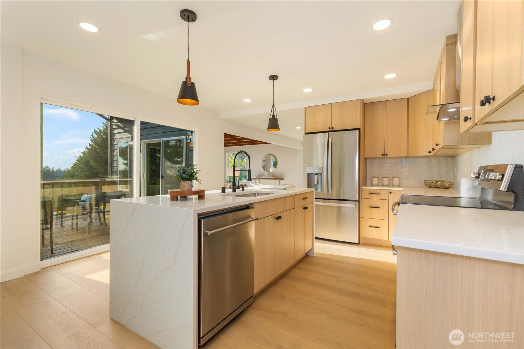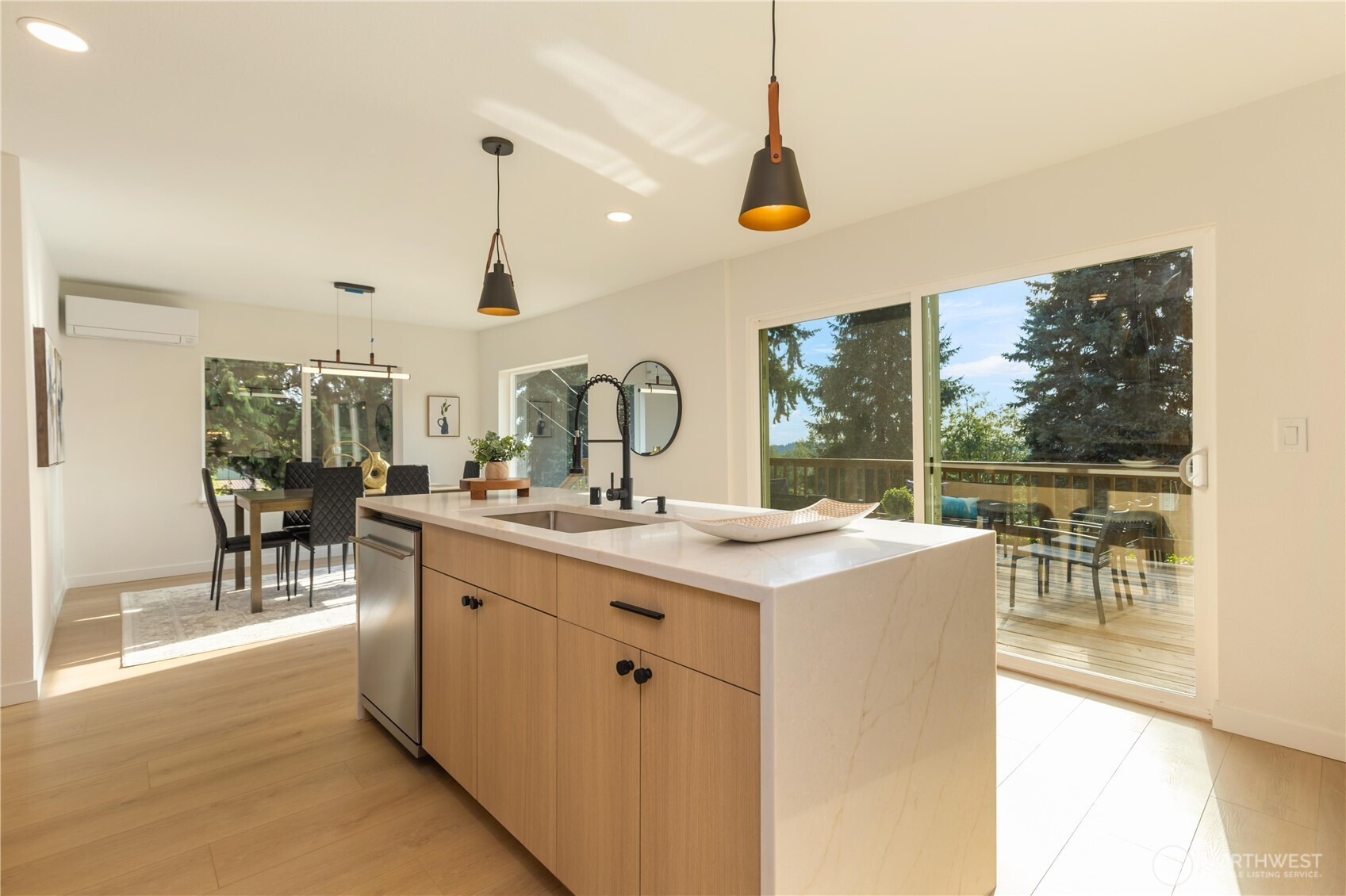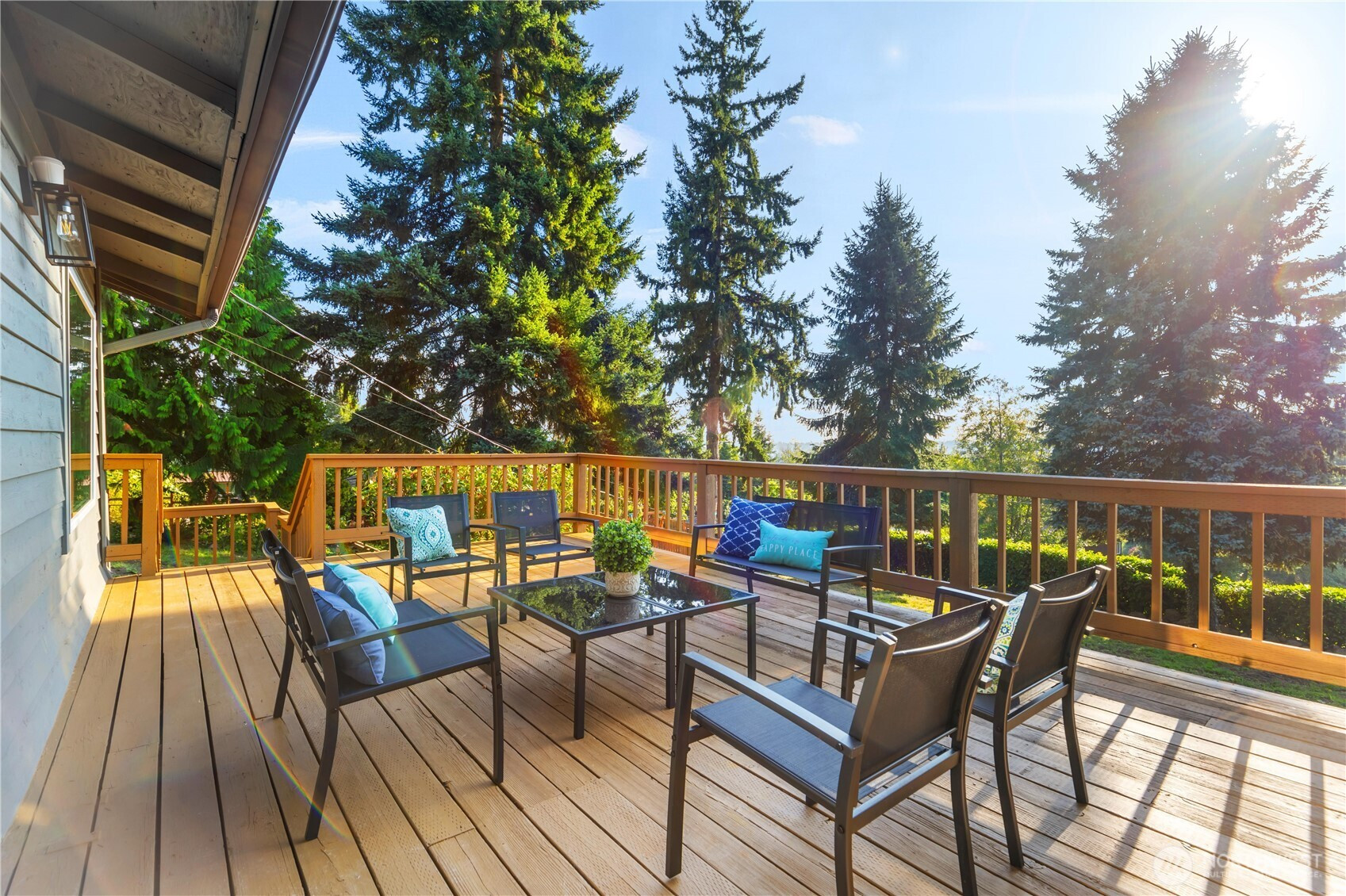 Perched high above with stunning western mountain views, this Tiger Mountain retreat is drenched in natural light and offers unforgettable sunsets. Rare 34,382 SF lot features a large, usable flat yard—nearly impossible to find in this area. Inside, a dramatic staircase leads to a living room with exposed cedar ceilings and a beautifully updated kitchen with new cabinets and deck access. Main level features a primary suite, two additional bedrooms, and a full bath. The lower level includes a bonus/playroom, powder bath, and family room. Tons of storage with detached shed. Welcome to your private oasis!