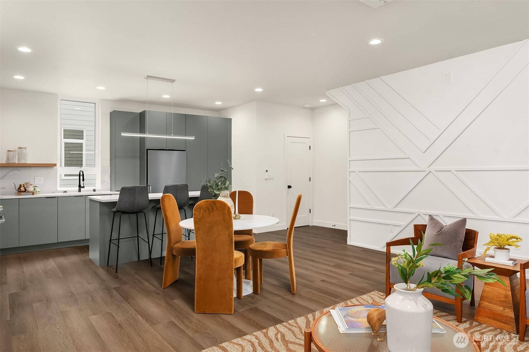 Crafted by respected local builder BriKat Homes, this new townhome community is nestled in the heart of Wallingford—one of Seattle’s most beloved neighborhoods. Stylish, high-quality finishes elevate the interior, with two main-level bedrooms and bath ideal for guests or a home office. The expansive great room features Bertazzoni appliances, a designer feature wall, generous storage and powder room. Upstairs, find a luxurious primary suite occupying entire top floor. Soak in the sun or host with ease on your private rooftop deck. Designated EV-ready parking adds everyday convenience. Plus, included washer/dryer! Located just blocks from Green Lake, Woodland Park, Fremont, and Wallingford dining—this is city living at its best.