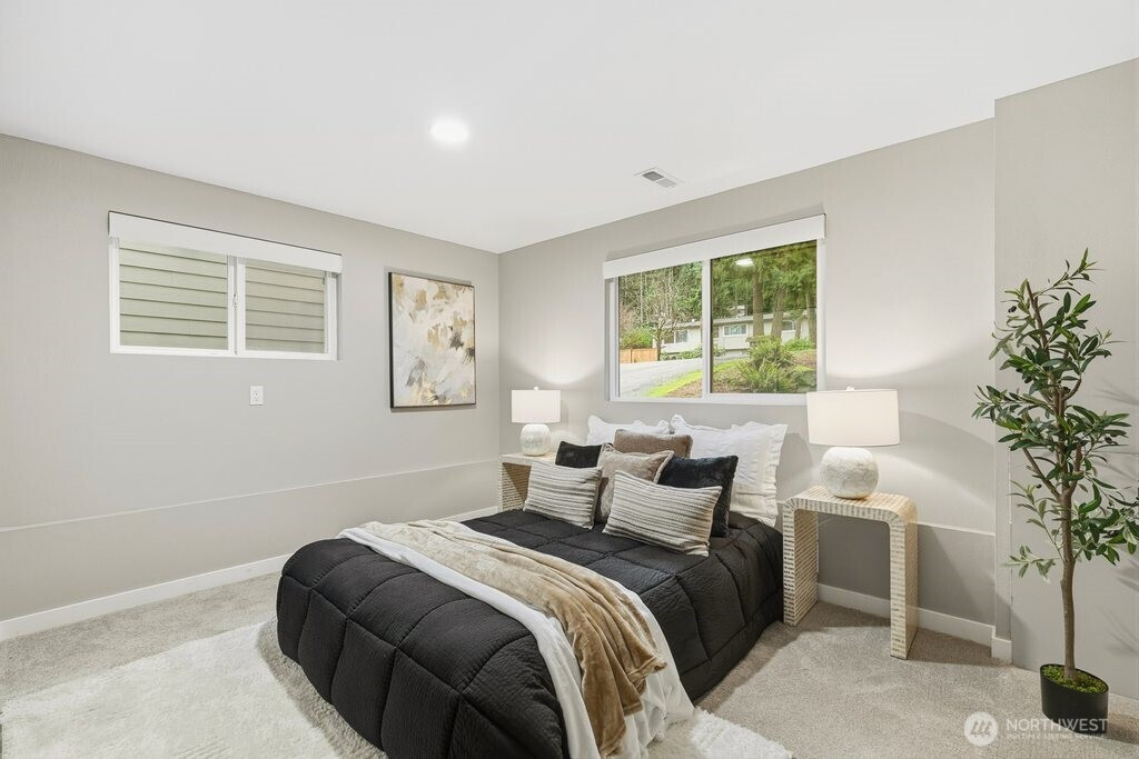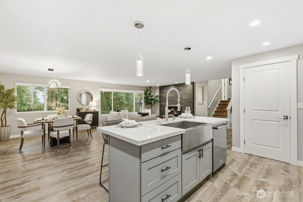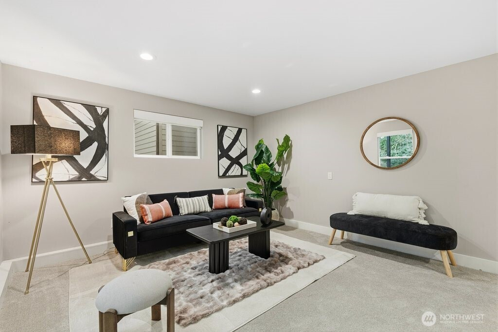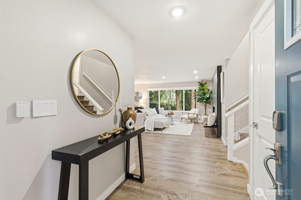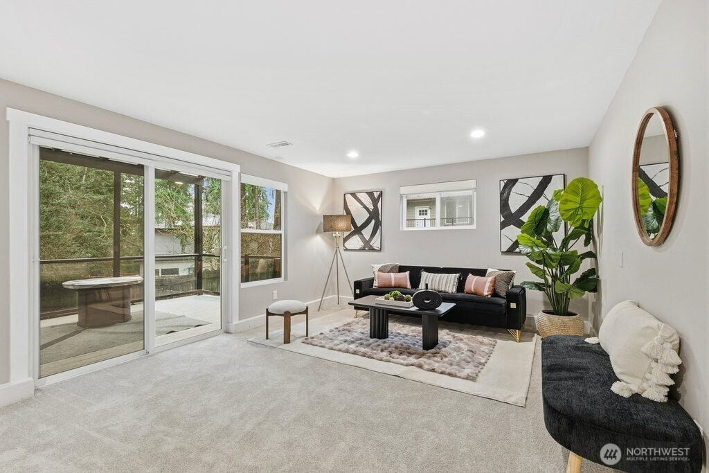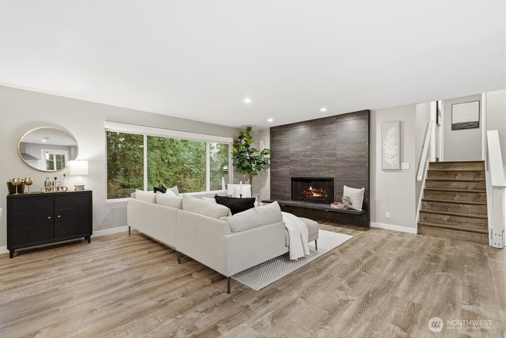 Better than new and impeccably updated, this stunning home blends modern design with a peaceful natural setting while offering exceptional convenience. Open-concept living creates an effortless flow between the kitchen, dining, and living areas, anchored by a bold yet inviting fireplace. The kitchen impresses with stainless steel appliances, a double oven, quartz countertops, shaker cabinetry, and a striking tile backsplash. Three well-appointed bedrooms are located upstairs, including a spacious primary retreat with a stylish ¾ en suite bath. The lower level adds an additional bedroom, brand-new carpet, and a versatile bonus room that opens to a covered deck with a glass canopy, leading to a fully fenced backyard with mature landscaping and new hardscape patio. Recent upgrades include a brand-new roof with transferable warranty, new gutters and insulation, added heat pump for cooling, a new gas furnace, and a dedicated hard-wired EV charger. Connected to public sewer with decommissioned septic and pre-inspected for peace of mind. An attached garage plus ample off-street parking complete the package. Enjoy the highly rated Issaquah school district, easy access to Seattle, downtown Bellevue, and Short commute to downtown Bellevue, Microsoft, Amazon and T-Mobile