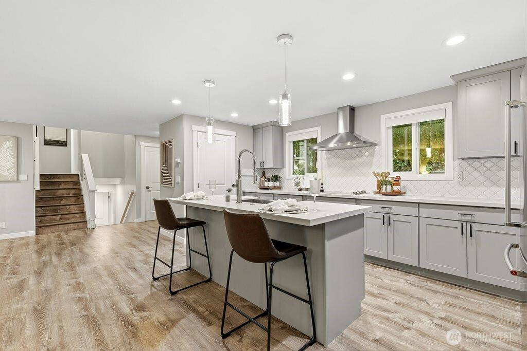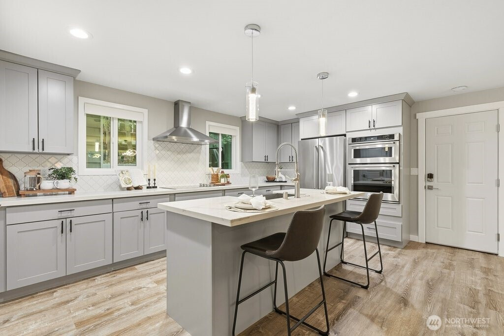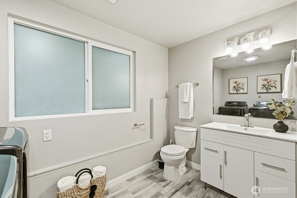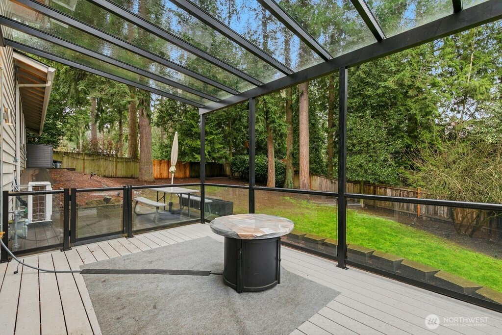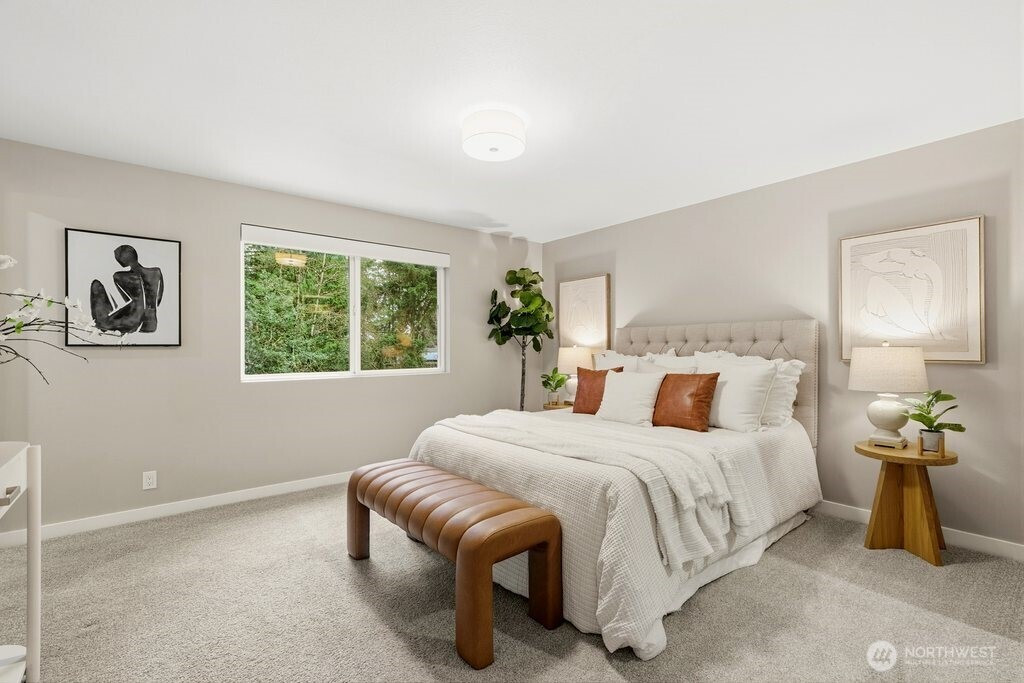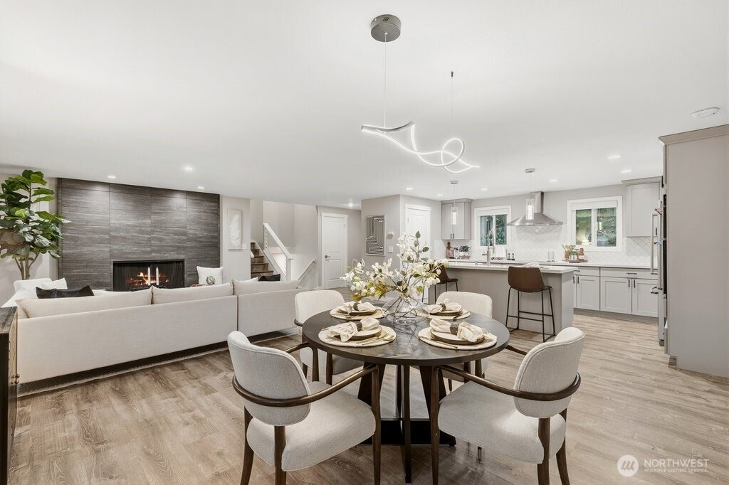 Better than new and impeccably updated, this stunning home blends modern design with a peaceful natural setting while offering exceptional convenience. Open-concept living creates an effortless flow between the kitchen, dining, and living areas, anchored by a bold yet inviting fireplace. The kitchen impresses with stainless steel appliances, a double oven, quartz countertops, shaker cabinetry, and a striking tile backsplash. Three well-appointed bedrooms are located upstairs, including a spacious primary retreat with a stylish ¾ en suite bath. The lower level adds an additional bedroom, brand-new carpet, and a versatile bonus room that opens to a covered deck with a glass canopy, leading to a fully fenced backyard with mature landscaping and new hardscape patio. Recent upgrades include a brand-new roof with transferable warranty, new gutters and insulation, added heat pump for cooling, a new gas furnace, and a dedicated hard-wired EV charger. Connected to public sewer with decommissioned septic and pre-inspected for peace of mind. An attached garage plus ample off-street parking complete the package. Enjoy the highly rated Issaquah school district, easy access to Seattle, downtown Bellevue, and Short commute to downtown Bellevue, Microsoft, Amazon and T-Mobile