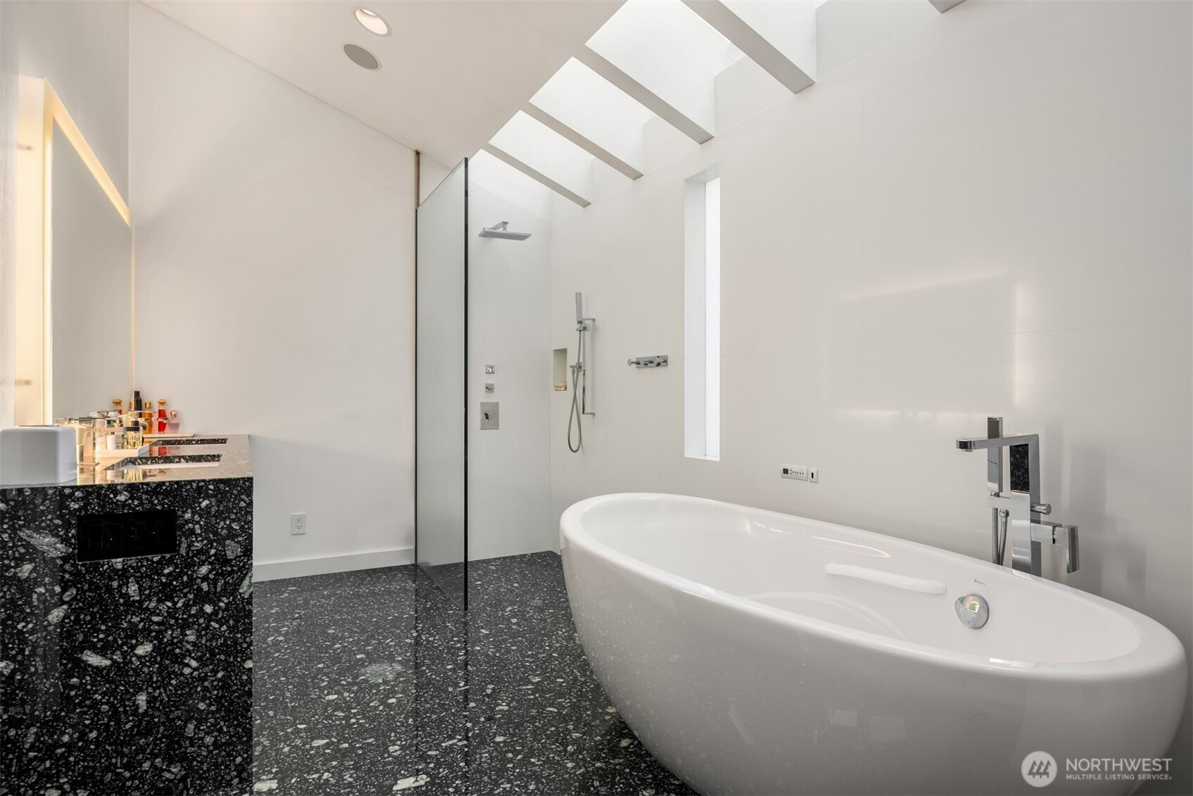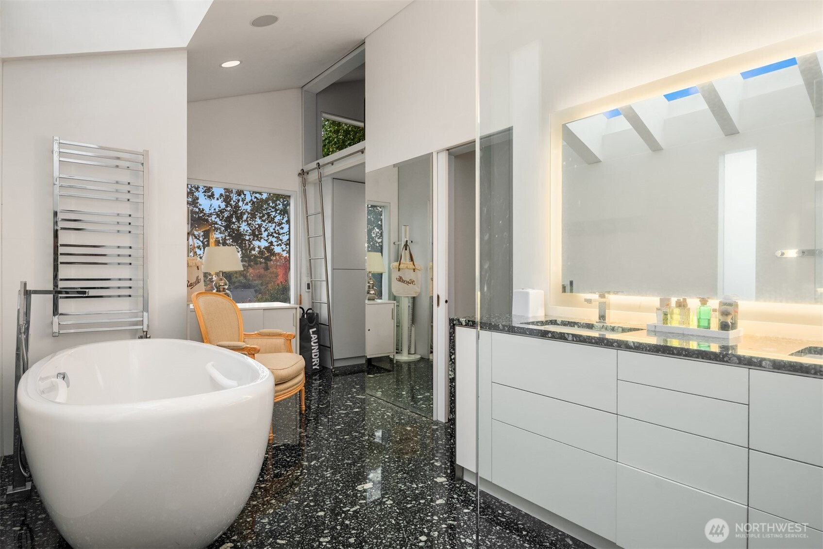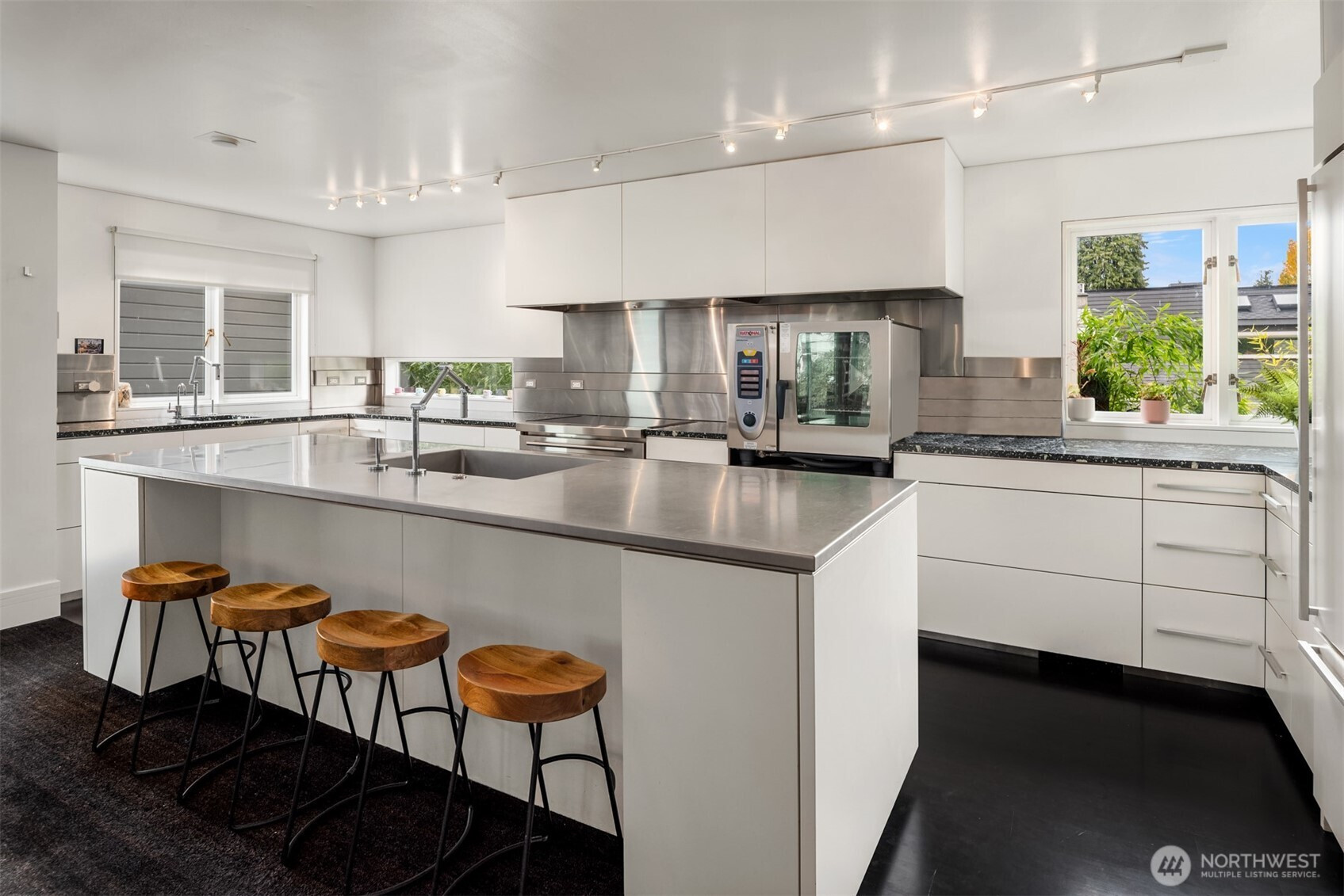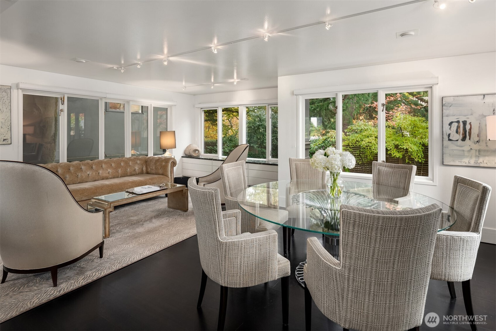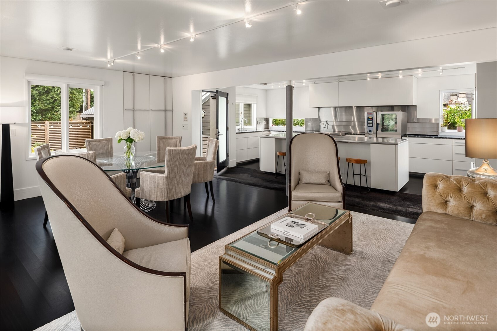 Designed by Lee Copeland & featured in AIA Guide to Architecture, this chic abode sits quietly behind lush plantings, offering privacy & architectural intention. Known as Chez Beech, glass walls frame a sculptural beech tree, inviting a dialogue w/ nature. Sophistication meets refined craftsmanship: high-end appliances, custom rosewood, smart built-ins. Chefs kitchen w/ stainless island, oversized sink, deep soft-close drawers, bar sink & new Wolf range opens to living & dining. Upper level hosts a primary suite w/ skylit spa bath, heated floors & deep tub. 2 add’l bedrooms share heated bath. Gym, office, media room, temp-controlled 800+ bottle wine cellar, turf lawn & garage. Timeless design & unique landscaping in coveted Madison Park.
