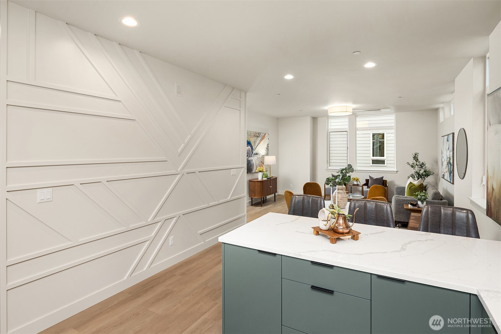 Crafted by respected local builder BriKat Homes, this townhome community is nestled in the heart of Wallingford—one of Seattle’s most beloved neighborhoods. Stylish, high-quality finishes elevate the interior, with two main-level bedrooms and bath ideal for guests or a home office. Entertain with ease in expansive great room showcasing Bertazzoni appliances and a chic feature wall. Upstairs, find a luxurious primary suite occupying entire top floor. Soak in the sun on your private rooftop deck. Designated EV-ready parking adds everyday convenience. Plus, included washer/dryer! Located just blocks from Green Lake, Woodland Park, Fremont, and Wallingford dining—this is city living at its best.