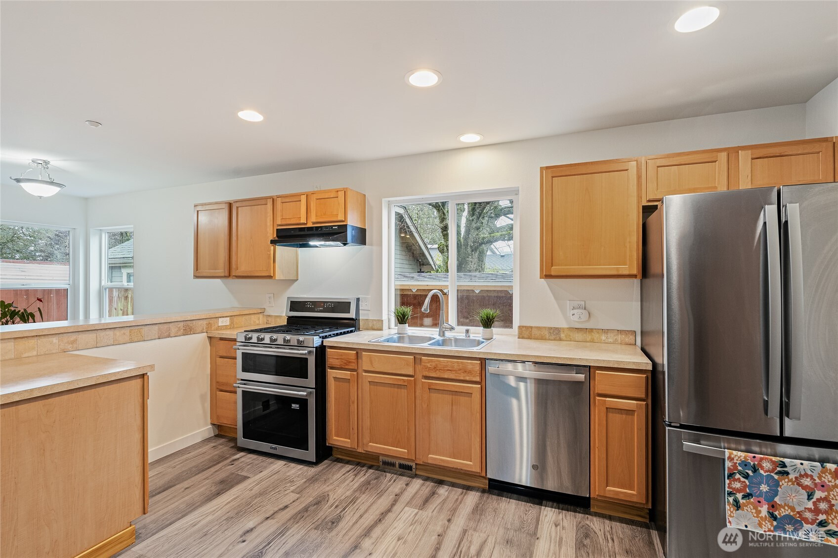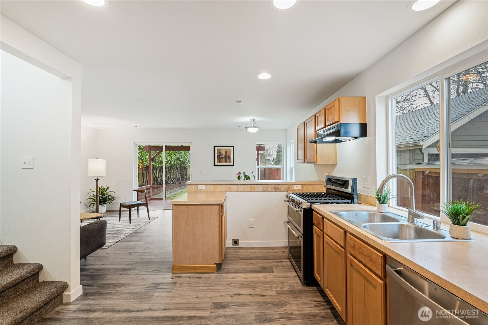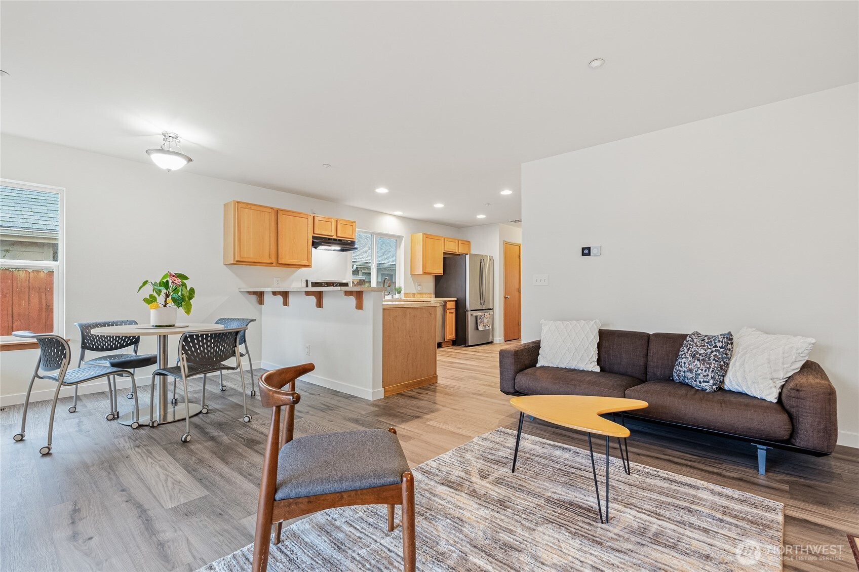 Ready, Set—The Burien Beauty is Ready to Go! Thoughtfully designed and surprisingly spacious, this inviting 3-bedroom, 2.5-bath home offers comfort, functionality and style throughout. The well-planned main level features a bright and welcoming living room, dining area and kitchen that flow seamlessly together, creating an ideal space for everyday living and entertaining. A convenient half bath completes the main floor. Upstairs, you’ll find all three bedrooms, two full bathrooms and a washer and dryer for added ease. The primary suite serves as a true retreat, complete with an en-suite bath, a generous walk-in closet and vaulted ceilings. Additional highlights in the home include a cozy gas fireplace and air conditioning for year-round comfort. Plus, new updated flooring on the main. Step outside and discover even more to love. The property offers a garage, ample off-street parking and a finished detached studio—perfect for a home office, creative space or guest retreat. The level back yard is fully finished with a rain barrel. Fresh interior and exterior paint give the entire property a crisp, move-in-ready feel. Ideally located close to all the fantastic amenities Burien has to offer, this home combines convenience, versatility and charm. Don’t miss this exceptional opportunity!