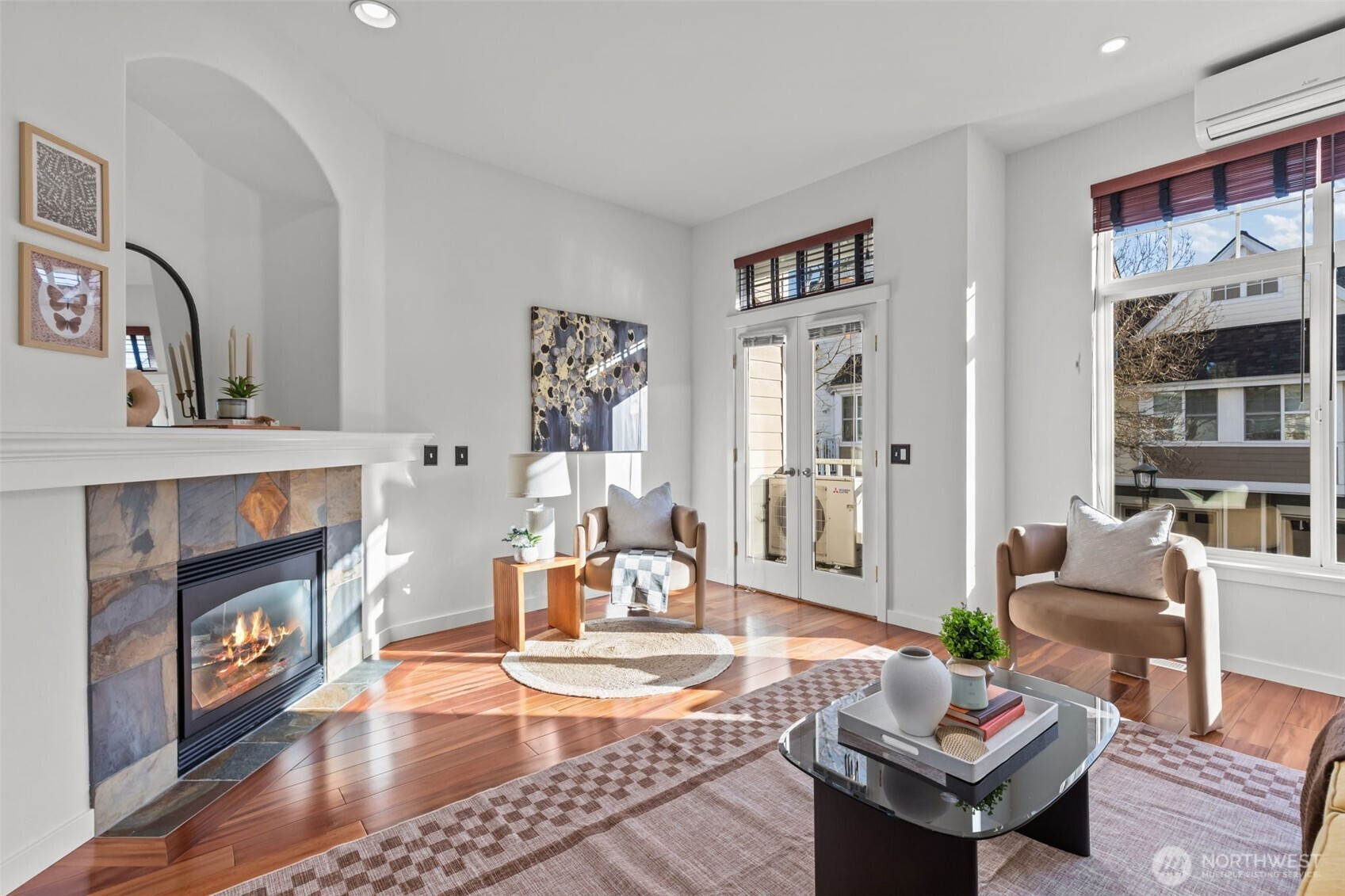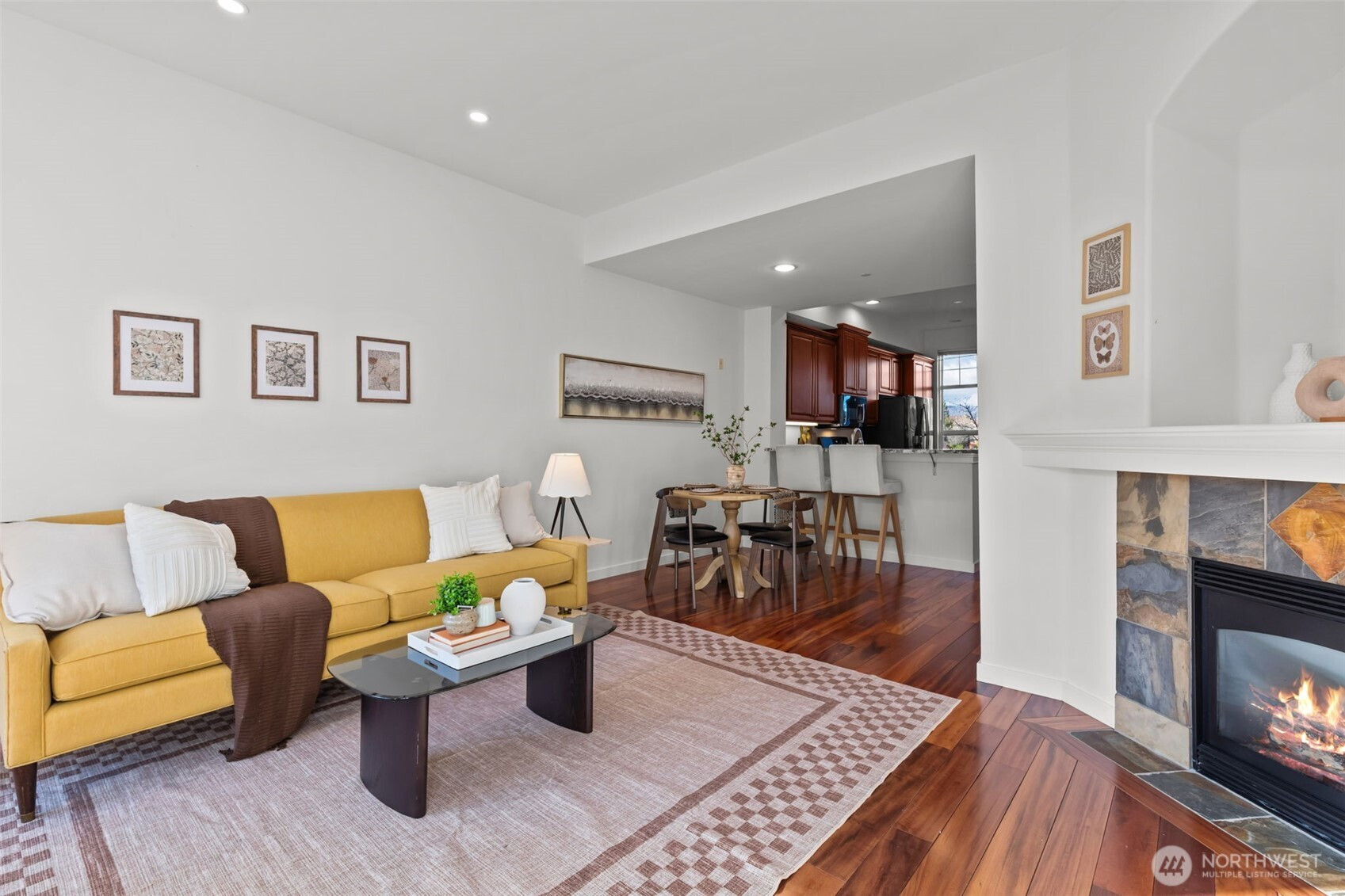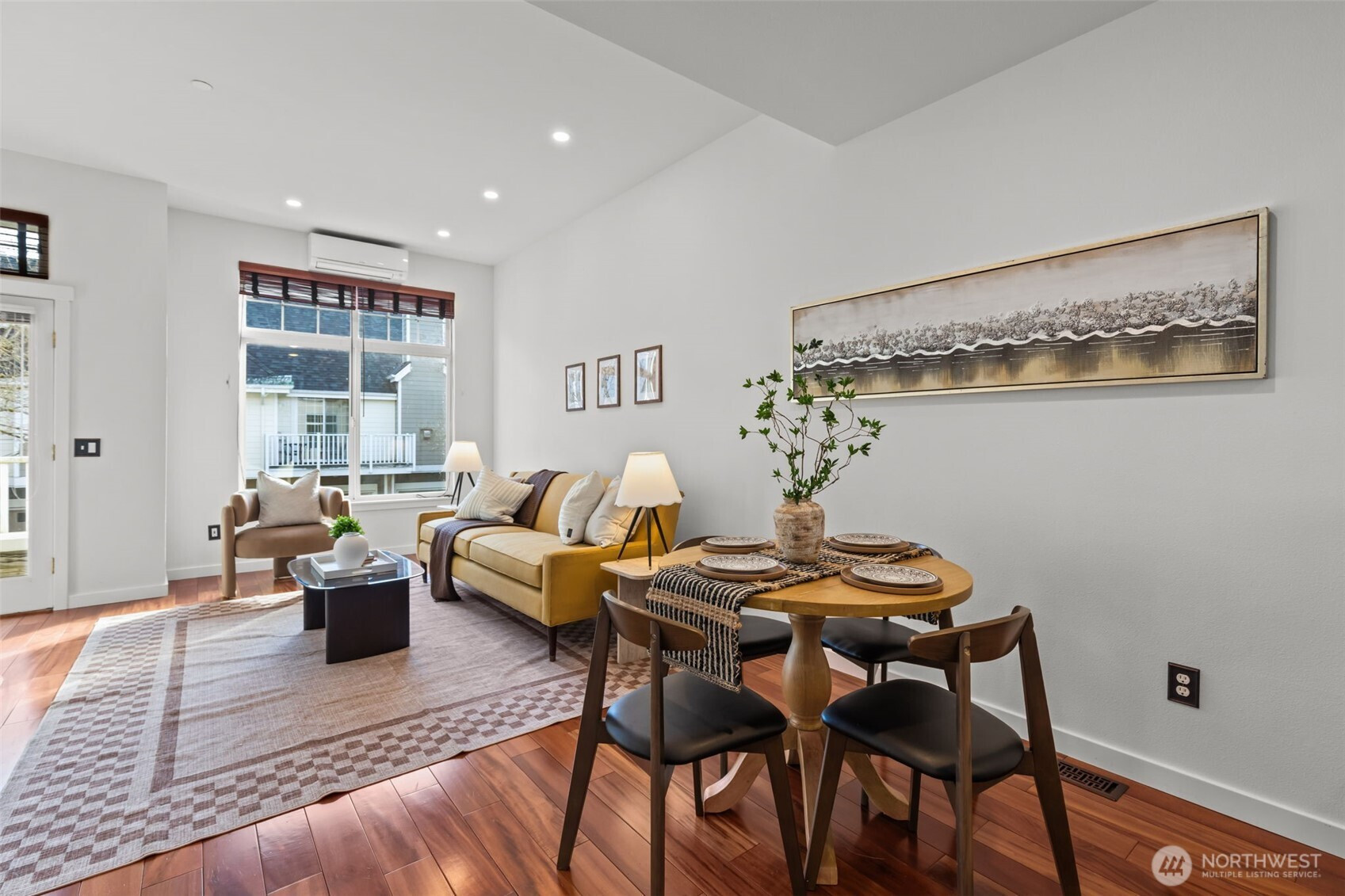 Perfectly positioned in the heart of Issaquah Highlands, this light-filled and beautifully maintained townhome offers an exceptional blend of comfort, style, and everyday convenience. Oversized windows flood the spacious living and dining areas with natural light, while a cozy gas fireplace creates the perfect gathering space. Step outside to your private balcony—ideal for morning coffee or evening unwinding. Thoughtful upgrades include A/C, EV charger, fiber internet, new furnace (2023), new dishwasher, washer & dryer (2023), and a brand-new roof (2025). The generous primary suite features a large en suite bath, while the oversized den offers flexibility as a home office, guest space, or potential second bedroom. An oversized garage provides ample room for parking and storage. Enjoy unmatched Highlands amenities just steps from your door—dining, shops, entertainment, trails, and parks—with quick freeway access and placement in the coveted Issaquah School District. This is effortless Highlands living at its best. Welcome home!