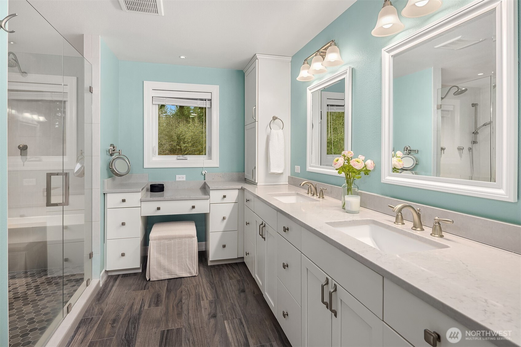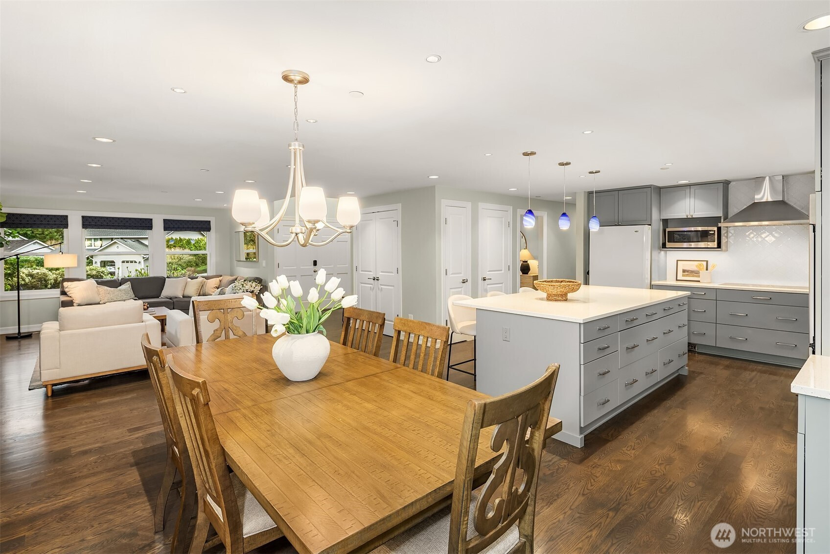 Thoughtfully reimagined Northwest living in a private cul-de-sac setting on sought-after Education Hill. This beautifully updated residence offers a spacious great room design with seamless indoor-outdoor flow, framed by landscaped grounds. An expansive deck, covered terrace and hot tub create ideal spaces for year-round gatherings, while the fully fenced backyard backs to a scenic ridgeline trail with views of the Sammamish Valley and Bear Creek, offering access to miles of connected paths. Inside, sweeping hardwoods introduce an open-concept layout designed for today’s living. The kitchen showcases clean, contemporary styling with modern cabinetry, slab countertops and stainless steel appliances, flowing effortlessly into the main living and dining areas. A versatile recreation room with custom media and bookcase built-ins provides additional space for relaxation or entertaining, while a spacious laundry and mudroom enhances everyday functionality. Upstairs, five generously sized bedrooms offer exceptional flexibility, highlighted by a rare dual primary suite configuration with two private retreats. The main suite features a boutique-style closet and spa-inspired bath with a frameless glass rain shower, while the second vaulted suite includes a walk-in closet and ensuite bath...a truly unique offering. Extensive upgrades include new paint, carpeting, updated lighting, insulation and an energy-efficient heat pump. All within minutes of everything the Eastside has to offer.