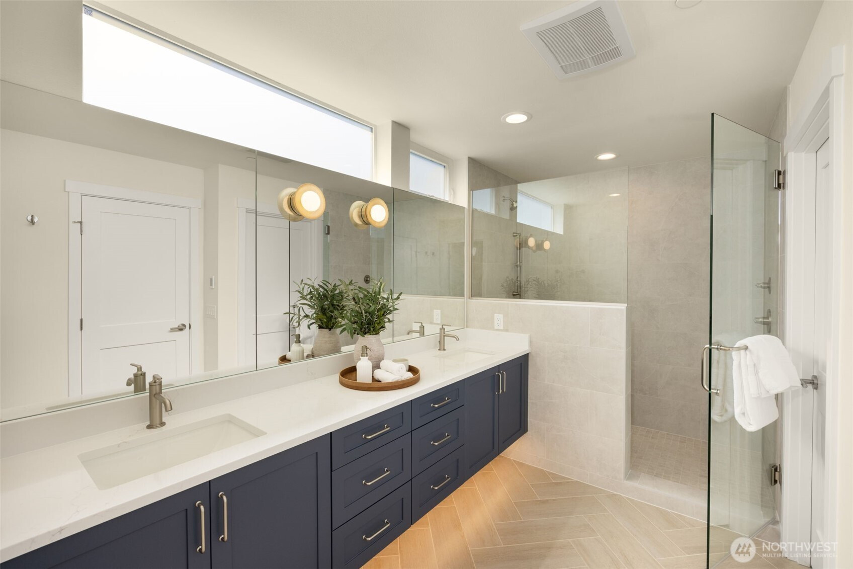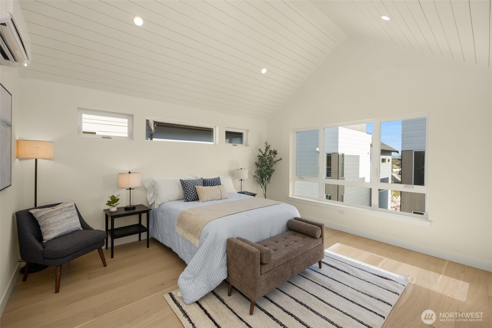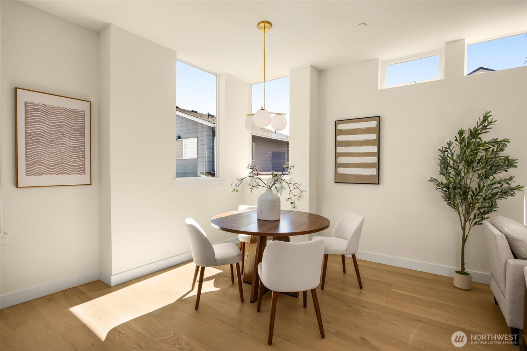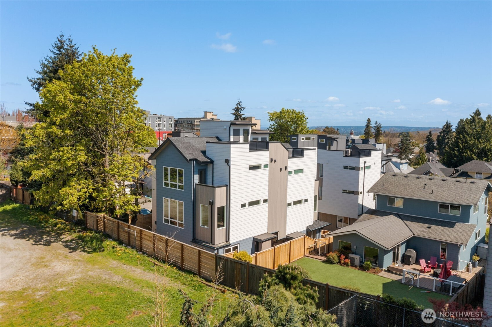 Come home to your light-filled new construction home at Capitol Pines by Blackwood Homes. Offering 3 bedrooms, 1.75 baths, and 1,625 sq ft over a thoughtful square floorplan with beautifully luxe finishes, this one does not live like your typical townhome! The main level is bright and open, awash in southern light through oversized and intentionially placed windows for privacy while letting all of the light in. Warm wood flooring, a Bosch stainless steel appliance package with oversized induction range, large island, custom Abodian cabinetry and an easy flow between the living, dining, and kitchen spaces, all work beautifully for both everyday living and entertaining. One level features two bedrooms, a full bath, and convenient laundry, creating flexible space for guests, work-from-home needs, or additional household living. The top-floor primary suite feels like a private retreat with vaulted shiplap ceilings, excellent natural light, a view of Mt. Rainier on a clear day, a walk-in closet, and a spectacular bath with heated floors, huge dual vanity and oversized shower. Above it all, the rooftop deck expands your living space outdoors with room to lounge, dine, and take in open territorial and mountain views. With dedicated parking and a location that puts you close to neighborhood coffee shops and dining, three grocery stores within reach, and easy access around the city, this special home combines modern design with comfortable, easy, urban living.
