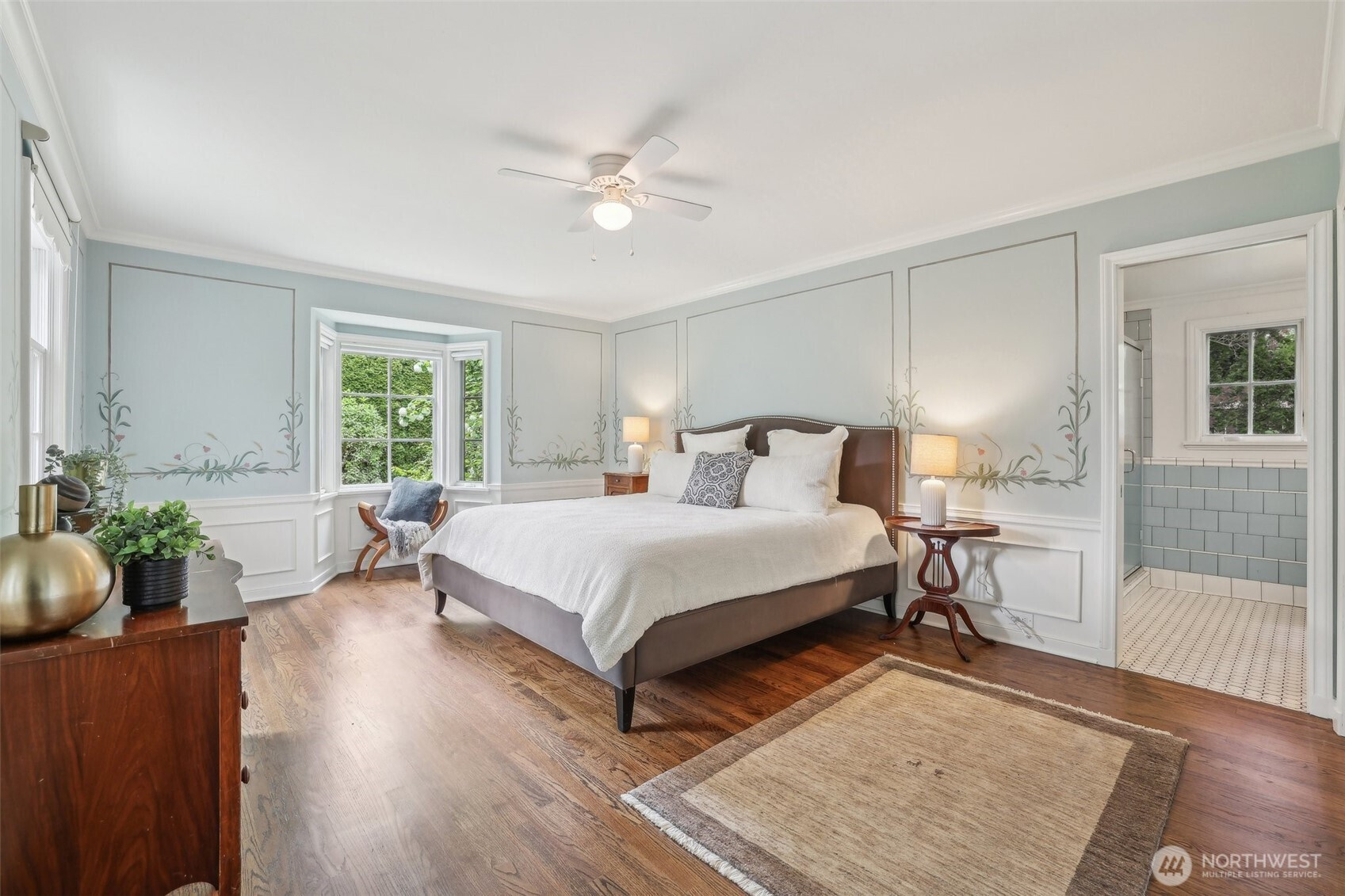 Rare William Bain Traditional in deeded Sheridan Heights with beach club access! Classic original features blend with modern-day renovations. Winding steps lead to dramatic entry & expansive living room with grand fireplace; formal dining room across. Lake and mountain views to the east, garden views to the west, extensive natural light throughout. Kitchen w/custom cabinets, paperstone countertops, stainless appliances, gas cooktop, & cozy nook. Spacious primary bedroom & bath with custom paint and garden views. Guest bedroom & full guest bath on main. Lower level includes huge family room & office space w/separate entry plus 3rd bedroom w/private 3/4 bath. Covered patio leads to unrivaled gardens & serene spaces; immaculately maintained.