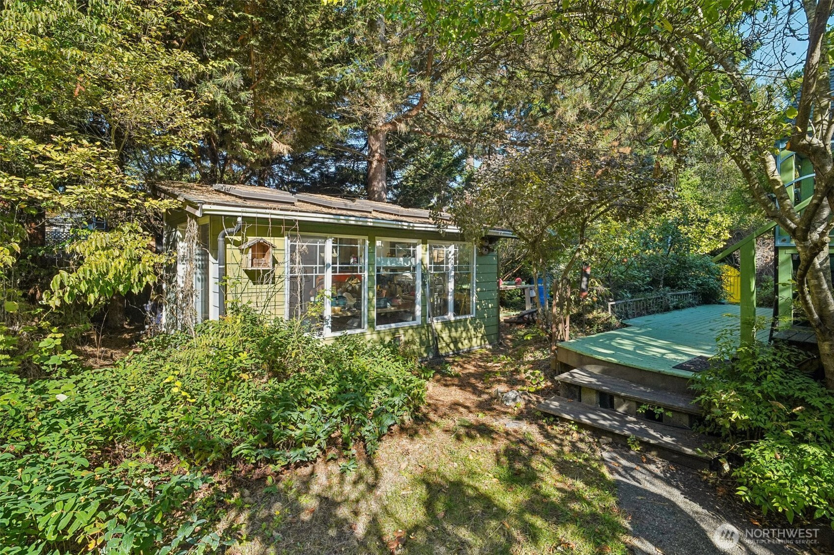 Ever dreamed of living in a secret garden? This enchanting 1930 home offers 3 bedrooms, an office, a sunroom, and two versatile outbuildings—nestled within a certified wildlife sanctuary yet just moments from Shoreline amenities and the light rail. Lovingly maintained by a skilled carpenter and gardener, this home blends timeless charm with endless potential. The laundry room could be converted into a second bath, while one shed serves as a workshop and the other could become a DADU or creative studio. Enjoy new paint, carpet, and tub/shower, plus skylights, electric fireplace, and a water filtration system. The lush, mature landscaping makes this property truly magical!