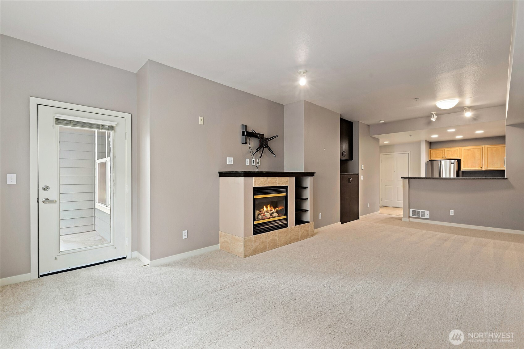 Wide open contemporary condo in the heart of downtown Redmond! Just minutes from Redmond Town Center, Bella Bottega, the Sammamish River Trail, bus, and new transit center, this home offers the perfect blend of convenience and comfort. The secure building features a controlled entrance, elevator access, and assigned parking in a secure garage, along with additional visitor parking. Inside, enjoy a bright great room with a cozy fireplace. The large bedroom and bath provide comfortable living, while the balcony offers a relaxing outdoor retreat. Recent updates include fresh paint, brand-new carpet, and new blinds for a clean, modern feel. The kitchen comes fully equipped with all appliances, including a brand-new high-end Bosch microwave. A recent remodel also added a convenient storage closet for extra space. Items that stay with the home include a large mirror and TV mount. Community amenities include a shared BBQ and patio area—perfect for entertaining. Move-in ready and ideally located near shopping, dining, trails, and major employers!