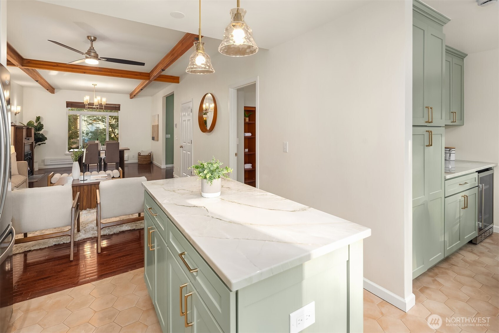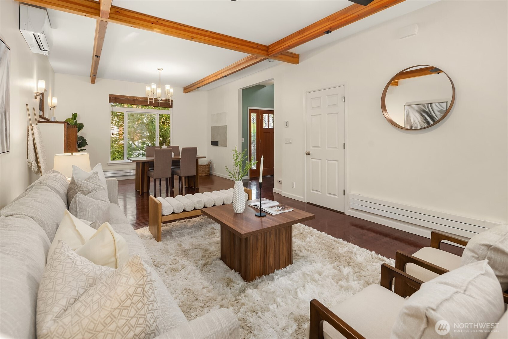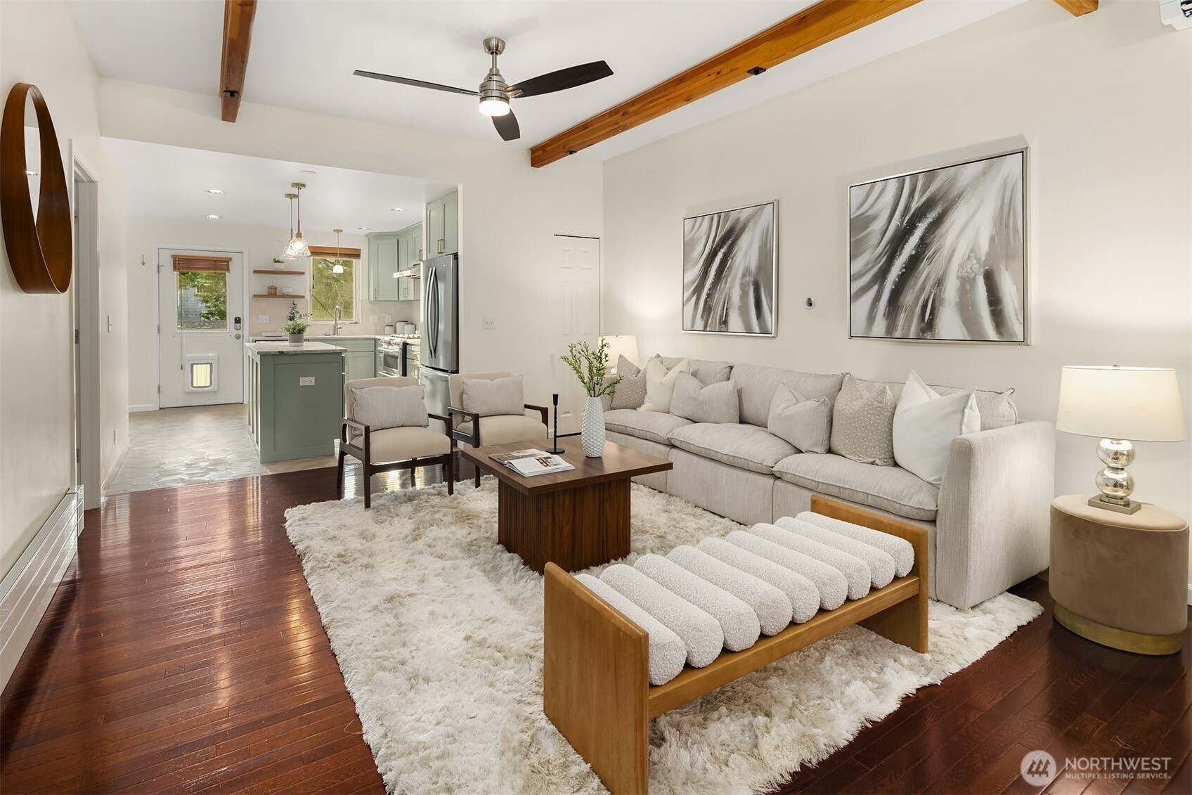 New Price! Remarkable Craftsman blends classic Seattle charm with modern upgrades & thoughtful design. At the heart of the home, a brand-new chef’s kitchen shines with premium finishes, AC, perfect for entertaining or everyday living. The spacious great room features exposed beams & a cozy fireplace, while hardwood floors & radiant heat add warmth & comfort throughout. Upstairs, the private primary suite opens to a roof deck for a true retreat. The lower level offers a fully permitted ADU with its own kitchen, laundry & 2 bedrooms, ideal for guests, rental income, or multi-generational living. Outside, enjoy a beautifully landscaped yard with brick patio, fire pit & out building. Quiet street + 1 min walk to Rapid Ride G line.