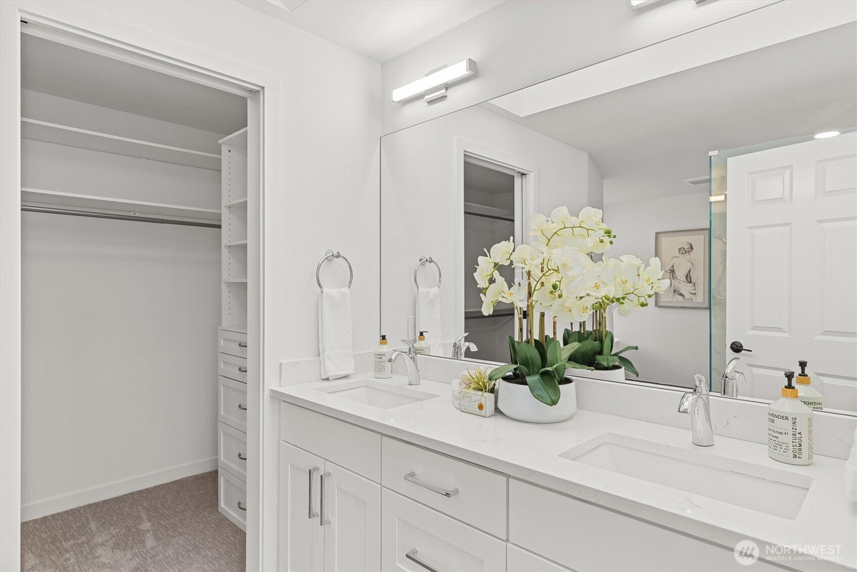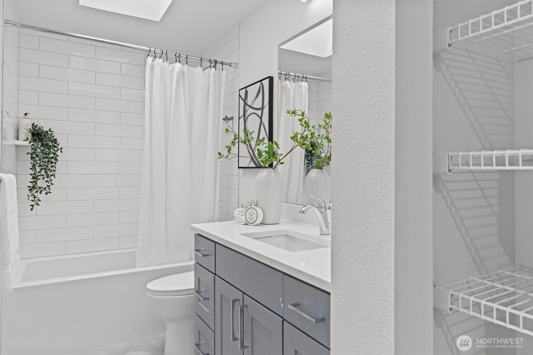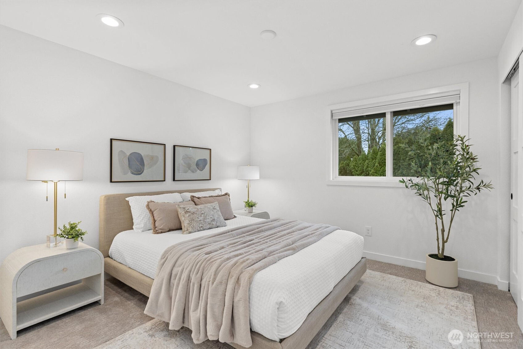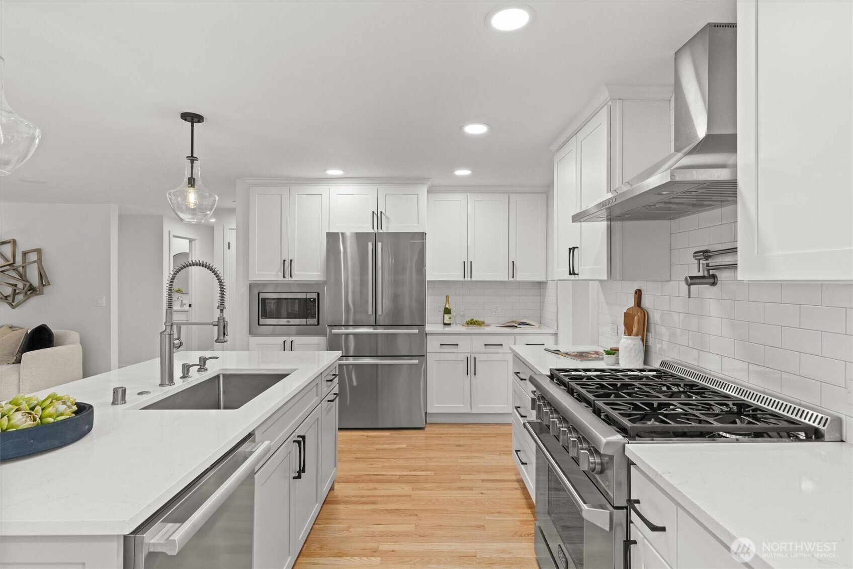 A fully remodeled and updated retreat in a highly convenient location. This beautifully updated 2-story home is nestled on a quiet cul-de-sac just minutes from Downtown Woodinville. Fresh interior and exterior paint and new carpet make it move-in ready. The open-concept kitchen showcases quartz countertops and stainless-steel appliances and opens to the eating area and family room ideal for entertaining. The primary suite offers a spa-inspired 5-piece bath with heated floors and a walk-in closet. Smart home features add modern ease. Outdoor spaces shine with curated landscaping, layered greenery, a fully fenced private yard, and an expansive deck. A finished garage with EV charging, a detached outbuilding with power, and a hot tub complete the home. Close to Brickyard Park & Ride, I-405, and walkable to Northshore Schools.
