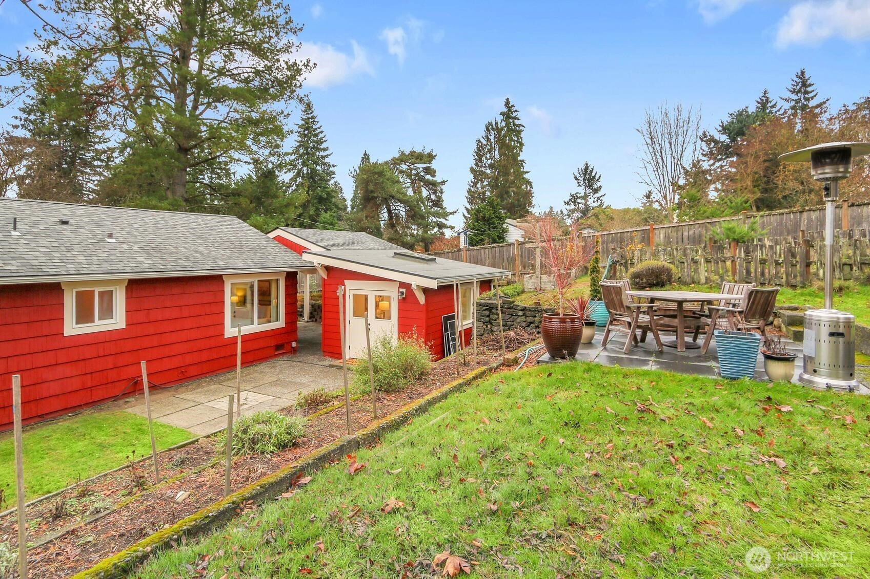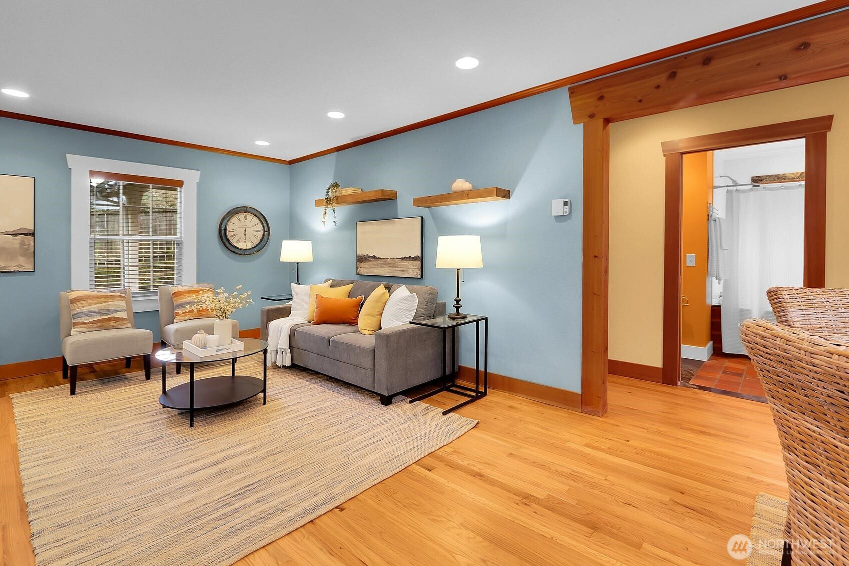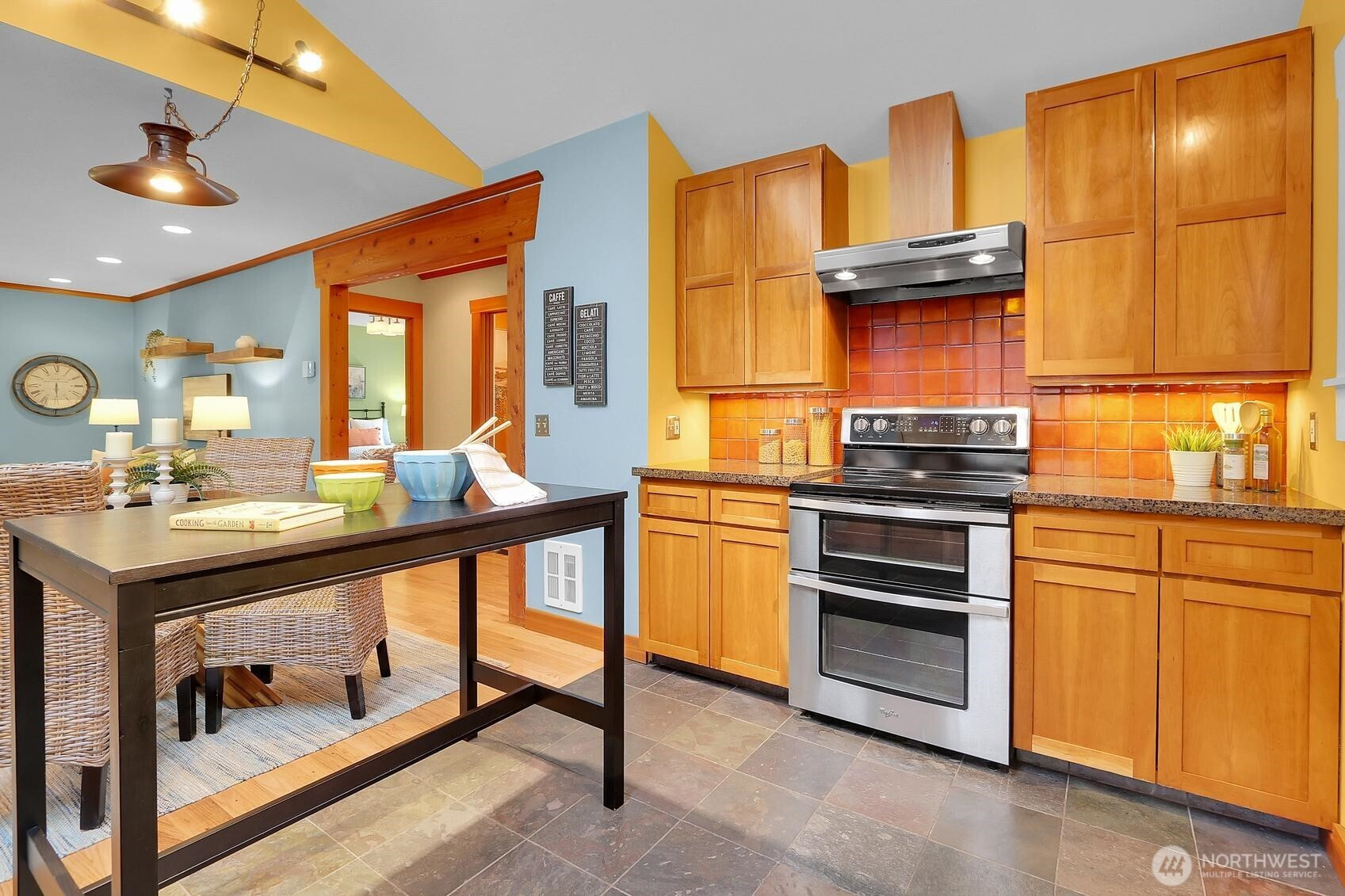 This bright, cheerful home greets you with an abundance of light, inviting color, and gleaming hardwoods. Thoughtful use of space and tasteful touches of tile, marble, and custom woodworking create a setting that feels truly special. Remodeled kitchen features granite counters, stainless appliances, and a soaring ceiling with skylights. The updated bathroom includes a jetted soaking tub, marble accents, and sunbaked terracotta tiles originally sourced from a centuries-old French castle. The entryway is ideal for shoes and jackets, and both the entry and office offer the comfort of heated travertine flooring. The yard is a dream for gardening and entertaining, and the detached studio adds valuable flex space. This is a home with real magic.