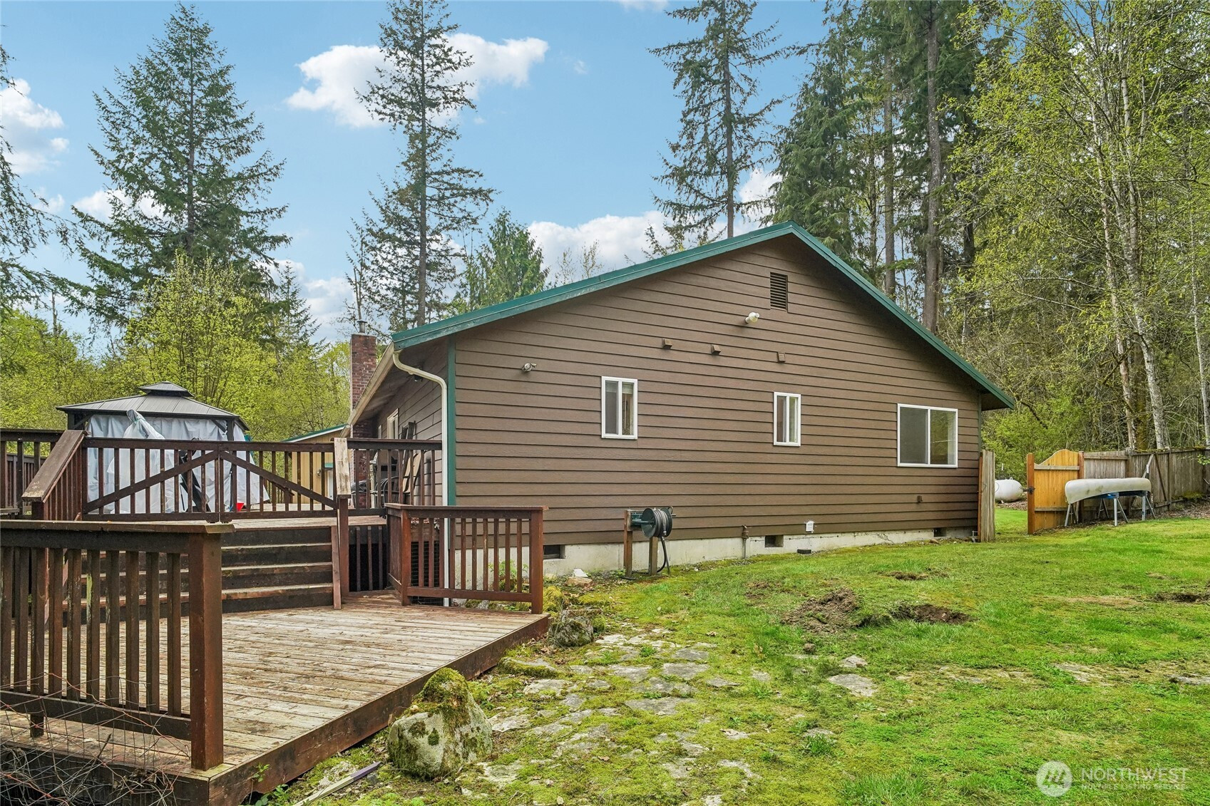 Beautiful 3-bedroom, 2-bath rambler with a versatile 4th room that can serve as an additional bedroom or home office. The light-filled kitchen is the heart of the home, offering abundant cabinetry and generous counter space. Relax by the cozy fireplace with wood stove insert or entertain guests on the expansive deck. The utility room adds functionality with a wash basin, closet, and water heater, a Samsung combo washer dryer (no dryer vent). This well-maintained home features a durable metal roof, heat pump, and automatic propane generator for year-round comfort and peace of mind. Set on a private and serene parcel backing to a lush greenbelt, this property offers the perfect blend of tranquility and space. Fully fenced grounds provide endless possibilities for animals, gardening, or a hobby farm. Enjoy room to roam and peaceful outdoor living under starry skies. A standout feature is the impressive 36’ x 32’ (1,152 sq ft) detached garage/shop, ideal for hobbies, projects, or storage. Located just 10 minutes from downtown Duvall with its shops, restaurants, and everyday conveniences, this home offers a quiet rural feel with easy access to amenities. The Snoqualmie Valley is known for its vibrant arts scene, concerts, and festivals making this a rare opportunity to own your own slice of paradise. No HOA and pre-inspected.