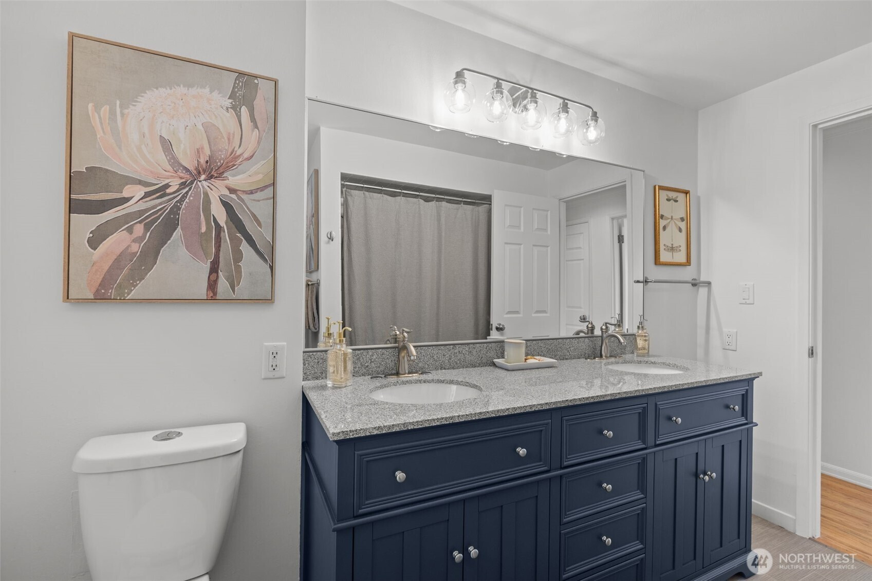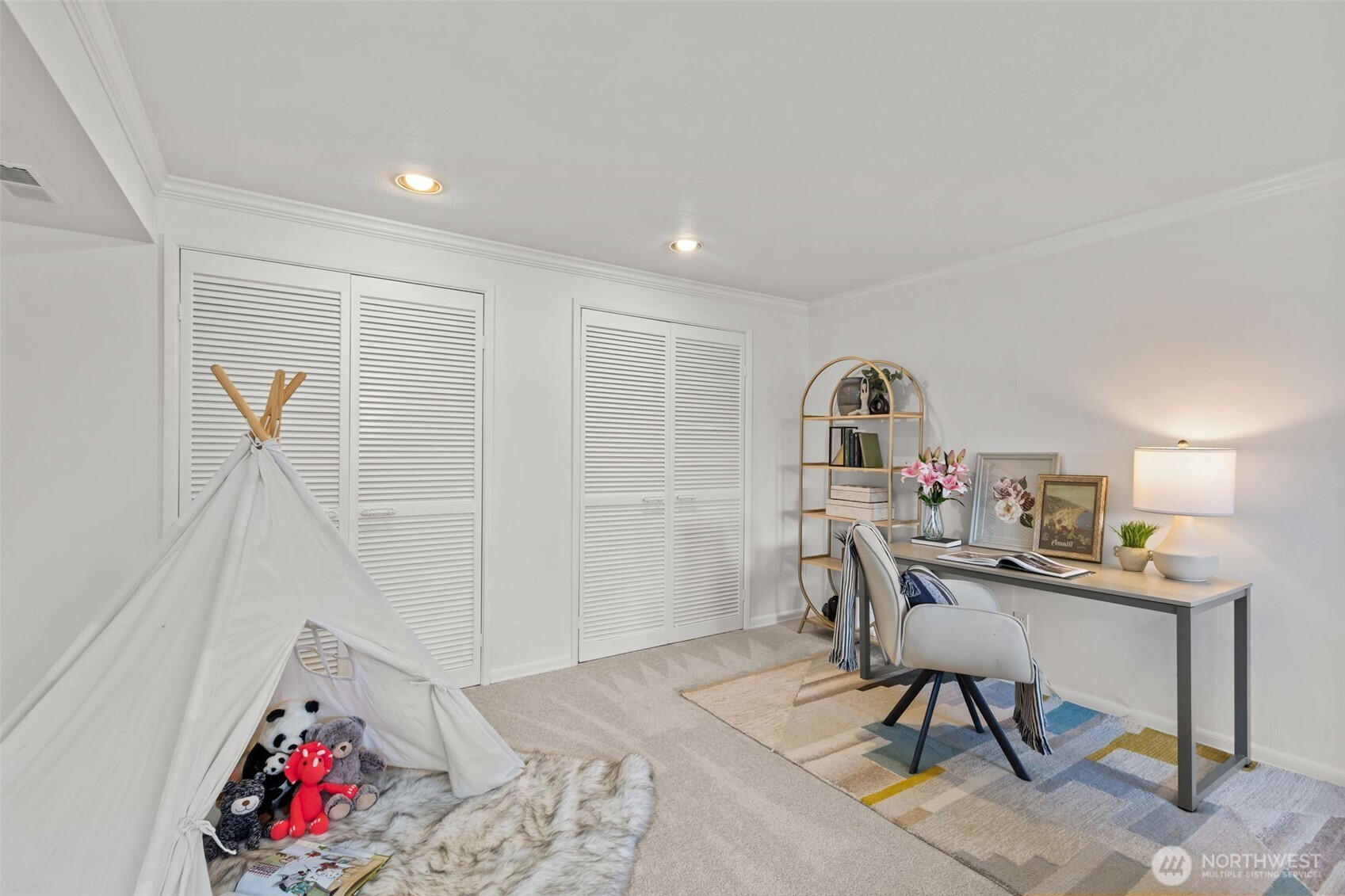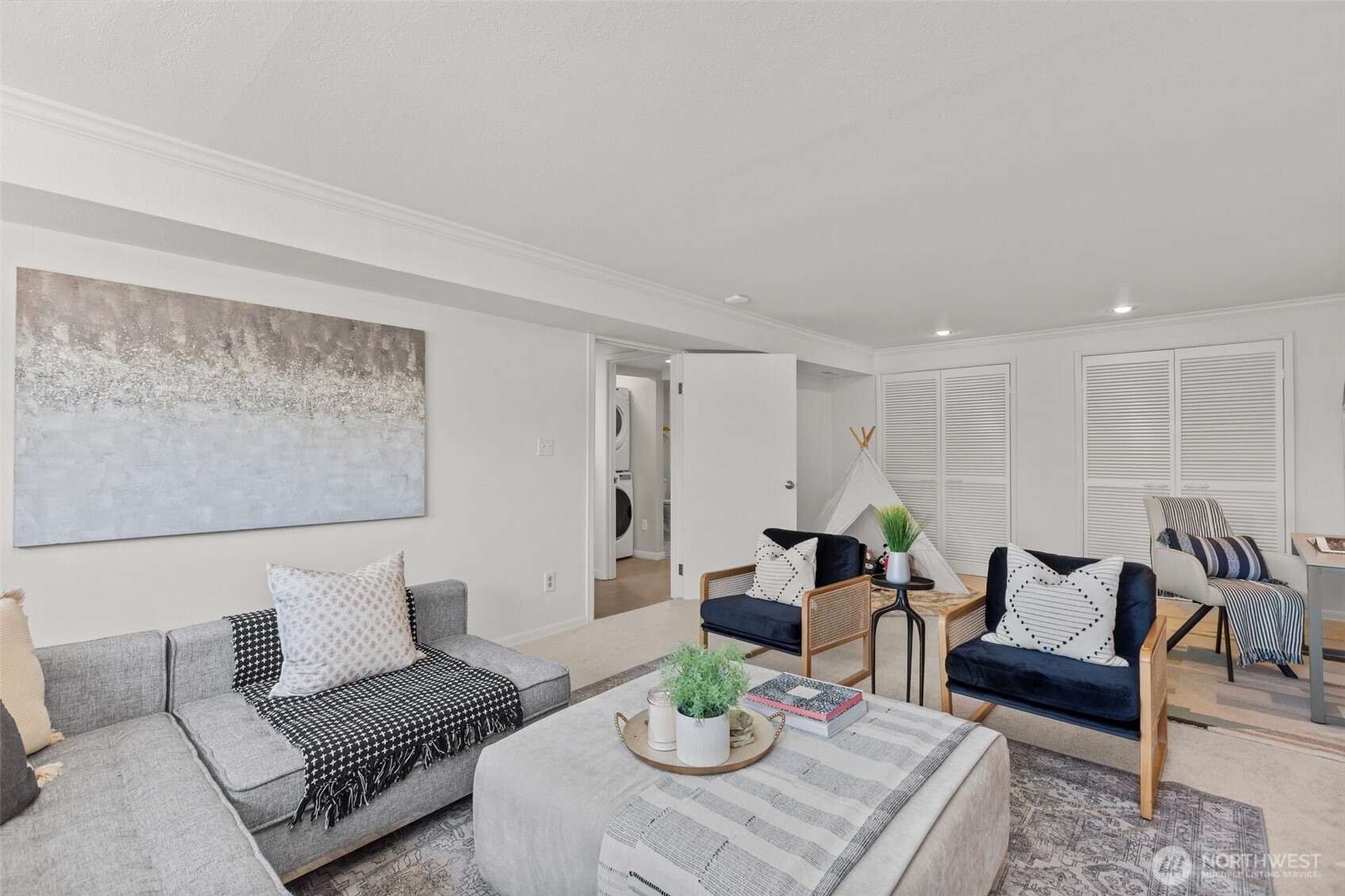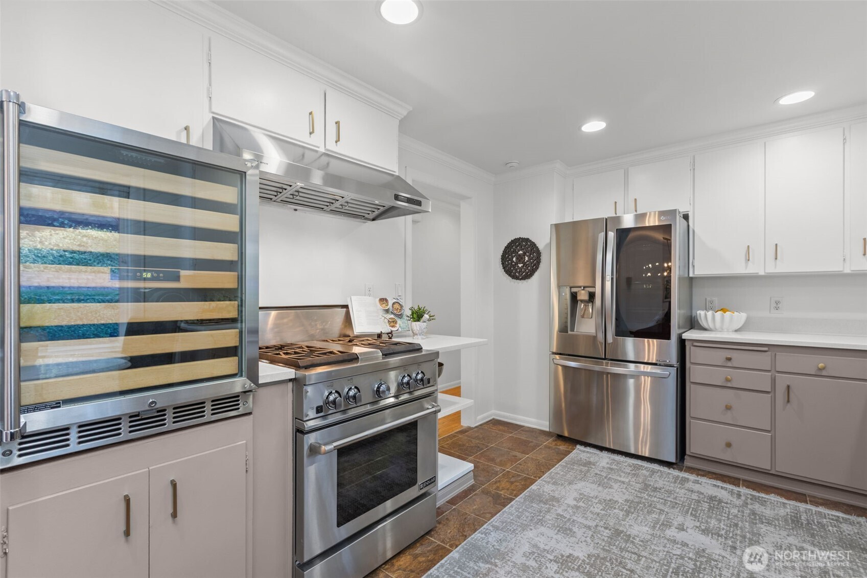 Mid-century charm meets modern comforts in this beautifully maintained 3-bdrm, 2-bath home with a natural flow between the living, dining, and kitchen spaces. Light-filled and east-facing with oversized picture windows and hardwood floors, this home offers energy-saving solar (2023), a newer roof (2021), A/C mini-splits, and central heat. Enjoy the chef’s kitchen with a gas range, quartz countertops, and a wine fridge. French doors open to a private, fully fenced outdoor sanctuary with easy-care landscaping, an expansive levelled terraced backyard, a large patio for entertaining, a gardener's greenhouse, and a storage shed. Spread out in the spacious lower-level bonus room with a cozy wood-burning fireplace and new carpet. Enjoy peace of mind with an updated exterior, painted in 2024, with updated siding. Tucked on a quiet street with minimal through traffic in a coveted Shoreline neighborhood, yet close to shops, grocery stores, parks, and trails. This home sits on a private 9,000 square foot lot with a spacious two-car garage and quick access to Light Rail, I-5, and Hwy 99, all within the highly rated Shoreline School District. Welcome home!