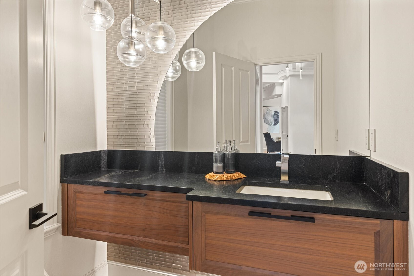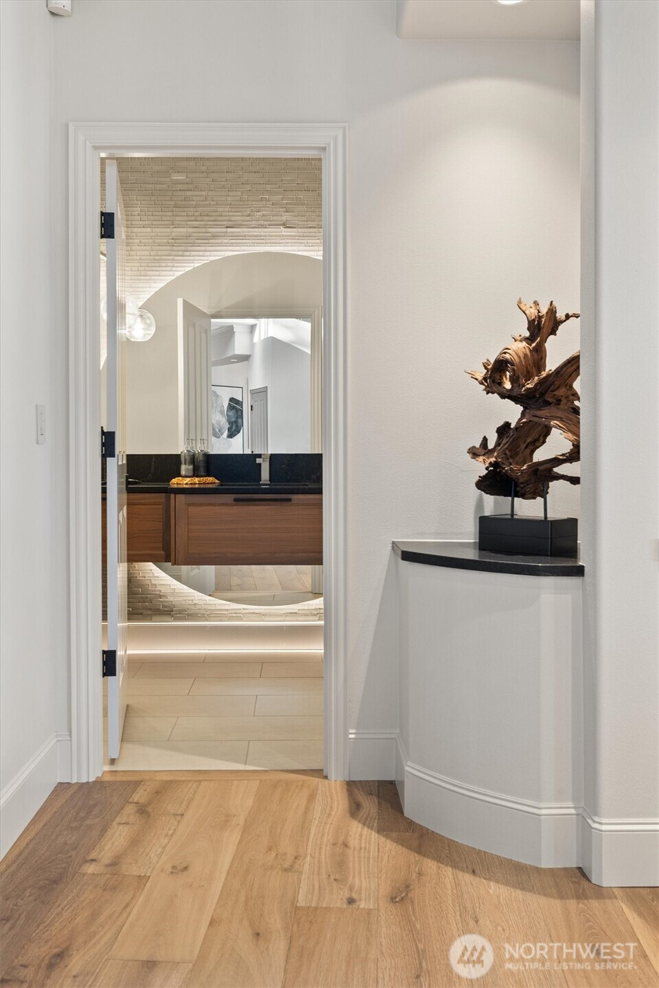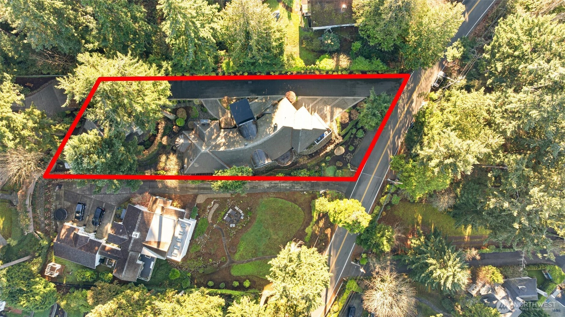 Defined by natural materials, abundant light, & sculptural, softened architecture, this refined residence offers a calm, intentional approach to Northwest luxury living. Set on almost 1/2 an acre of meticulously manicured grounds, offers breathtaking views of the Sound, providing a serene treehouse-like retreat. The custom floorplan highlights a spacious kitchen with oak cabinets and beautiful hardwood floors, perfect for both daily living and grand entertaining. The luxurious primary suite features a private patio, large walk-in closet, and a five-piece bath with a soaking tub and chandelier. With three additional bedrooms, a media room, office, and a grand wine cellar, this estate also includes a detached 1-bed, 1-bath ADU for guests or rental income. Enjoy five garage spaces and unparalleled privacy in this once-in-a-lifetime home!
