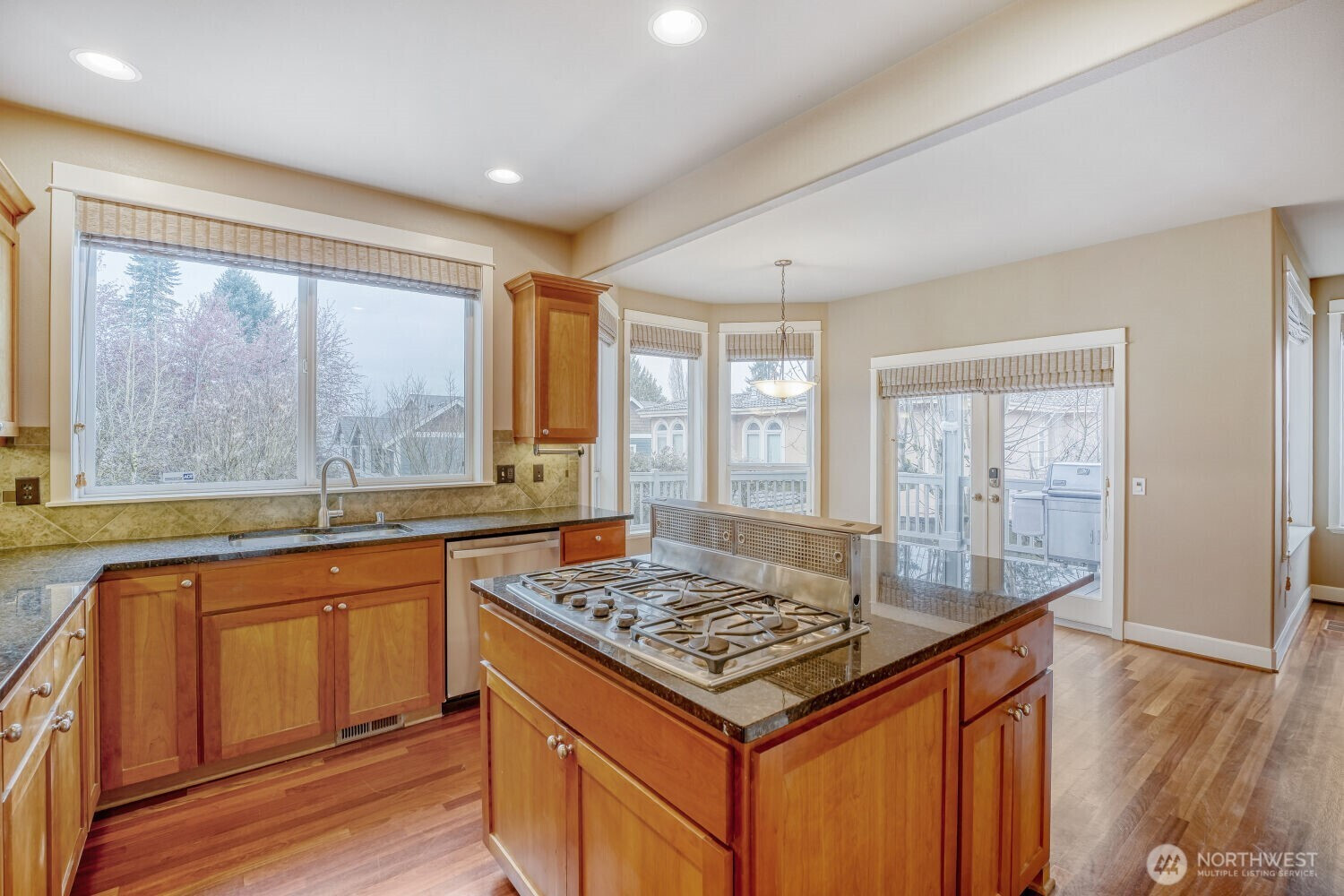 Set in Kirkland’s coveted East of Market neighborhood, this beautifully maintained, move-in-ready home offers over 3,100 sq ft of refined living, blending thoughtful upgrades, scenic views, and a serene garden setting. Fresh paint and new carpet create a crisp, welcoming feel throughout the inviting floor plan, which features a main-floor den and a versatile upstairs bonus room. Unrivaled in comfort and efficiency, the home features a new high-quality roof (2022) with fully owned solar panels, a 20-kWh backup battery, and Hunter Douglas motorized shades for ultimate peace of mind. Upstairs, the primary suite captures stunning views of Lake Washington and the Olympic Mountains, and the spa-like primary bath is elevated by a luxury TOTO NEOREST smart toilet. Outside, the fully fenced backyard feels like a private retreat, complete with an oversized deck, fragrant osmanthus, and two mature ginkgo trees adding year-round beauty and seasonal character. Featuring a rare 3-car attached garage and access to top-rated schools including Peter Kirk Elementary, this home is ideally located just a short stroll from Reservoir Park, Crestwoods Park Athletic Fields, and Tot Lot Park, as well as minutes to Kirkland Urban and the vibrant downtown waterfront. A rare opportunity to enjoy refined living in one of Kirkland’s most sought-after neighborhoods!