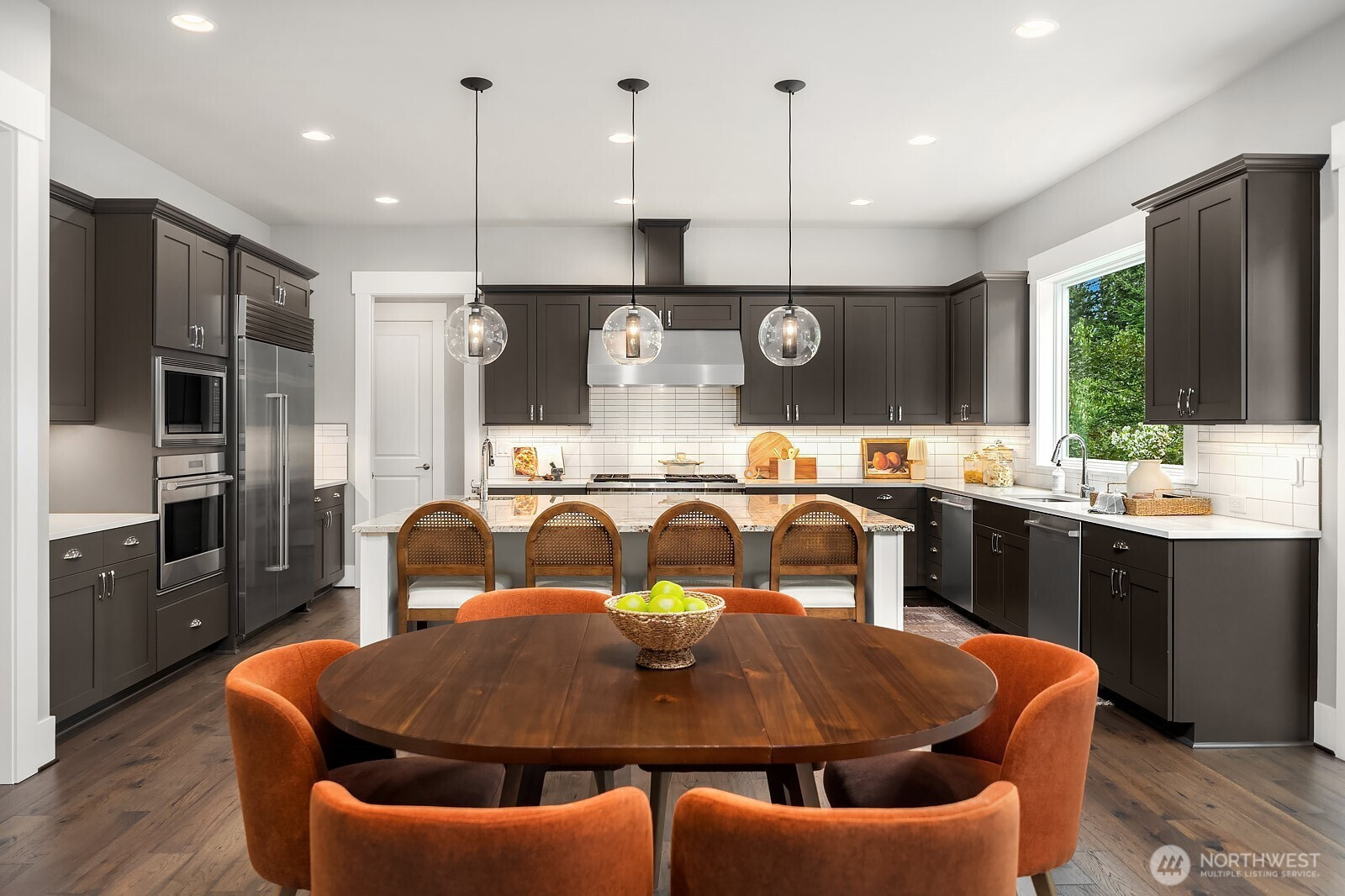 Luxury awaits in West Bellevue’s coveted Calabria neighborhood with this exceptional JayMarc custom home. Just minutes from downtown Bellevue, I-90, and premier shopping and dining, this 5,861 sq ft residence blends timeless elegance with modern comfort. The thoughtful floor plan offers 6 bedrooms, 5.25 baths, soaring 10-ft ceilings, rich millwork, custom built-ins, and abundant natural light throughout. The gourmet chef’s kitchen is the heart of the home, featuring a dramatic quartz island, Sub-Zero refrigerator, Wolf appliances, a walk-in pantry, and seamless flow to the great room, ideal for everyday living and entertaining. A private main-level guest suite provides flexibility for guests or multigenerational living, while the upper-level primary retreat impresses with a spa-inspired five-piece bath and generous walk-in closet. Year-round entertaining extends outdoors to a covered patio with fireplace and a fully fenced, low-maintenance yard. Additional highlights include a 100-bottle temperature-controlled wine vault, dedicated office, expansive daylight basement, and a 3-car garage. No HOA and the rare option for a 38’ boat slip complete the package. Unbeatable walkable location near Enatai Elementary, Lake Washington waterfront parks, Old Bellevue dining and shopping, plus convenient bus access to Seattle and Seahawks games.