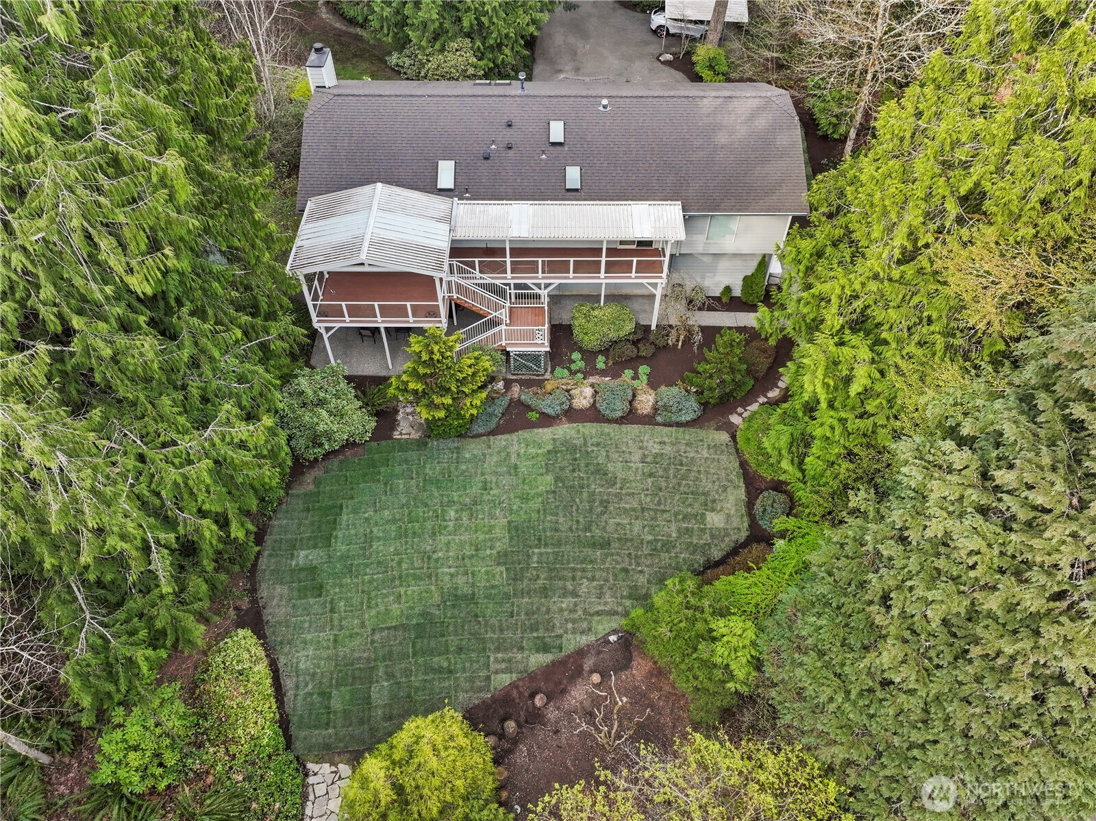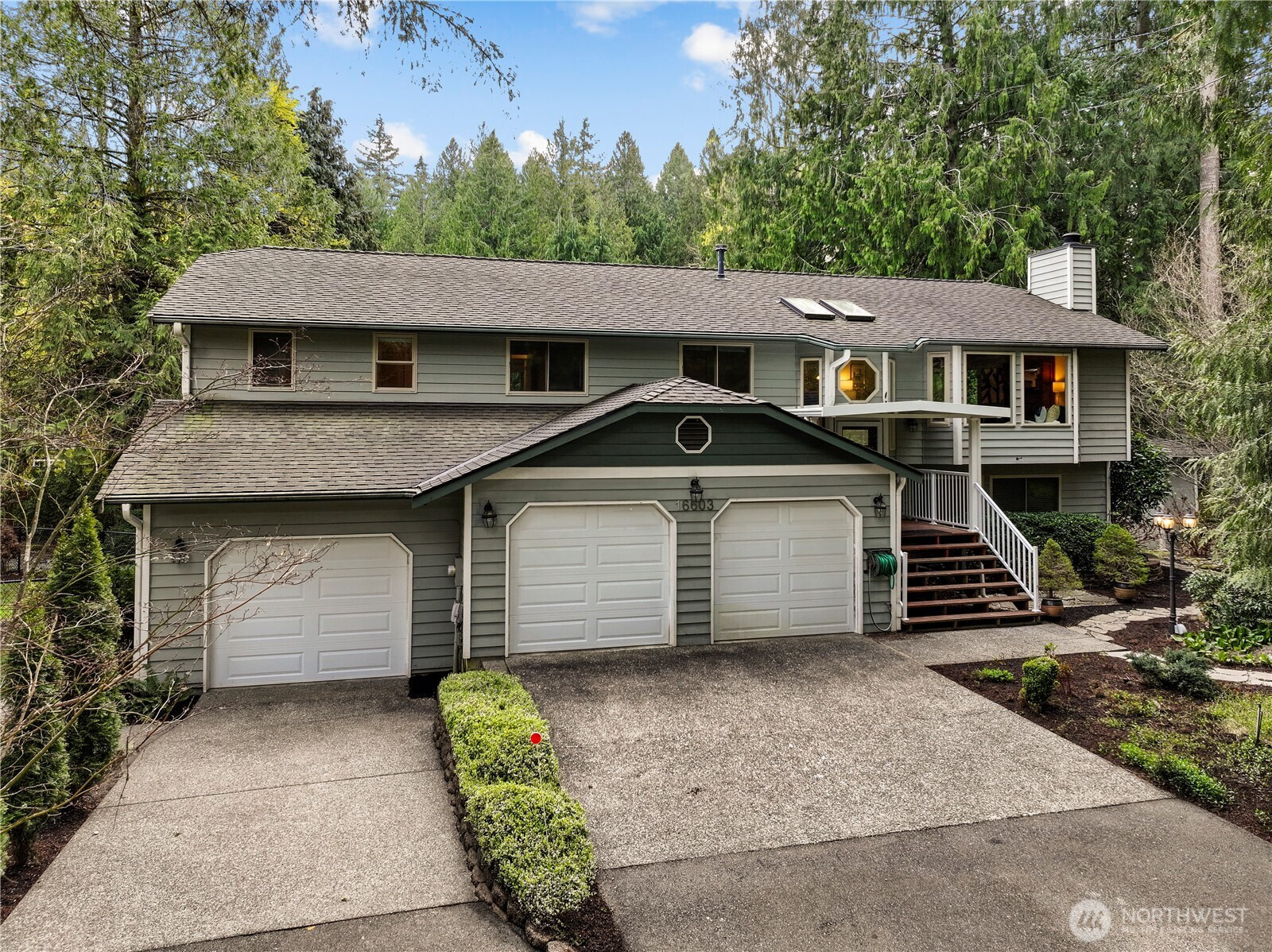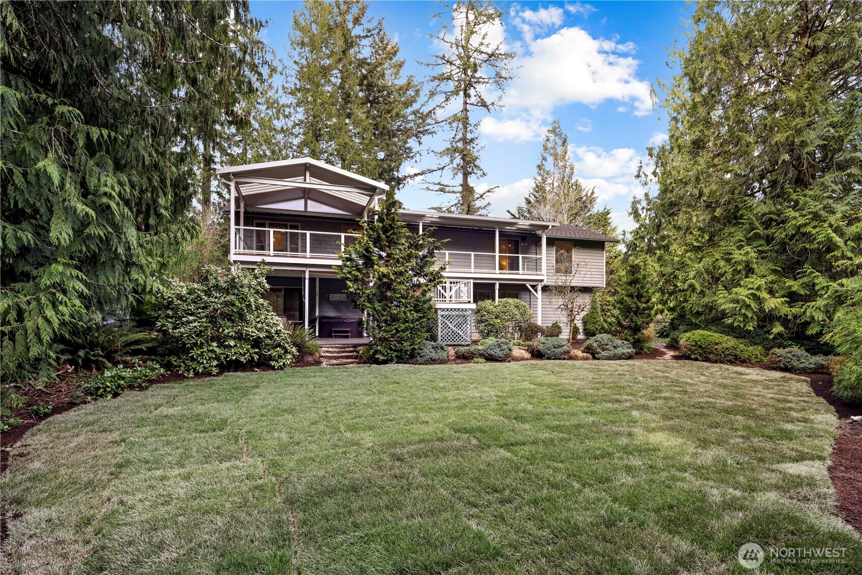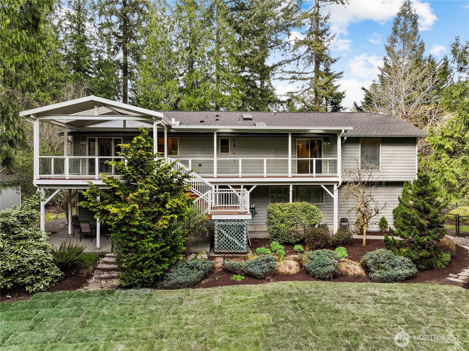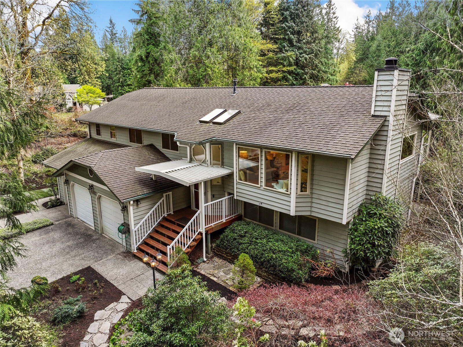 The Best Home in Cottage Lake! Tucked away on 1.74 magical acres, this Woodinville retreat feels like your own private getaway—where mornings begin with coffee on the deck listening to birdsong, afternoons are spent exploring the yard, and evenings end around the firepit under the stars. Designed for gathering and making memories, the expansive covered deck and lower patio create the perfect setting for year-round entertaining. Host summer barbecues, soak in the hot tub on crisp evenings, or invite friends over for s’mores and stories around the campfire. Inside, warmth and comfort fill every space. The beautifully updated kitchen features granite countertops, rich cherry cabinetry, stainless steel appliances, and plenty of room to cook, bake, and gather. Upstairs, the spacious primary suite is a peaceful retreat with its own 3/4 bath, walk-in closet, and private access to the deck overlooking the lush backyard. Two additional oversized bedrooms and a full bath offer room for everyone. Downstairs is made for fun and flexibility with a huge rec room, wet bar, Murphy bed, fourth bedroom, and 3/4 bath—ideal for movie nights, guests, multigenerational living, or a private work-from-home setup. A 3-car garage, workshop space, extra covered parking for two, dog run, generator, covered gutters, and heat pump make everyday living easy. Minutes to 520, 405, parks, trails, and Woodinville wine country—this is the kind of home people never want to leave.