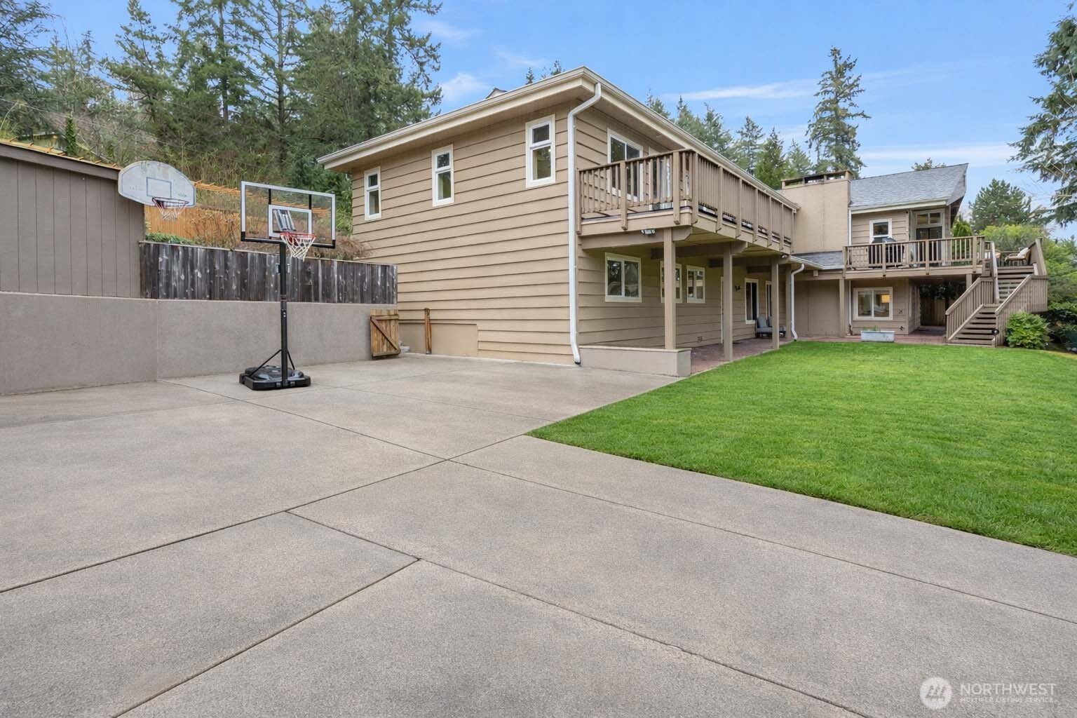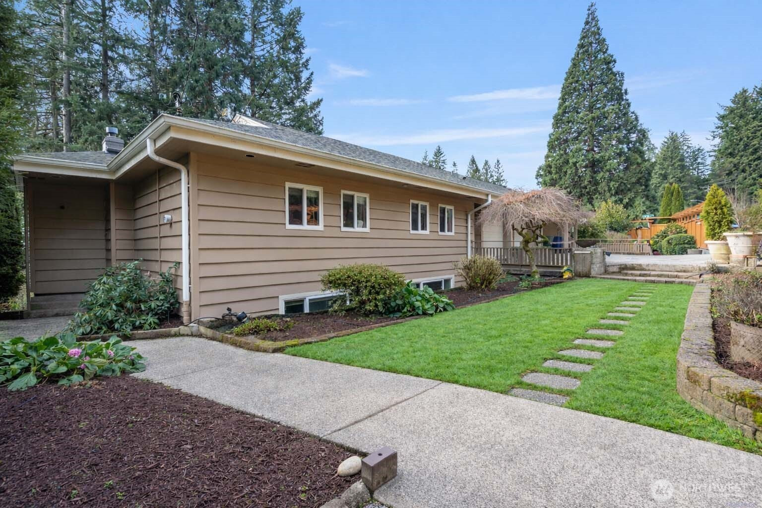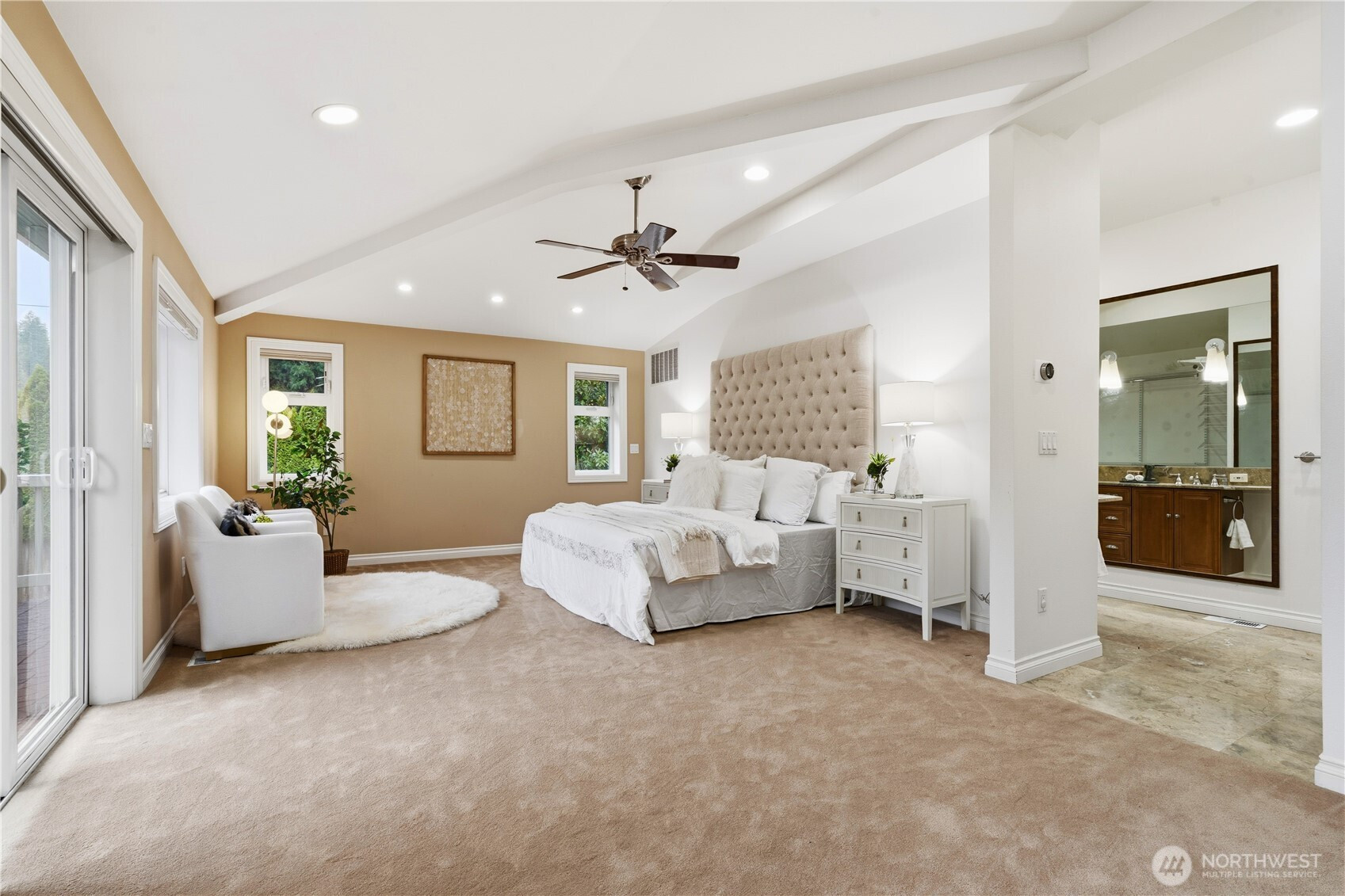 Exceptional Bellevue home just minutes from Vasa Park and top-rated Bellevue schools. This expansive 5,000+ SF residence on a shy 1/3 acre offers luxury and versatility with a main-floor primary suite featuring a private deck, plus a guest suite with full bath. Soaring vaulted ceilings elevate the open living spaces. The chef’s kitchen is designed to entertain, showcasing a high-end Viking range, double ovens, double dishwashers, walk-in pantry, and oversized island. Elegant dining opens to a serene deck. Lower level includes an additional bedroom, flex room, and family room. A full MIL suite with kitchen, 2 beds, 2 baths, laundry, and private entrance offers multi-generational living or income potential. Gated RV/boat parking, lush landscaping, water feature, covered outdoor living, and a lovely leveled backyard complete this exceptional offering.