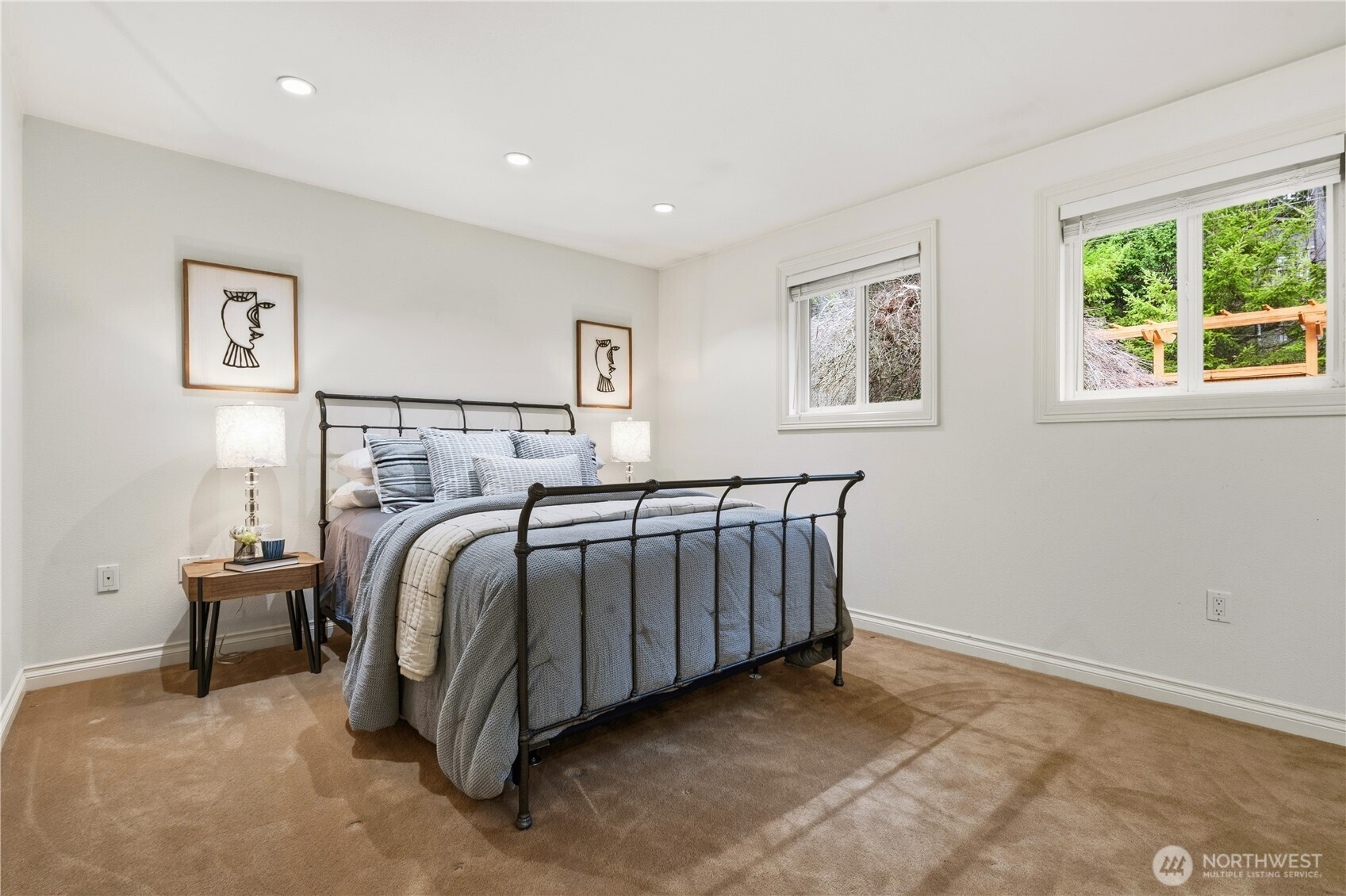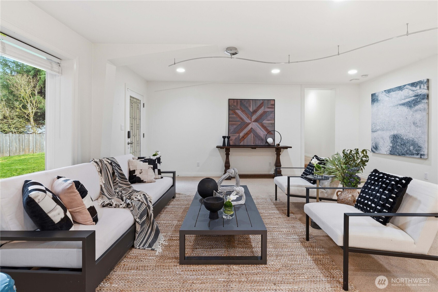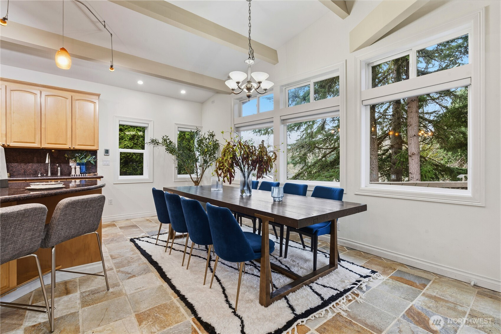 Exceptional Bellevue home just minutes from Vasa Park and top-rated Bellevue schools. This expansive 5,000+ SF residence on a shy 1/3 acre offers luxury and versatility with a main-floor primary suite featuring a private deck, plus a guest suite with full bath. Soaring vaulted ceilings elevate the open living spaces. The chef’s kitchen is designed to entertain, showcasing a high-end Viking range, double ovens, double dishwashers, walk-in pantry, and oversized island. Elegant dining opens to a serene deck. Lower level includes an additional bedroom, flex room, and family room. A full MIL suite with kitchen, 2 beds, 2 baths, laundry, and private entrance offers multi-generational living or income potential. Gated RV/boat parking, lush landscaping, water feature, covered outdoor living, and a lovely leveled backyard complete this exceptional offering.