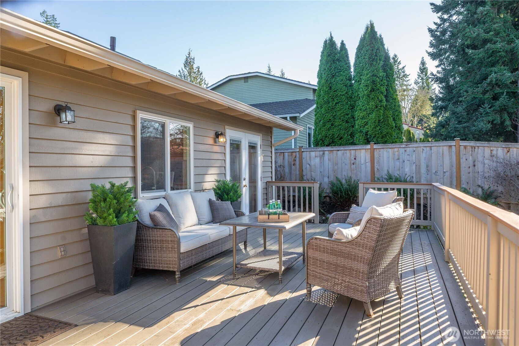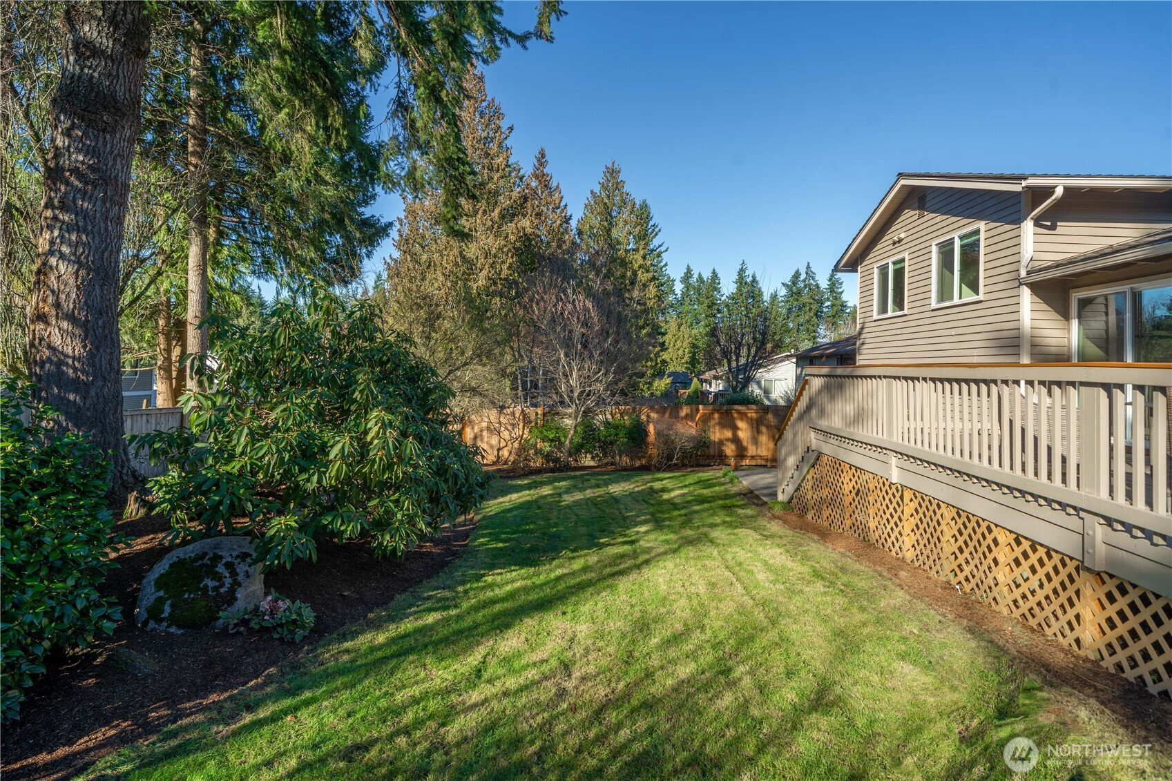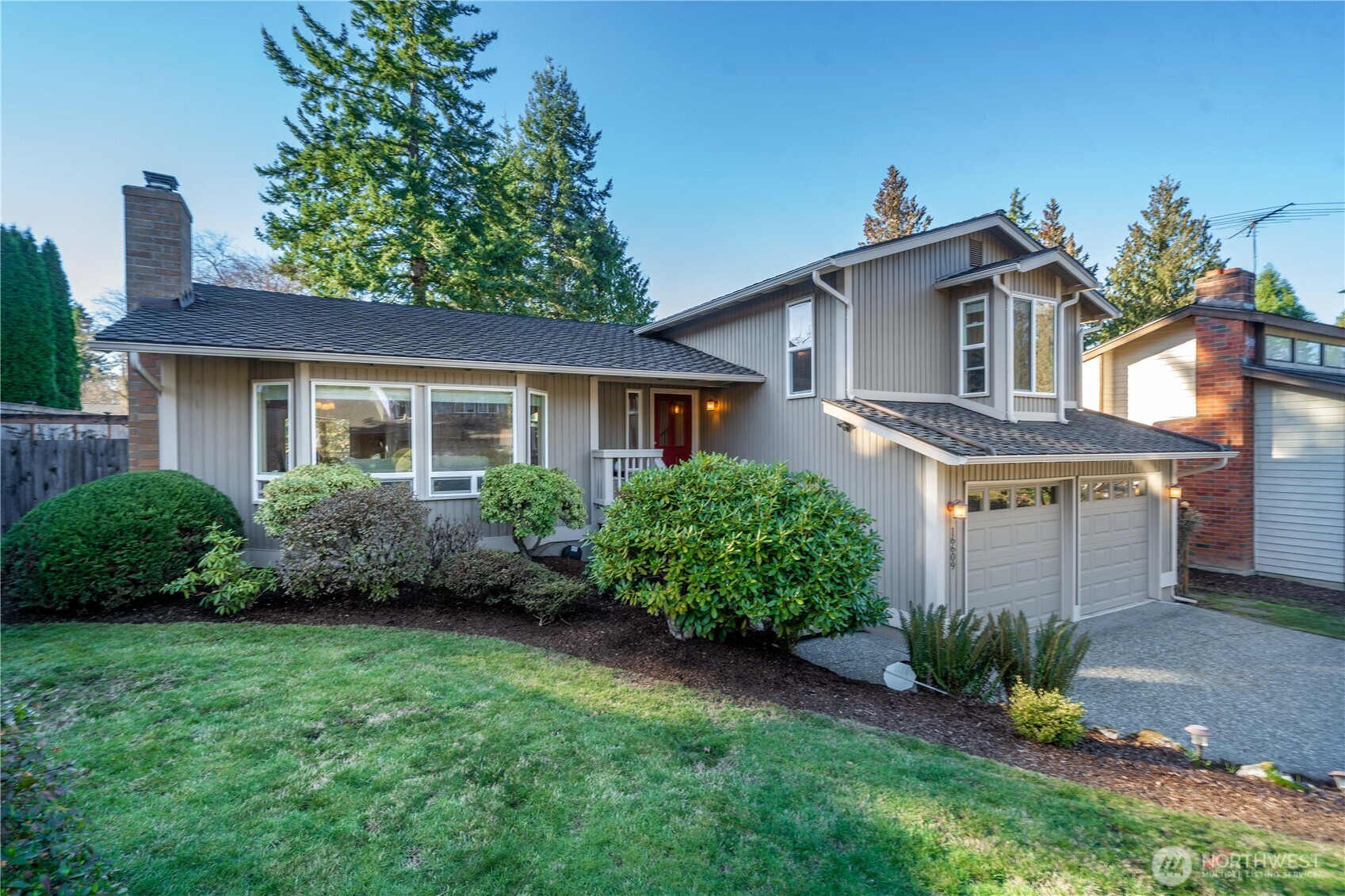 Prepare to fall in love with this beautifully maintained home, tucked on a quiet street in coveted Fairwood Greens. Vaulted ceilings, a cozy fireplace, and walls of windows keep the main living space bright, airy, and welcoming. The kitchen with vaulted ceilings was remodeled in recent years with solid surface counters, a generous island, and pantry storage, then opens to a spacious entertainment deck that is ready for summer dinners, weekend lounging, and easy gatherings. Upstairs you will find a serene primary suite with an attached bath and walk-in closet, plus two additional bedrooms and full bath. Downstairs, enjoy extra living space with a slider to the patio, ideal for movie nights, hobbies, or guests. Step outside to a fully fenced gardener’s dream with mature landscaping, raised garden beds, and a handy storage shed, plenty of room to relax, play, and grow. Peace of mind comes with major upgrades, including a Presidential TL 50 year roof, gutters, exterior paint, and skylight, all completed in 2022, plus a newer furnace and central air in 2020. Newer appliances add even more value, including a 2024 dishwasher, and a 2025 washer and dryer that stay. Just bring your boxes and settle into a carefree, low maintenance lifestyle in a desirable neighborhood with a great commuter location. About 25 minutes to Coal Creek Parkway, minutes to Fairwood Shopping, and close to Fairwood Golf and Country Club, membership required.