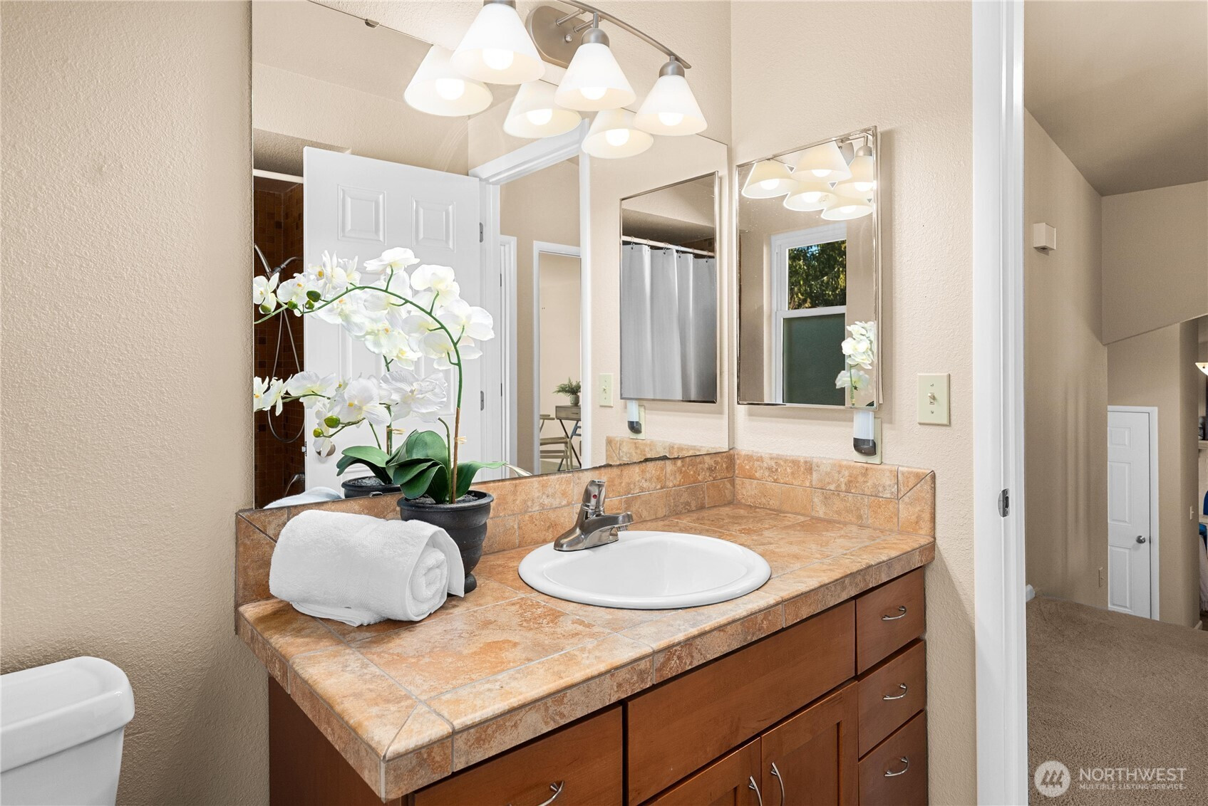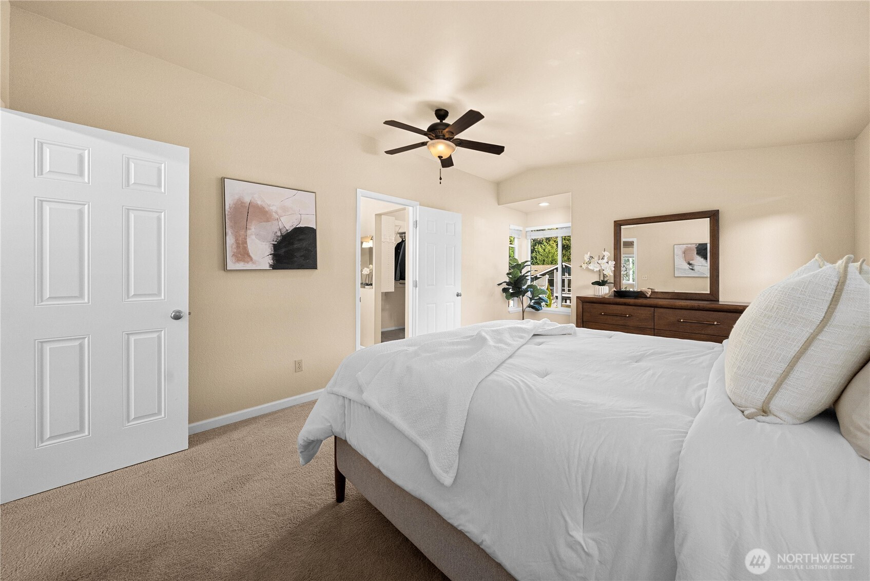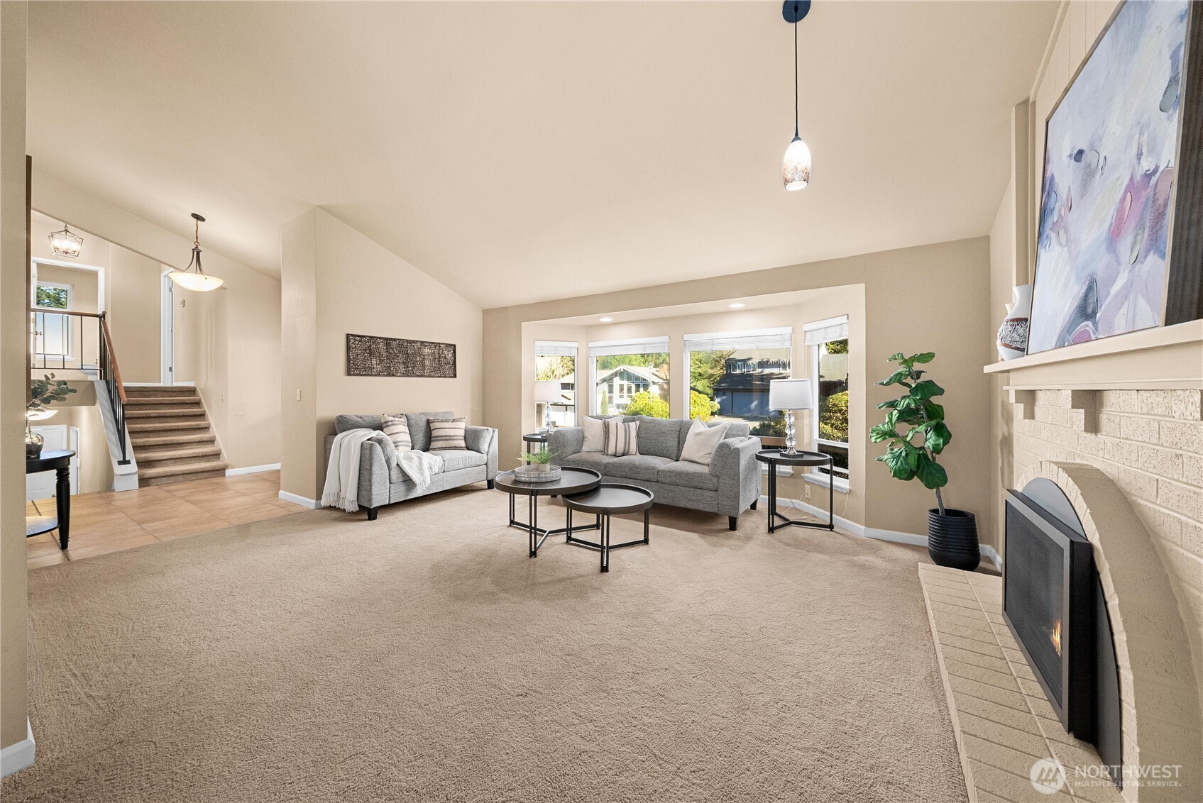 Prepare to fall in love with this beautifully maintained home, tucked on a quiet street in coveted Fairwood Greens. Vaulted ceilings, a cozy fireplace, and walls of windows keep the main living space bright, airy, and welcoming. The kitchen with vaulted ceilings was remodeled in recent years with solid surface counters, a generous island, and pantry storage, then opens to a spacious entertainment deck that is ready for summer dinners, weekend lounging, and easy gatherings. Upstairs you will find a serene primary suite with an attached bath and walk-in closet, plus two additional bedrooms and full bath. Downstairs, enjoy extra living space with a slider to the patio, ideal for movie nights, hobbies, or guests. Step outside to a fully fenced gardener’s dream with mature landscaping, raised garden beds, and a handy storage shed, plenty of room to relax, play, and grow. Peace of mind comes with major upgrades, including a Presidential TL 50 year roof, gutters, exterior paint, and skylight, all completed in 2022, plus a newer furnace and central air in 2020. Newer appliances add even more value, including a 2024 dishwasher, and a 2025 washer and dryer that stay. Just bring your boxes and settle into a carefree, low maintenance lifestyle in a desirable neighborhood with a great commuter location. About 25 minutes to Coal Creek Parkway, minutes to Fairwood Shopping, and close to Fairwood Golf and Country Club, membership required.