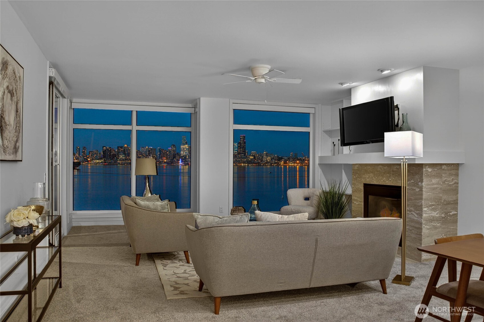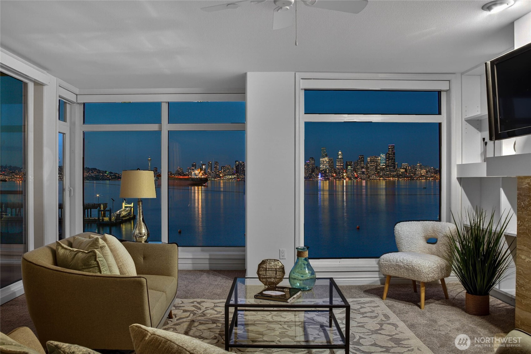Welcome to life on the beach in this exceptional Point Elliott condo, where panoramic city views take center stage from nearly every room including the spacious and serene primary suite! Spanning a generous 1,654 square feet, this thoughtfully designed residence offers two spacious bedrooms plus a dedicated home office, perfectly balancing comfort and functionality. The modern, sophisticated interiors exude understated luxury with a timeless, elegant aesthetic throughout. Enjoy the rare convenience of two covered parking spaces and the peace of mind of an owner-centric HOA that prioritizes quality living. Ideally situated just across from the water taxi to downtown Seattle, Marination Mai Kai, Salty's and moments from the vibrant Alki Beach, this home delivers the perfect blend of urban access and coastal charm. A truly refined retreat in one of the Seattle’s most sought-after locations.