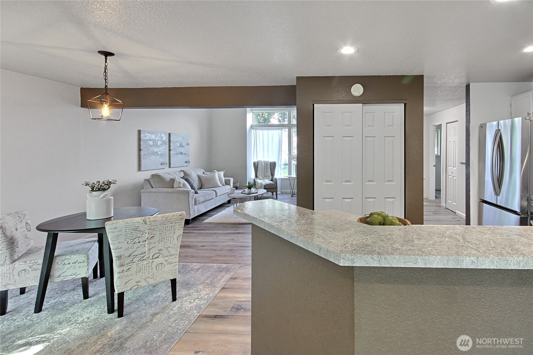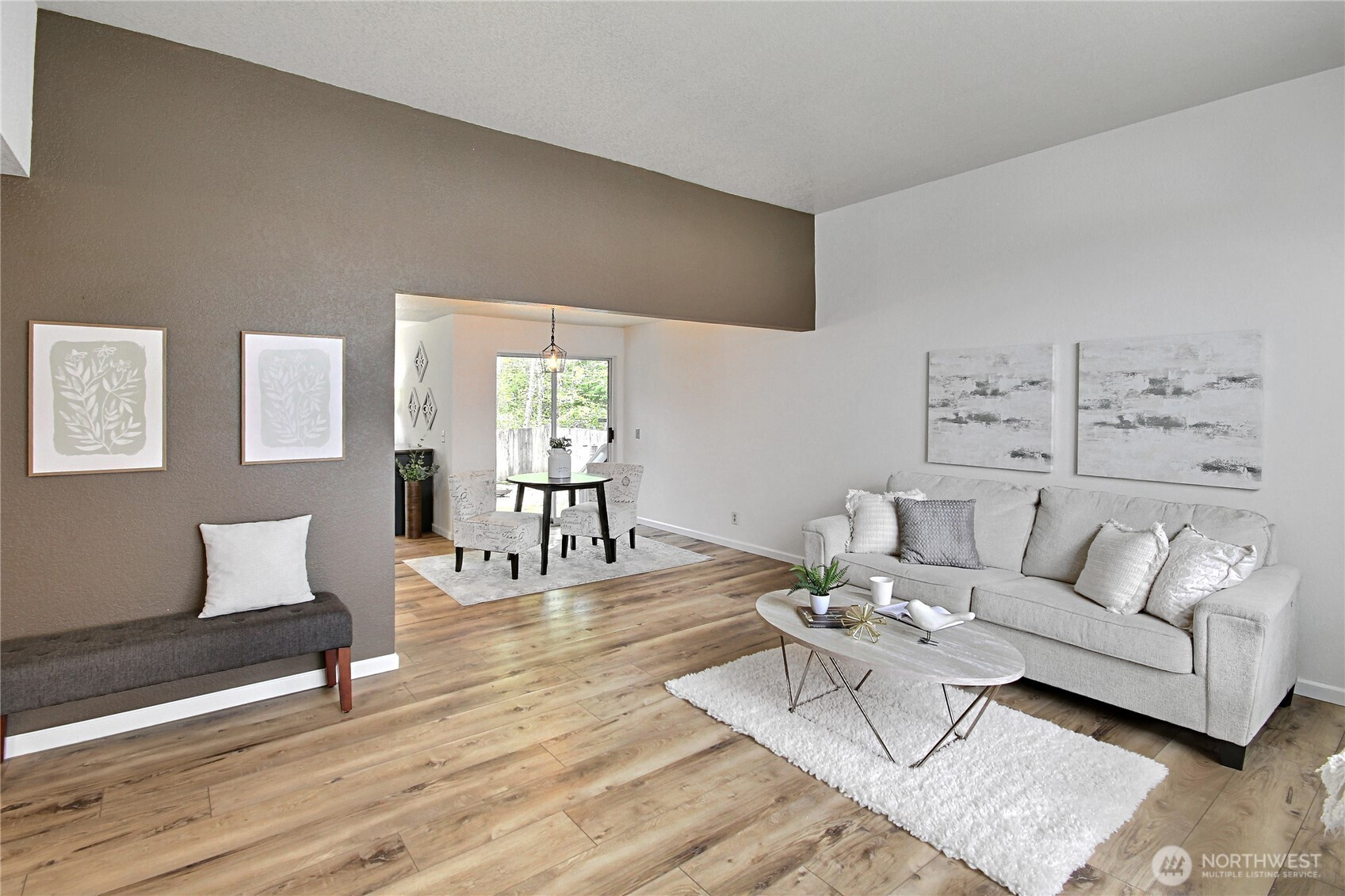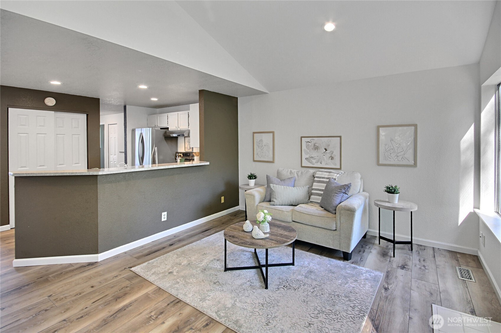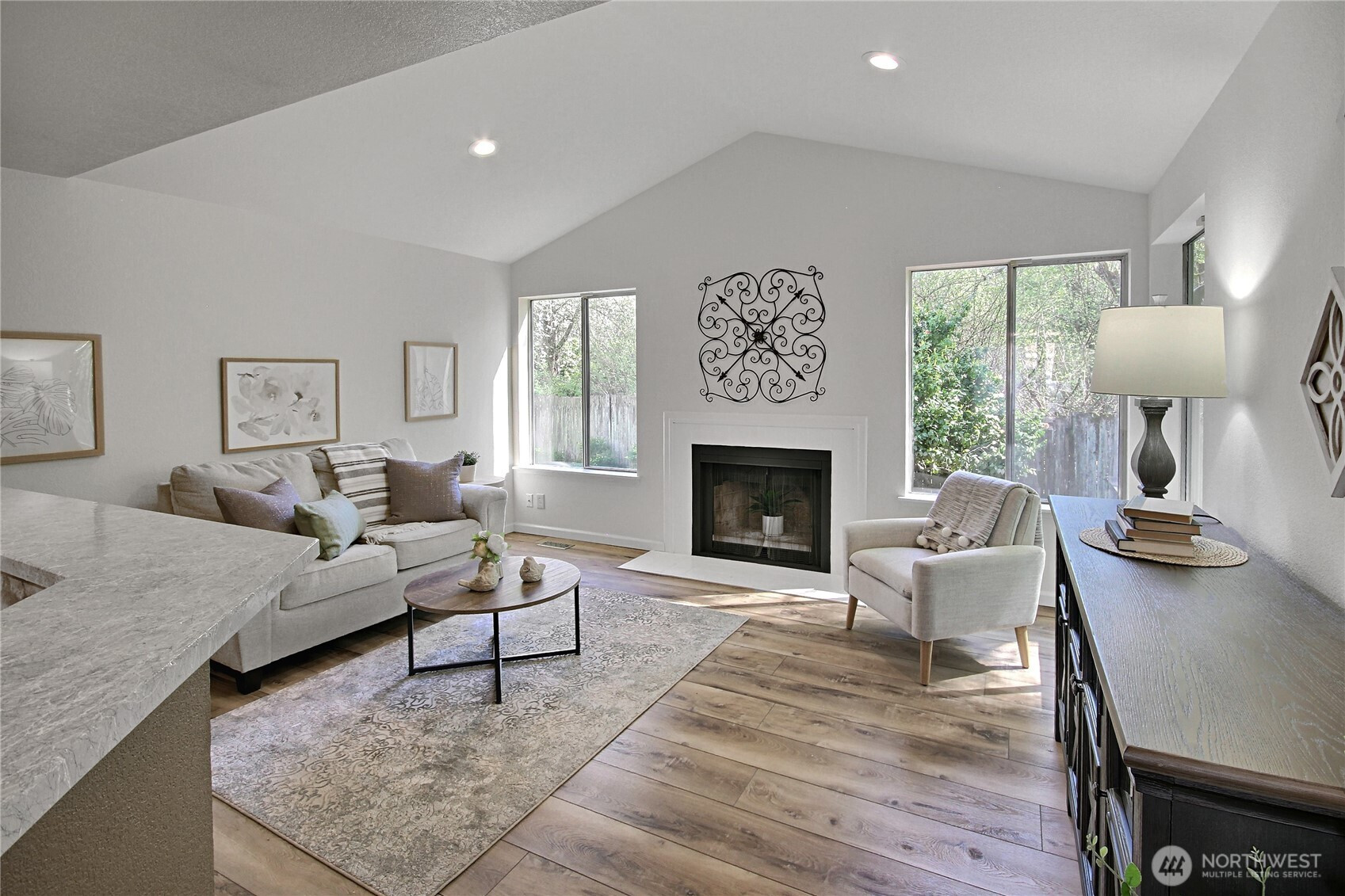 Affordable and adorable best describe this home! Set on a lot that borders on the South and West property lines to publicly owned land (City of Covington) you will enjoy privacy and wildlife all year long! Open & light filled with vaulted ceilings over all living areas making the space feels even larger than the square footage indicates. Newly refurbished with new appliances, new hot water tank LVP flooring throughout, new 6 panel doors, refreshed bathrooms and a 3 year old roof & exterior paint... its move in ready! 2 car garage. All appliances stay with the house. Great commute local North & West of Covington traffic yet minutes from Costco, restaurants and shopping and walking distance to both middle and high schools!