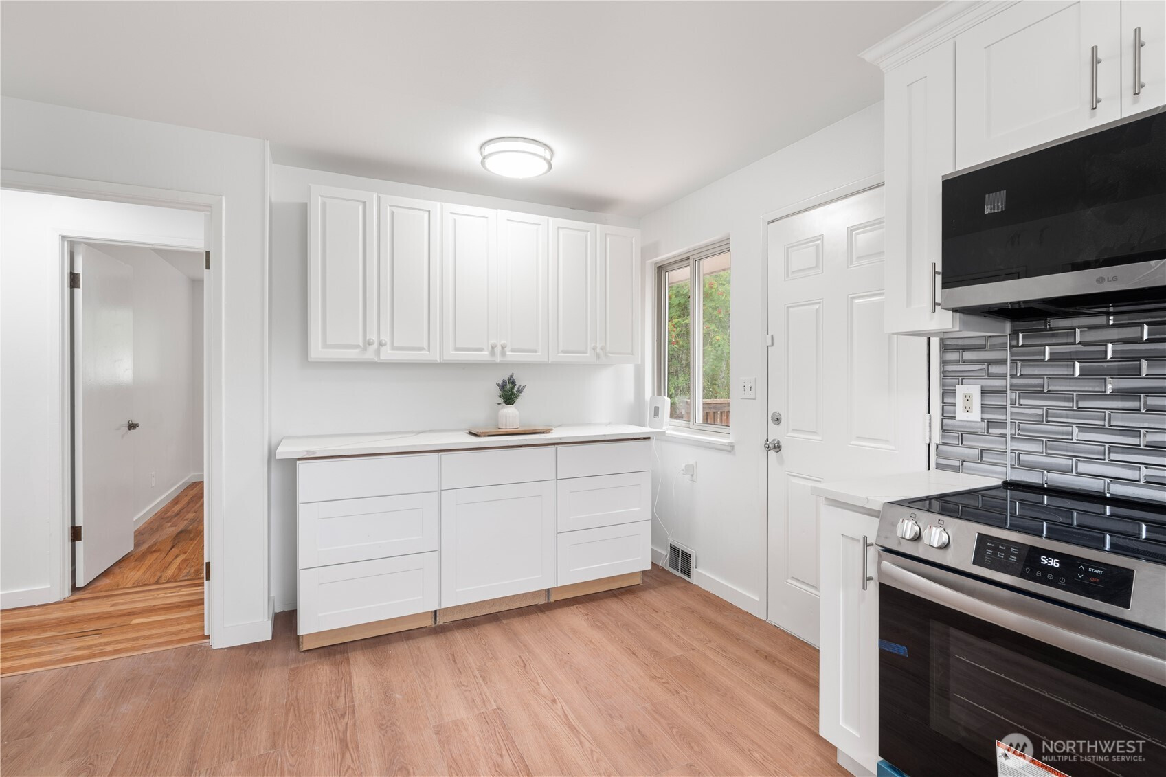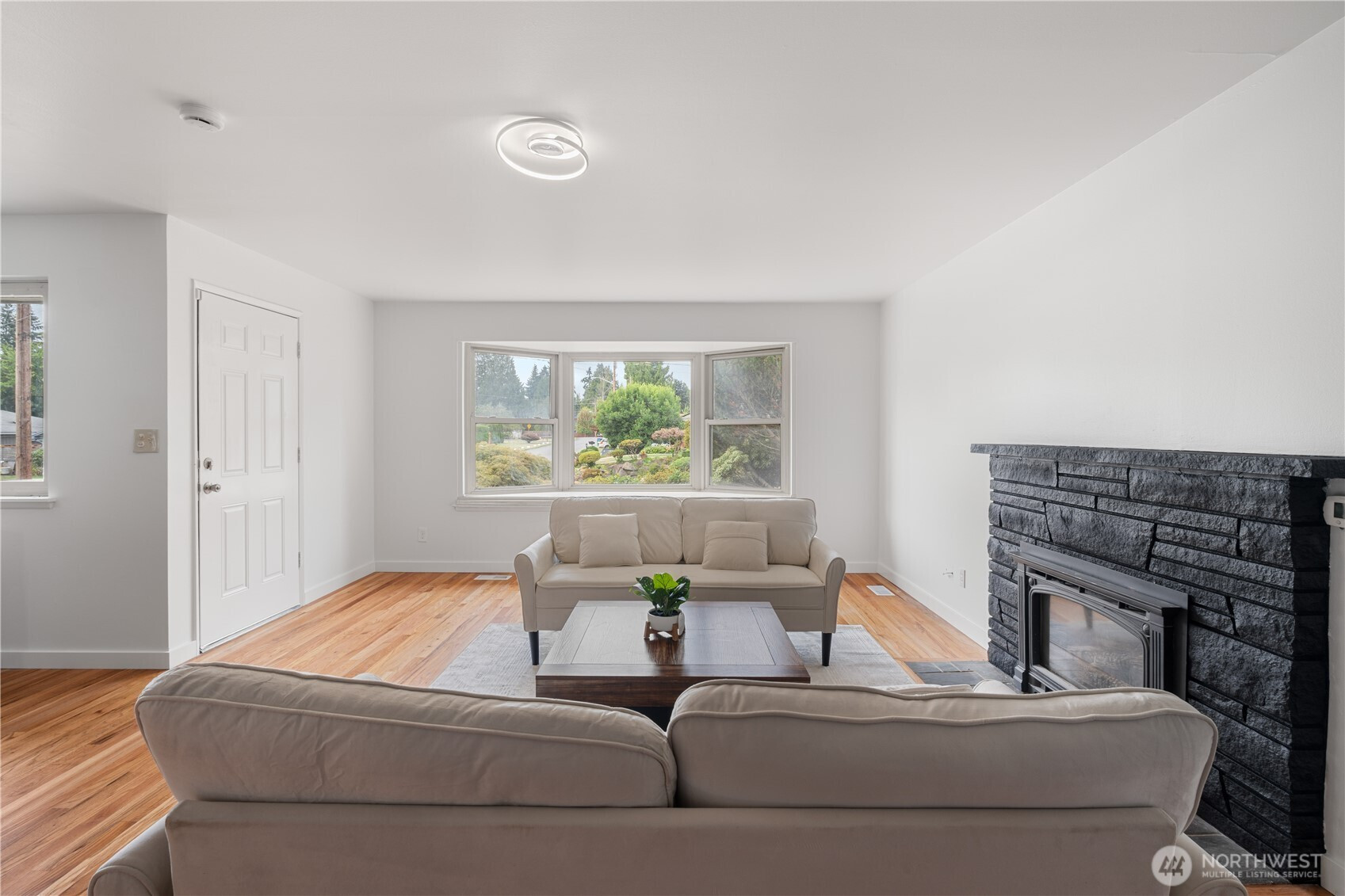 Located in a lovely neighborhood, this home is remodeled and ready to move in! Beautiful hardwood floors grace the main floor of your new home. You'll love the large living room with the bright bay window, open to a dining area filled with natural light. The kitchen features quartz countertops and stainless steel appliances, along with plenty of storage! Three bedrooms upstairs and an area downstairs that can be used as a rec room, or nice big fourth bedroom! Lovely, fenced in back yard with mature landscaping. Just a short distance to PCC, Trader Joe's and Starbucks. Easy 509 access. This property is a gem in a neighborhood of gems!