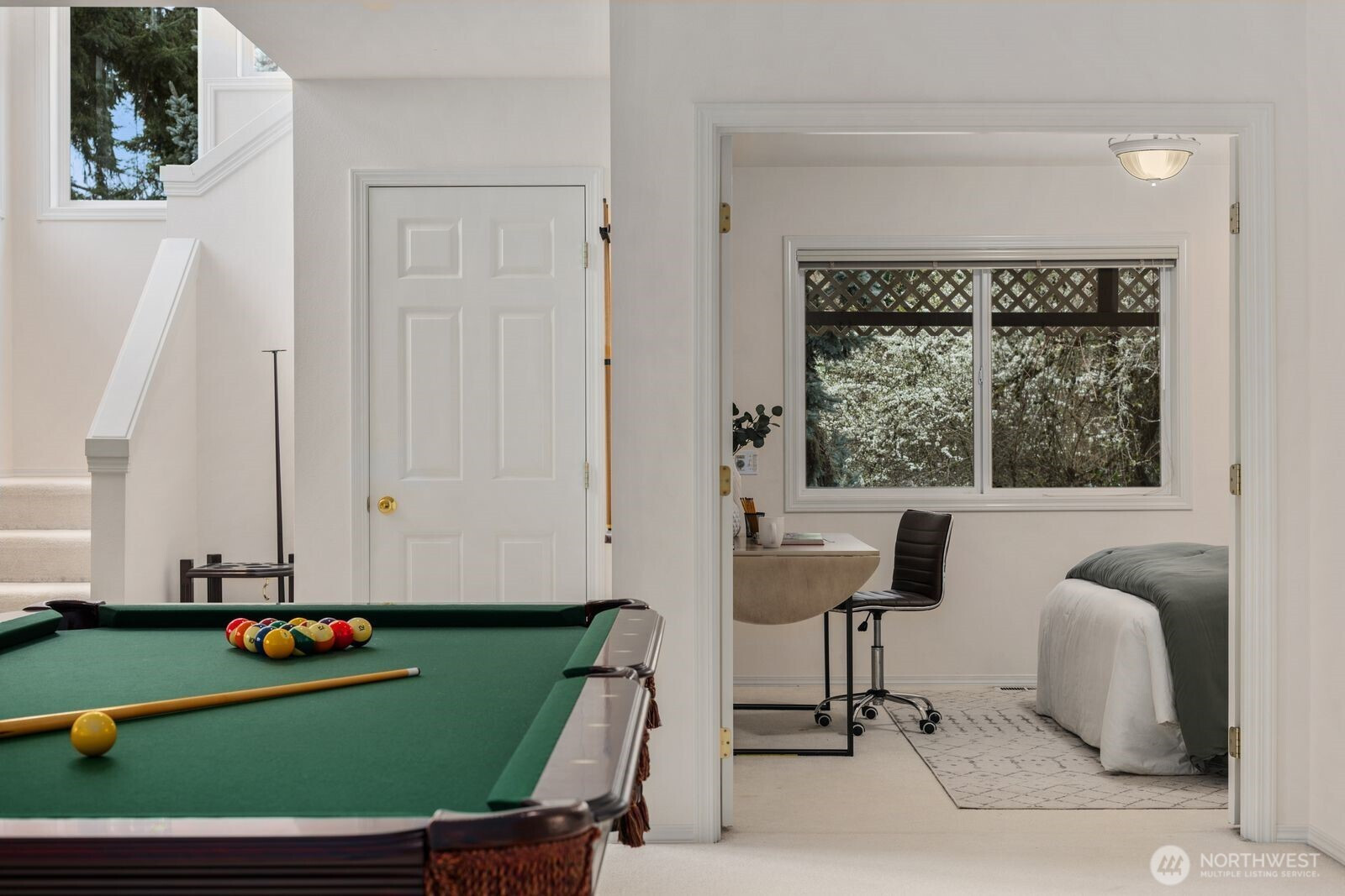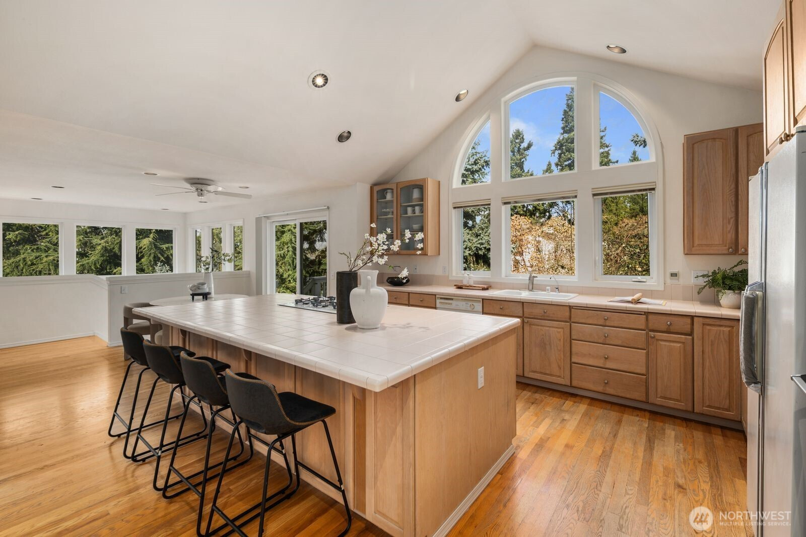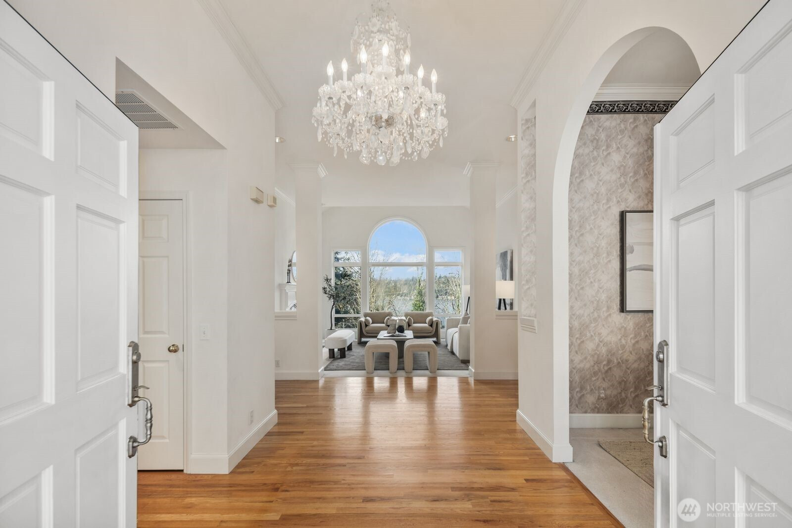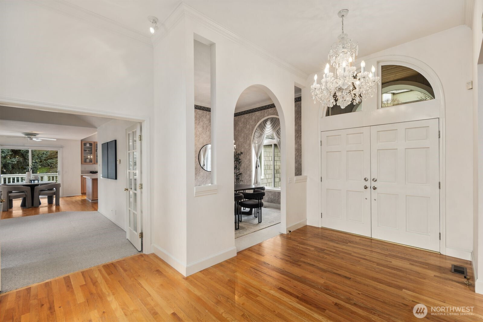 Located in the Lakeview Estates community of Sammamish with private beach rights just steps away. Soaring ceilings welcome you upon entry while large windows bring in abundant natural light and views of Lake Sammamish. The main level features a primary en suite with a five piece bath and private balcony, along with formal living and dining rooms. The kitchen opens to the breakfast nook and family room creating comfortable everyday living. A spacious deck offers a great place to enjoy the outdoors and the view. The lower level includes a large bonus or game room, an additional bedroom, full bath, an office or flex room. Prime location near top rated schools, parks, and everyday amenities.