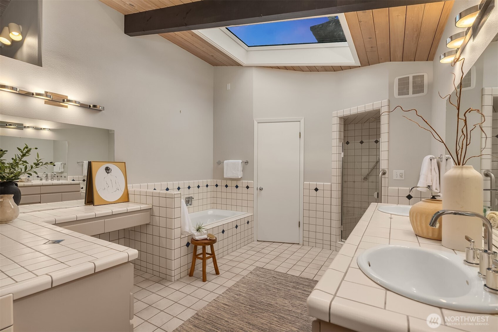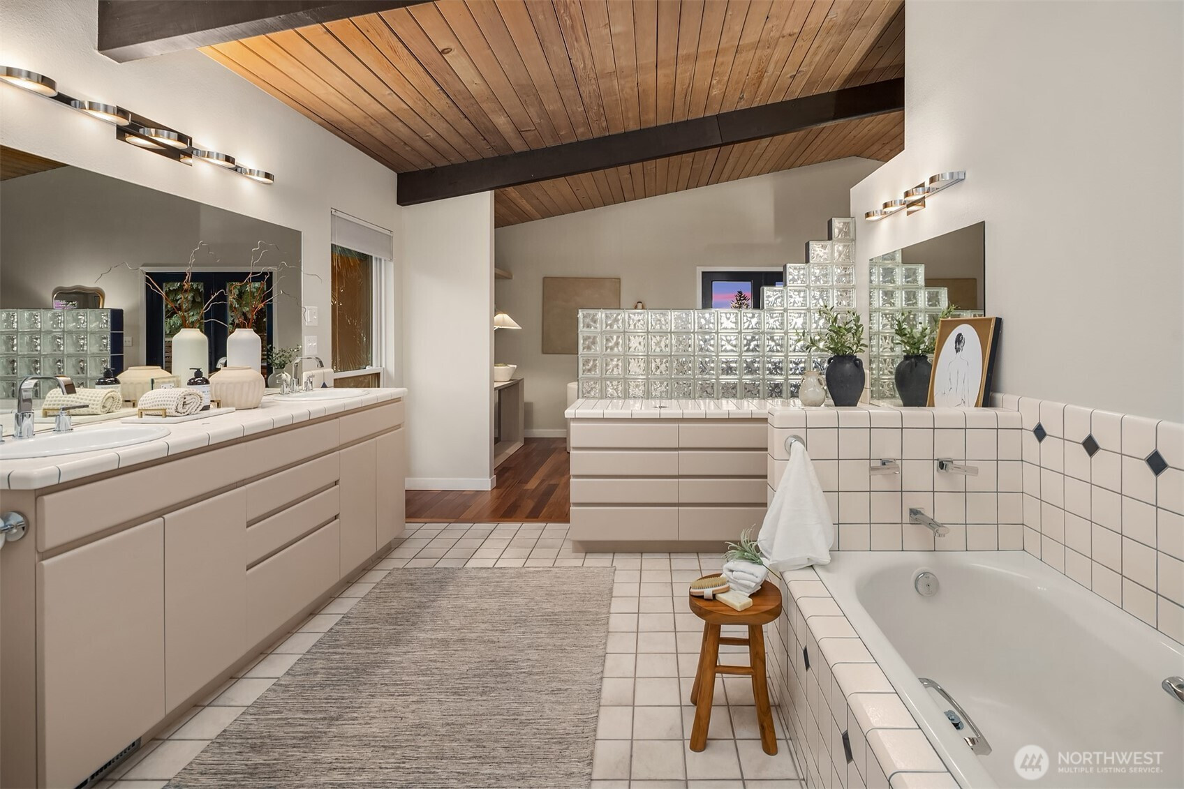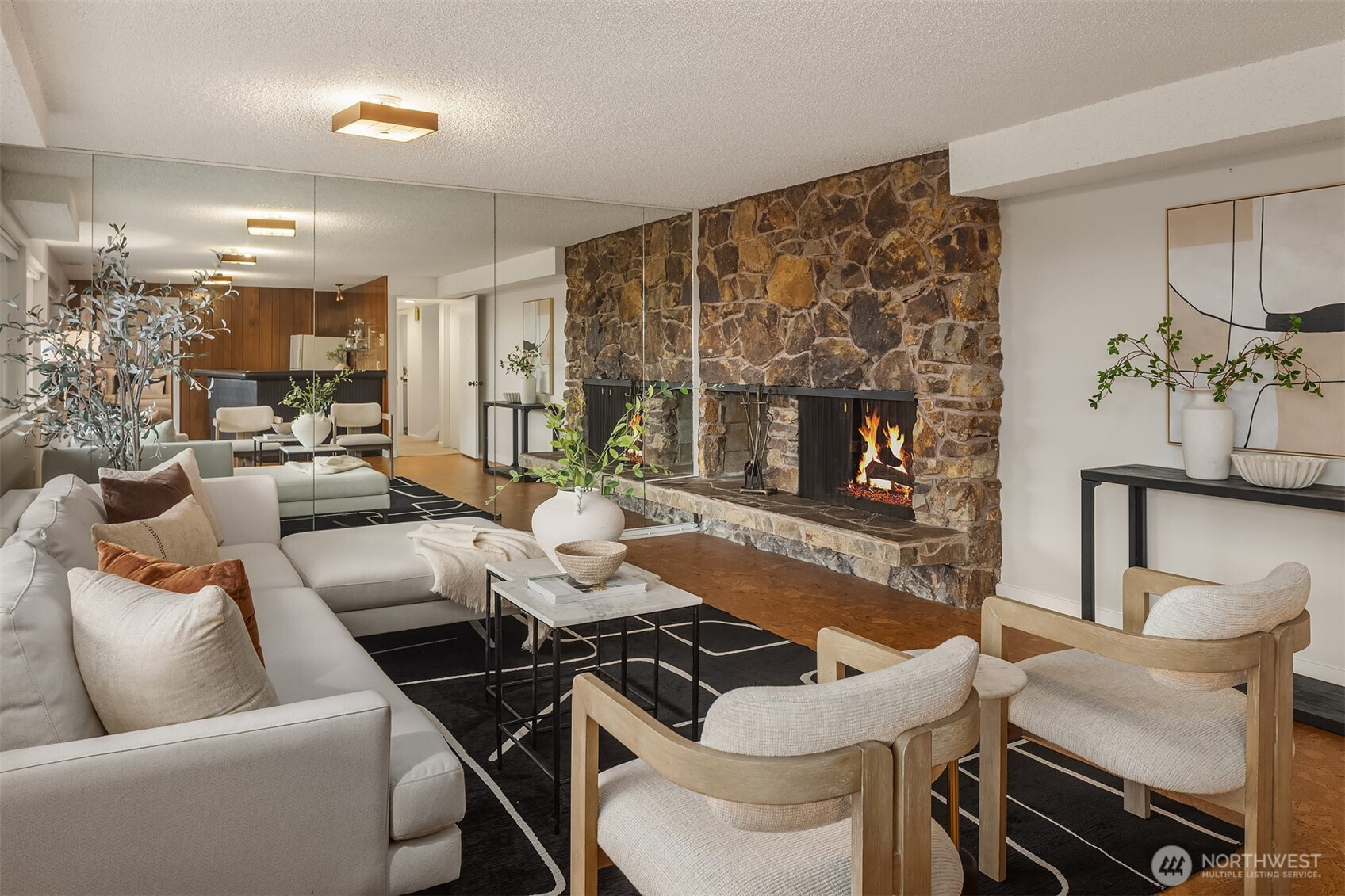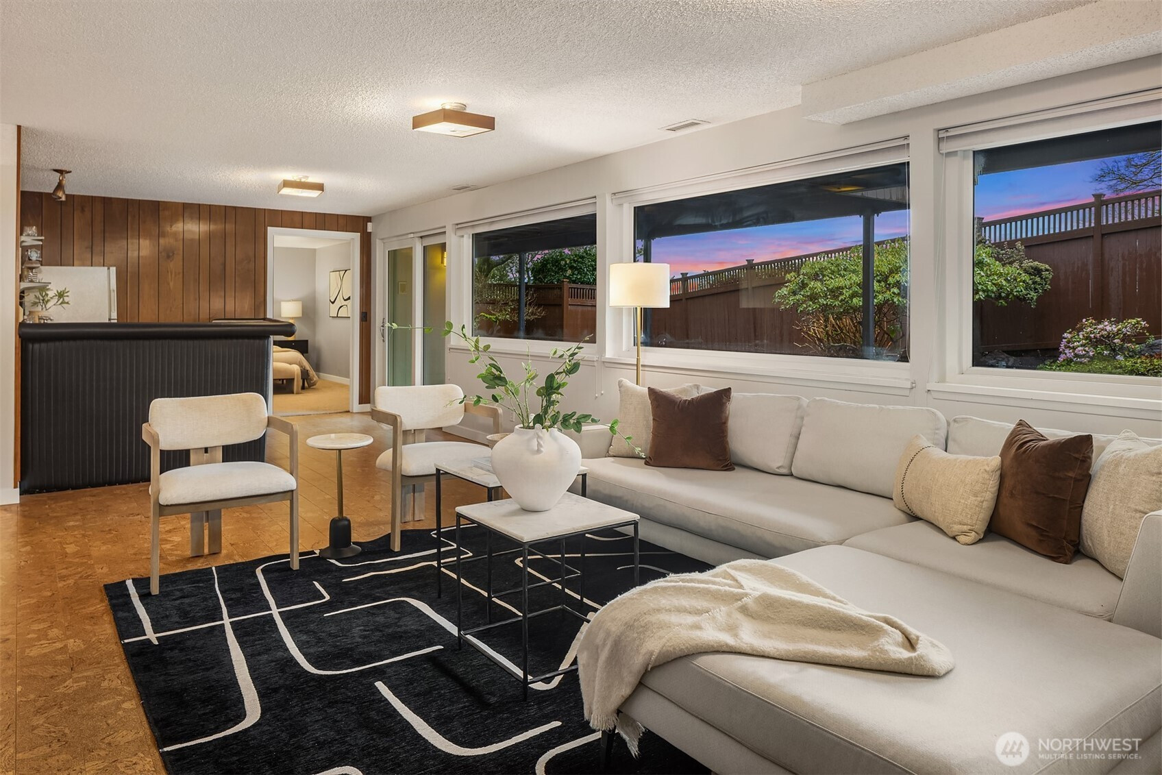 A Home, A Lifestyle… Located on Three Tree Point Heights, and overlooking Puget Sound and Olympic views, this architectural Northwest home offers convenience, comfort and versatility. Step into a spacious and open interior where one feels good: vaulted ceilings, walls of picture windows and natural elements. Cozy up by the stone fireplace with a good book, cook in the fully renovated kitchen while enjoying a lively conversation with friends and step onto the wrap around deck to breathe in the sea air. The easy floor plan offers main level living (without stairs if desired) and enjoys 2 bedrooms including a sizable primary ensuite with its spa bathroom and private access to a secluded deck & jacuzzi. The garden level boasts a wide array of uses with its sizable rec room, 3 additional bedrooms and own private patio and entrance: ideal as guest quarters, ADU or work retreat. Fully fenced, the mature grounds represent the ideal setting for fun Summer parties & barbecues around the swimming pool which adds an exotic feel to this wonderful property. Two sets of carports for 4+ cars, ample extra parking & storage. New HVAC system and membrane roof. Pick your own fresh raspberries in the warm season. Grow tomatoes and your own herbs on the sunny courtyard. A stone's throw to public beaches, minutes to Olde Burien's quaint shops and restaurants and a short drive to SeaTac international airport. Welcome to this peaceful and delightful place!