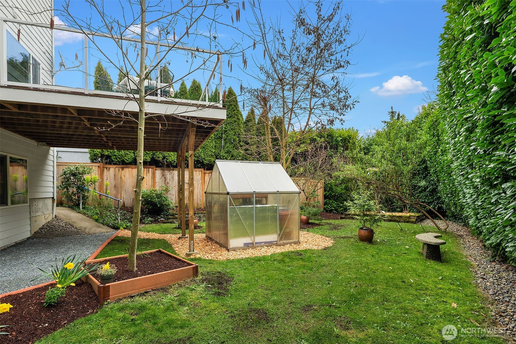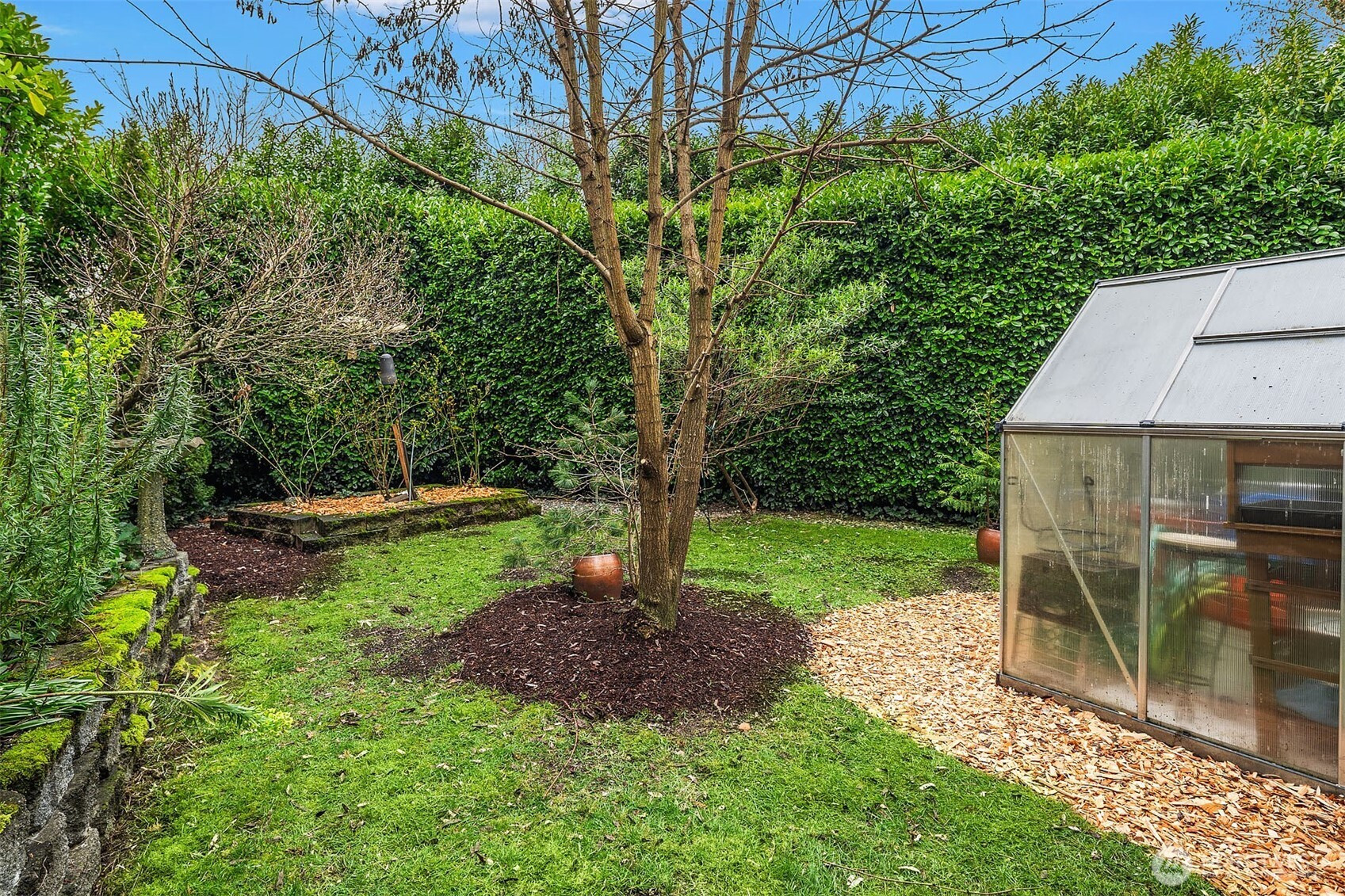 Step through the front door into the main level, with vaulted ceilings & abundant windows that fill the living & dining areas with natural light, creating an airy, open atmosphere. North–south exposure & peaceful territorial views enhance the seamless flow of the space. A wide staircase leads to the upper open hallway overlooking the main level, connecting the home’s bright & open layout. Upstairs, the primary suite offers a serene retreat with alcove windows framing backyard greenery & glimpses of Puget Sound from a cozy sitting nook, along with a private ensuite bath & walk-in closet. Two additional bedrooms share a thoughtfully designed Jack & Jill bath. The lower level features a versatile rec room & flexible office/bedroom, ideal for hobbies or working from home. Two sets of sliding doors in the rec room open to a side patio overlooking the ravine & a paved path leading to the flagstone patio. Entertain or relax on the 12x15 Trex deck off the family room & kitchen. Lush foliage frames the backyard, creating a private, park-like setting. Two outbuildings include a tool shed & greenhouse. A driveway shared with one neighbor enhances seclusion. Newer appliances including range, washer/dryer & microwave; new roof installed in 2025. Enjoy access to The Cove, Normandy Park’s private waterfront community park on Puget Sound. Convenient to shopping, hospital, airport, Southcenter & downtown Seattle. This is Normandy Park living at its best.