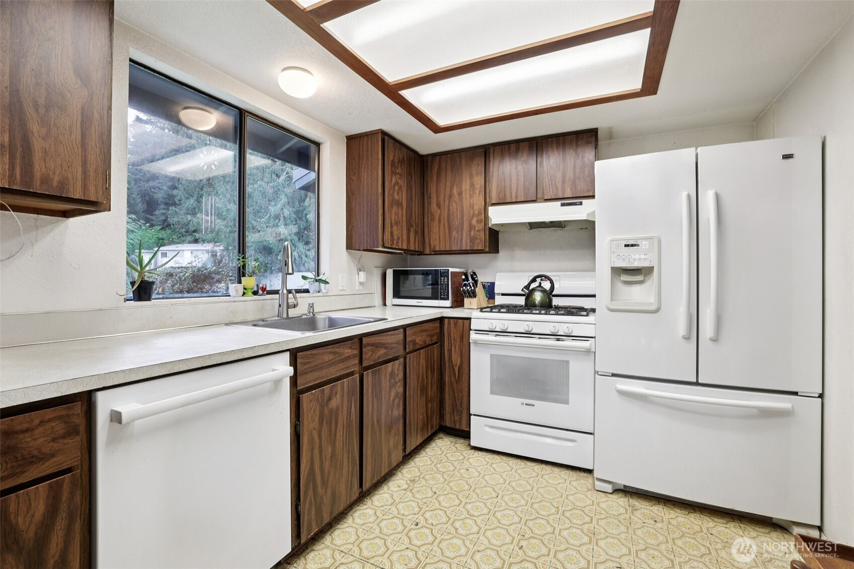 Located in the wonderful community of Woodinville, this classic split level home sits on an exceptionally rare, large lot. This three-bedroom two and a half bath home has an expansive, open concept living, dining area adorned with a custom cedar ceiling, two fireplaces and ample room in the downstairs living space for everyone. A new large deck that overlooks the extensive backyard as well as already placed framework for deck to be built from the primary bedroom. The oversized garage area has generous space for woodworking. This property comes with its own generator and new 50 year roof with warranty!