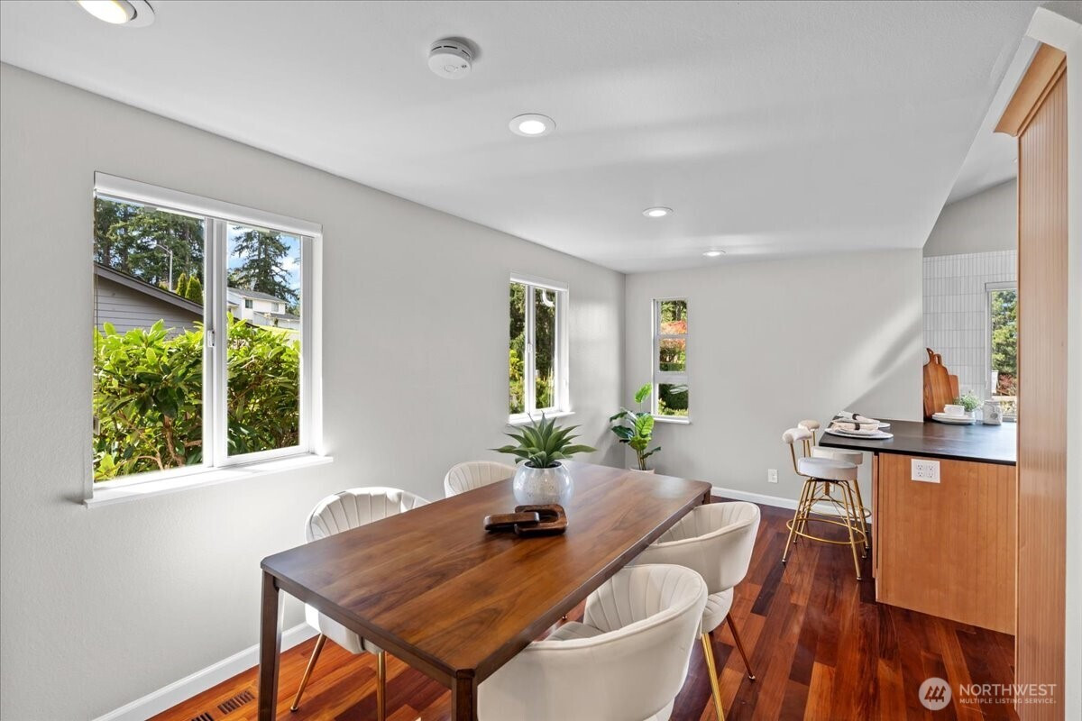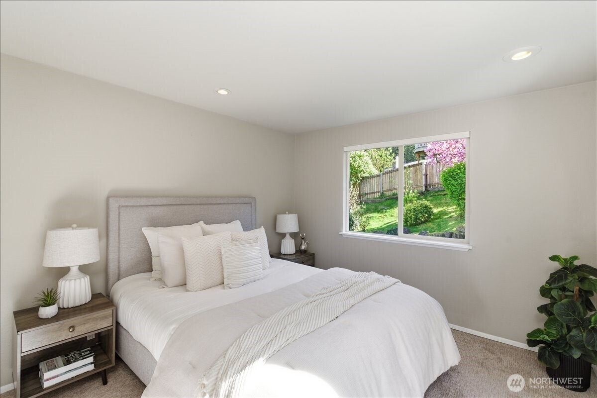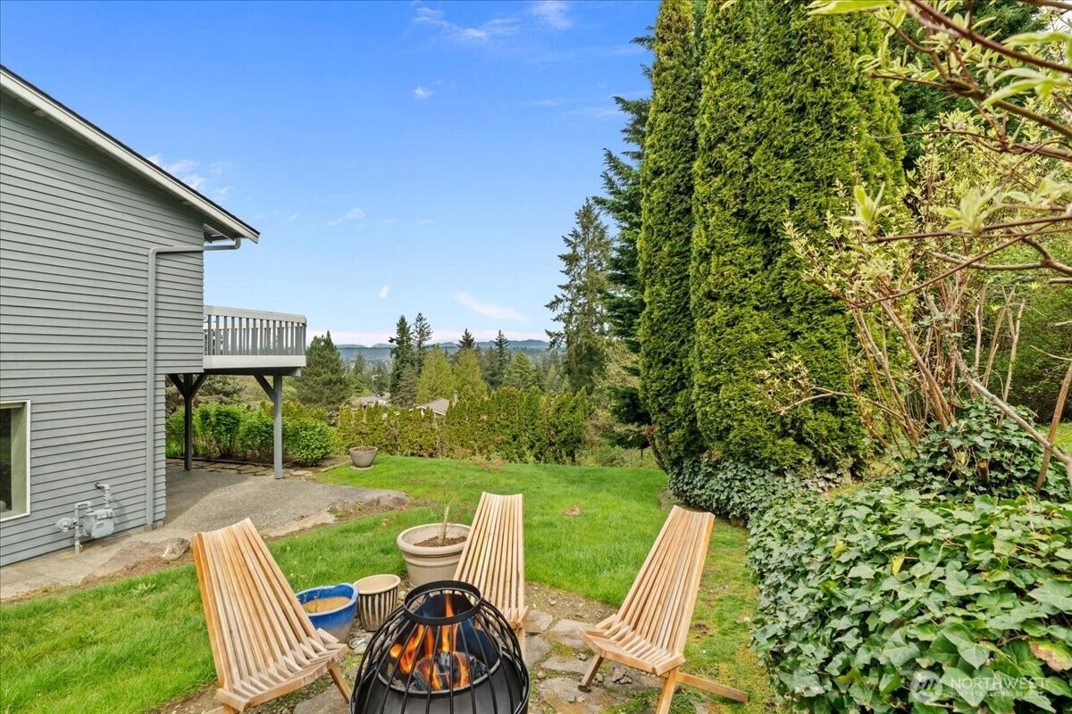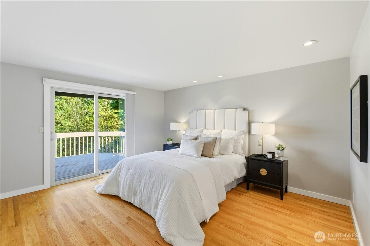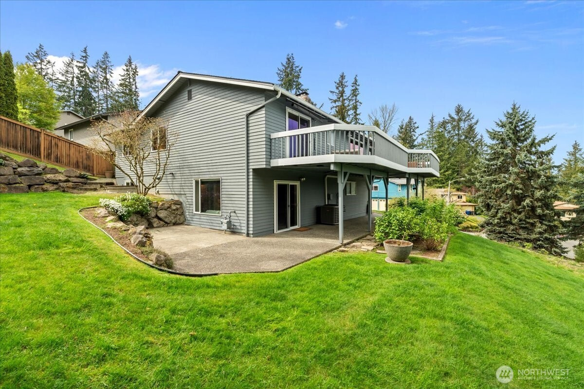 Welcome to this beautifully updated home in a sought-after neighborhood, offering sweeping mountain and territorial views with a partial view of Lake Sammamish. Designed for flexibility and comfort, the main living and dining areas showcase vaulted ceilings and expansive windows, creating a bright and open atmosphere filled with natural light. A spacious east-facing deck extends the living space outdoors, ideal for enjoying the stunning surrounding scenery and watching soaring eagles while relaxing or entertaining. Recent updates enhance both function and style, including a brand new roof (2025), new sewer/water/gas lines, A/C, new interior paint, exterior paint (2020), new lower-level carpet, updated lighting, and removal of popcorn ceilings. Wake up to a beautiful view from the primary suite, complete with a fully remodeled bathroom and two closets. All three remodeled bathrooms excude timeless elegance, custom touches and heated floors. The lower level provides a private, flexible space with a bonus room, large guest bedroom, ¾ bath, 2nd laundry room and level entry access, providing versatile living for short or long term guests. Located adjacent to a city open space for privacy and quiet. Nearby you can explore the 28-acre Ardmore Park with playground and trails or Idylwood Park on Lake Sammamish. Nearby to major Bellevue & Redmond employers, including less than a mile to Microsoft and easy transit options including bus and light rail. Seller pre-inspection available.