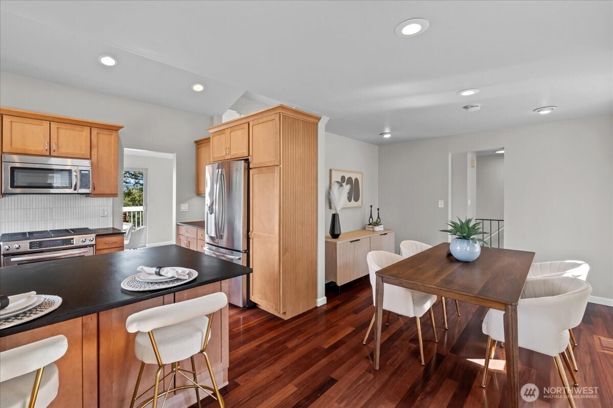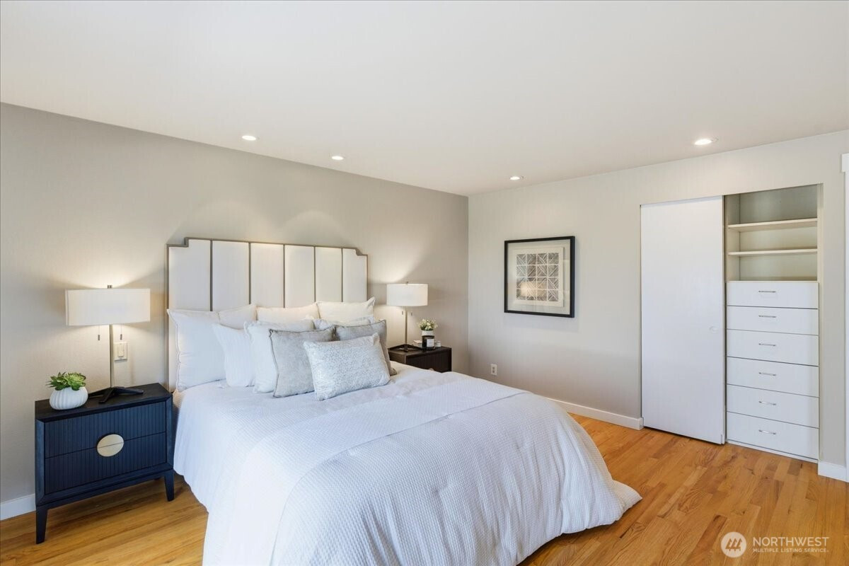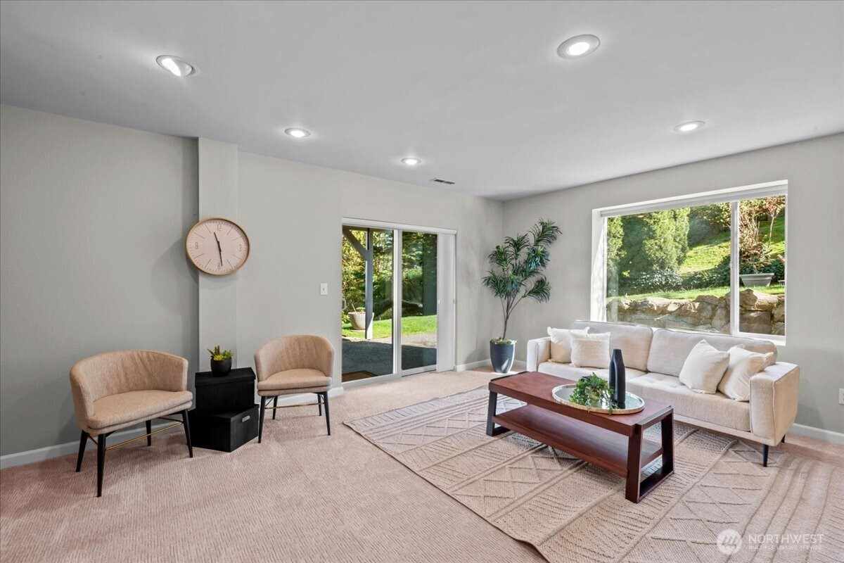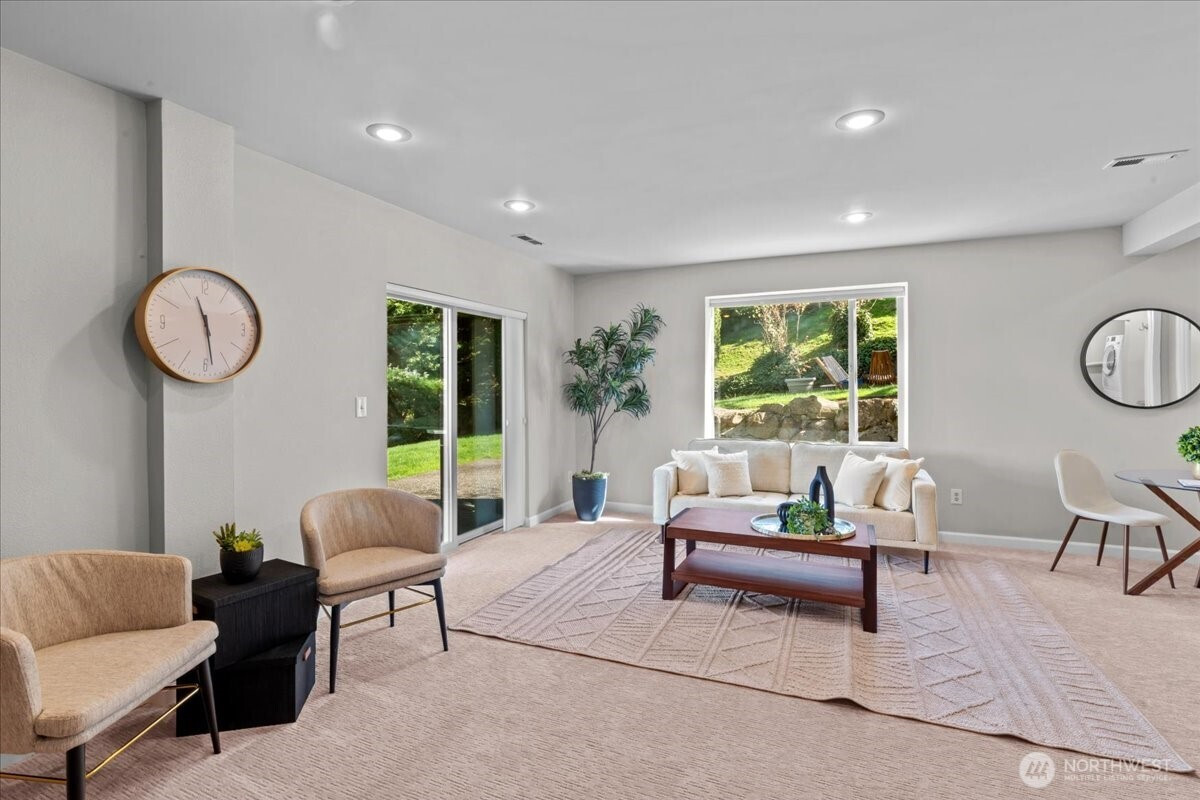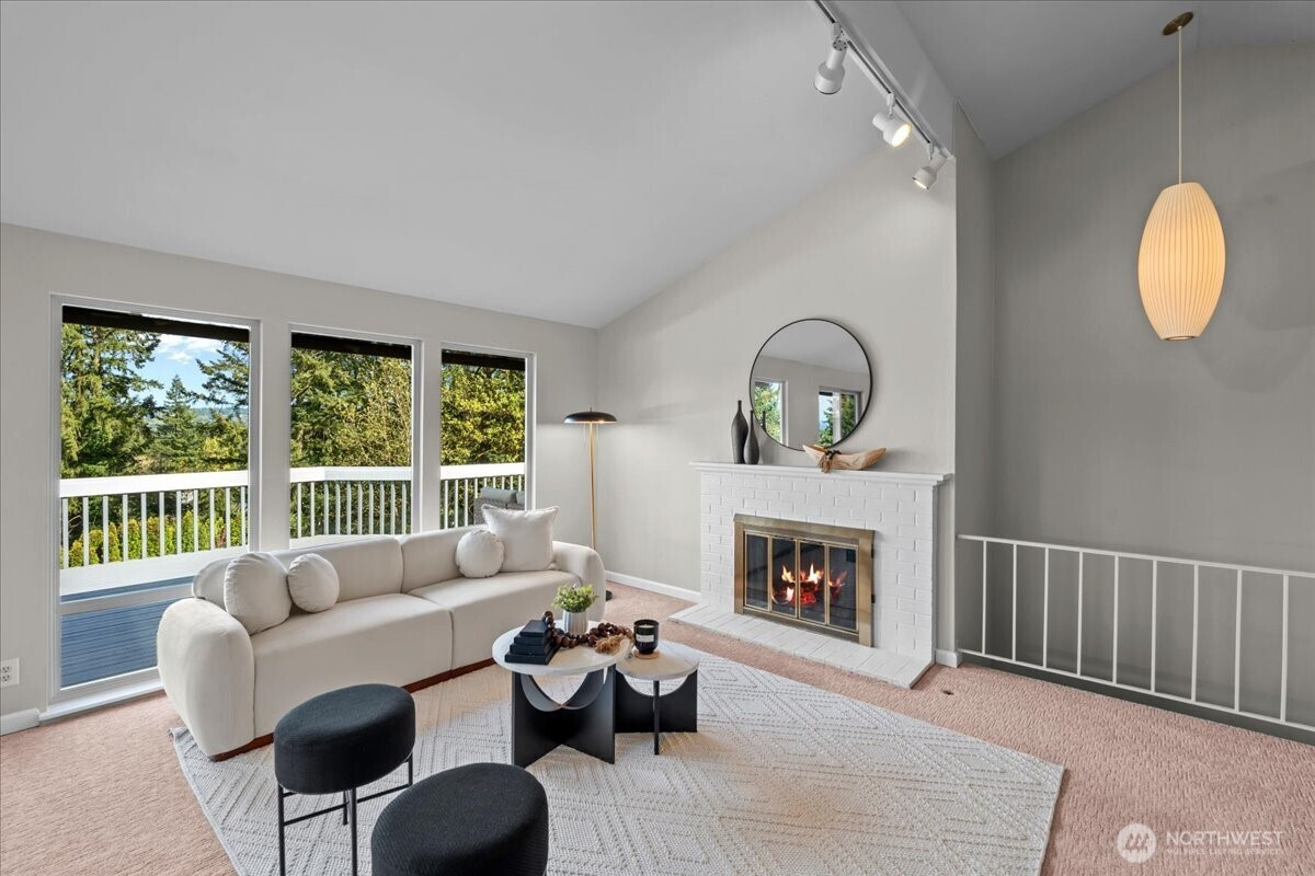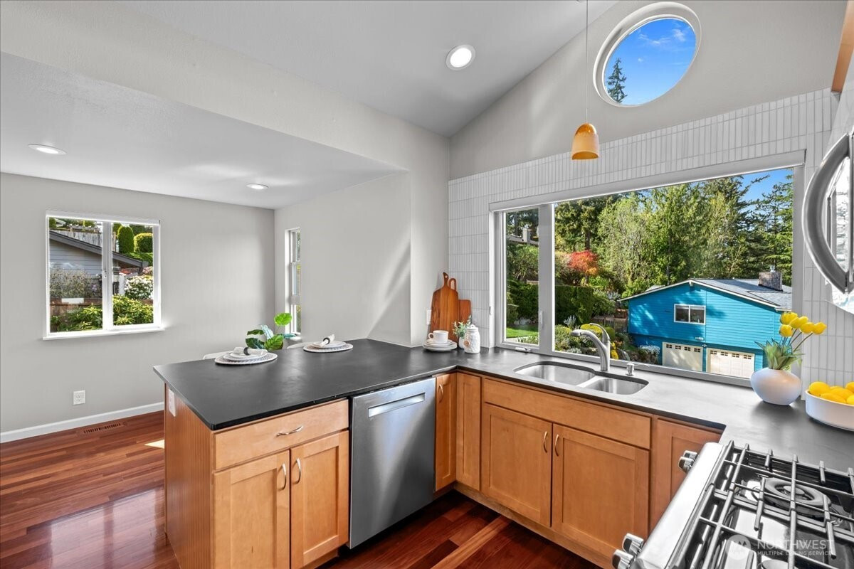 Welcome to this beautifully updated home in a sought-after neighborhood, offering sweeping mountain and territorial views with a partial view of Lake Sammamish. Designed for flexibility and comfort, the main living and dining areas showcase vaulted ceilings and expansive windows, creating a bright and open atmosphere filled with natural light. A spacious east-facing deck extends the living space outdoors, ideal for enjoying the stunning surrounding scenery and watching soaring eagles while relaxing or entertaining. Recent updates enhance both function and style, including a brand new roof (2025), new sewer/water/gas lines, A/C, new interior paint, exterior paint (2020), new lower-level carpet, updated lighting, and removal of popcorn ceilings. Wake up to a beautiful view from the primary suite, complete with a fully remodeled bathroom and two closets. All three remodeled bathrooms excude timeless elegance, custom touches and heated floors. The lower level provides a private, flexible space with a bonus room, large guest bedroom, ¾ bath, 2nd laundry room and level entry access, providing versatile living for short or long term guests. Located adjacent to a city open space for privacy and quiet. Nearby you can explore the 28-acre Ardmore Park with playground and trails or Idylwood Park on Lake Sammamish. Nearby to major Bellevue & Redmond employers, including less than a mile to Microsoft and easy transit options including bus and light rail. Seller pre-inspection available.
