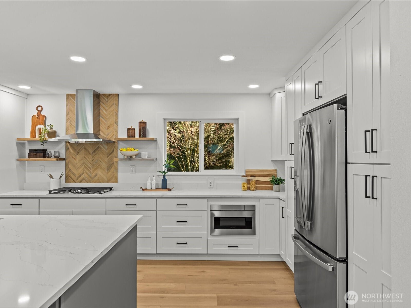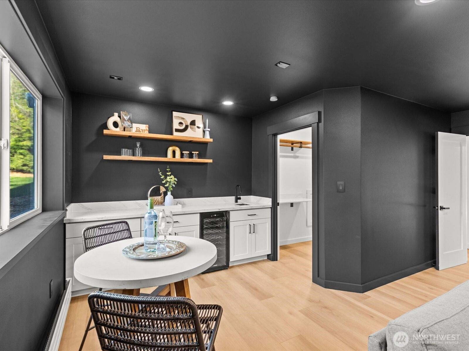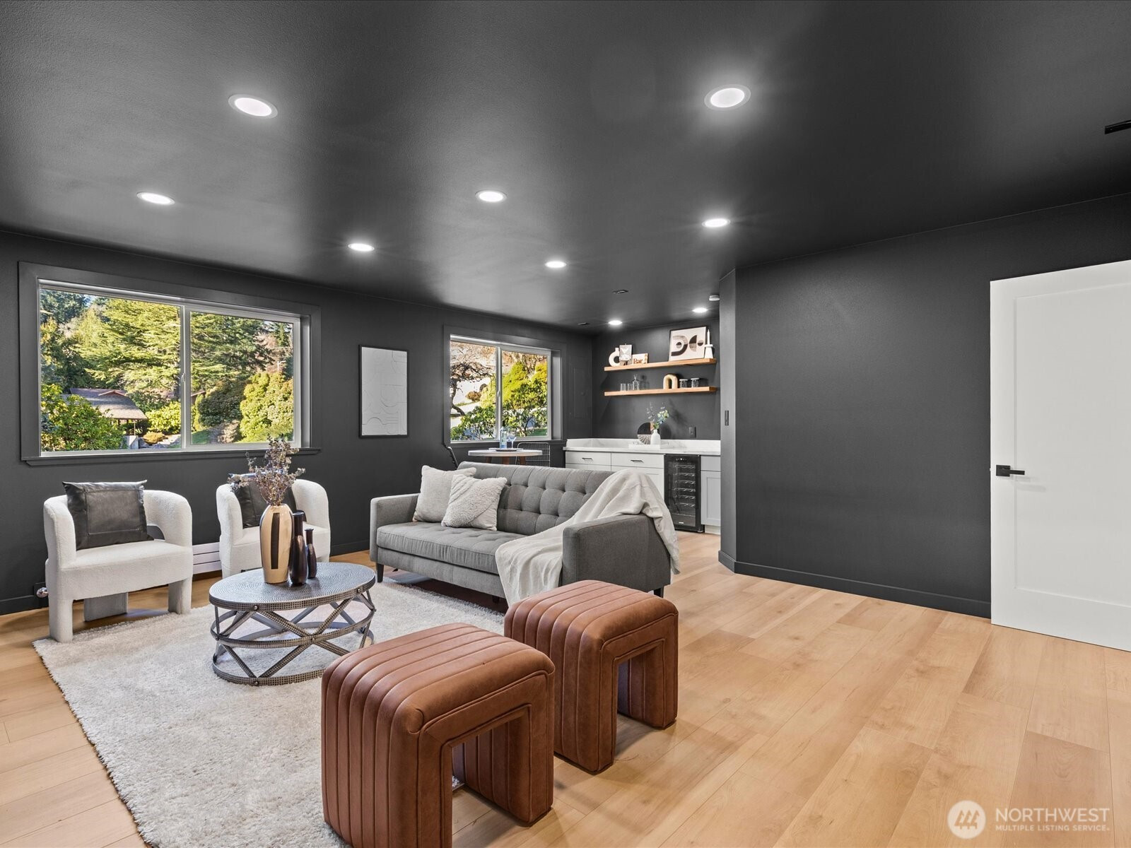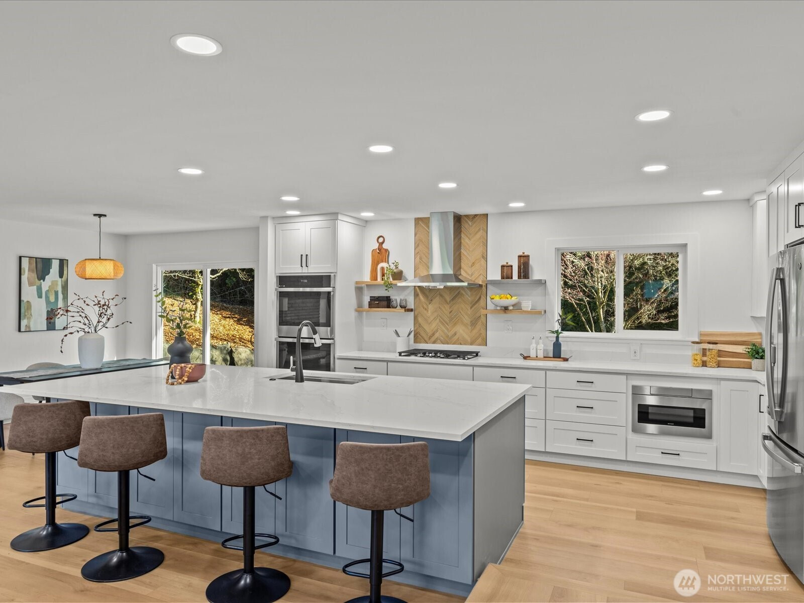 Discover your Normandy Park Oasis: a move-in ready, like-new masterpiece home with stunning Sylvan views, offering state-of-the-art features such as: SMART Glass entry and SMART mirror, Bluetooth shower speakers, LED lighting, heated towel racks and radiant heat. Designer chef's kitchen with entertainment sized island and double ovens. This light-filled home boasts a great room concept floor plan and a primary suite with a high end, walk-in closet and spa-like bath. Downstairs is an over-sized, ready to go media room with TV and soundbar included and a wet bar with sink and beverage refrigerator. An ideal flexible finished room off garage for an office, gym or hobby room. Enjoy a private, fenced backyard, Trex-like deck, patio, shed and ample parking, RV/Boat extra driveway, and low maintenance fresh landscaping. Coveted Lot A Beach Rights to the Cove for Puget Sound waterfront access, event available clubhouse, tennis courts, boat launch, trails, playground and field. This home perfectly blends modern luxury with natural beauty, offering unparalleled community amenities in a serene setting. Don't miss this rare opportunity to own a piece of paradise in Normandy Park.