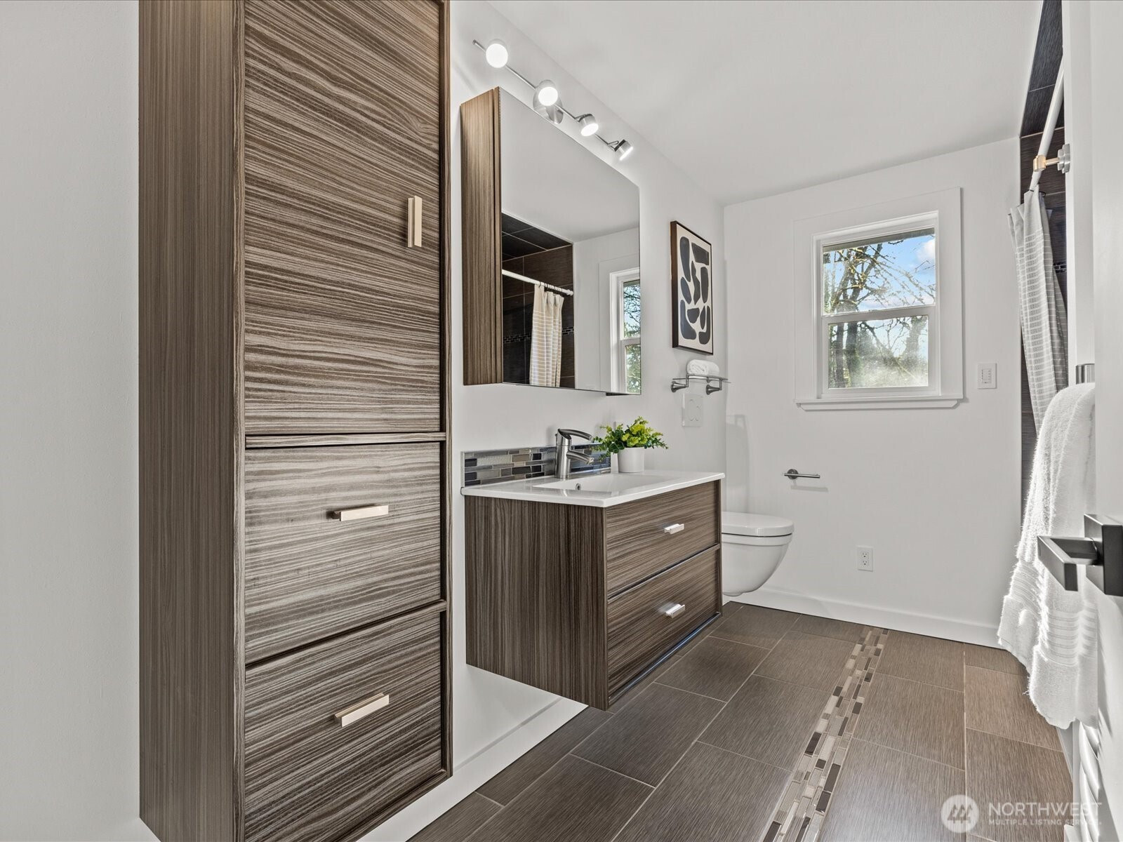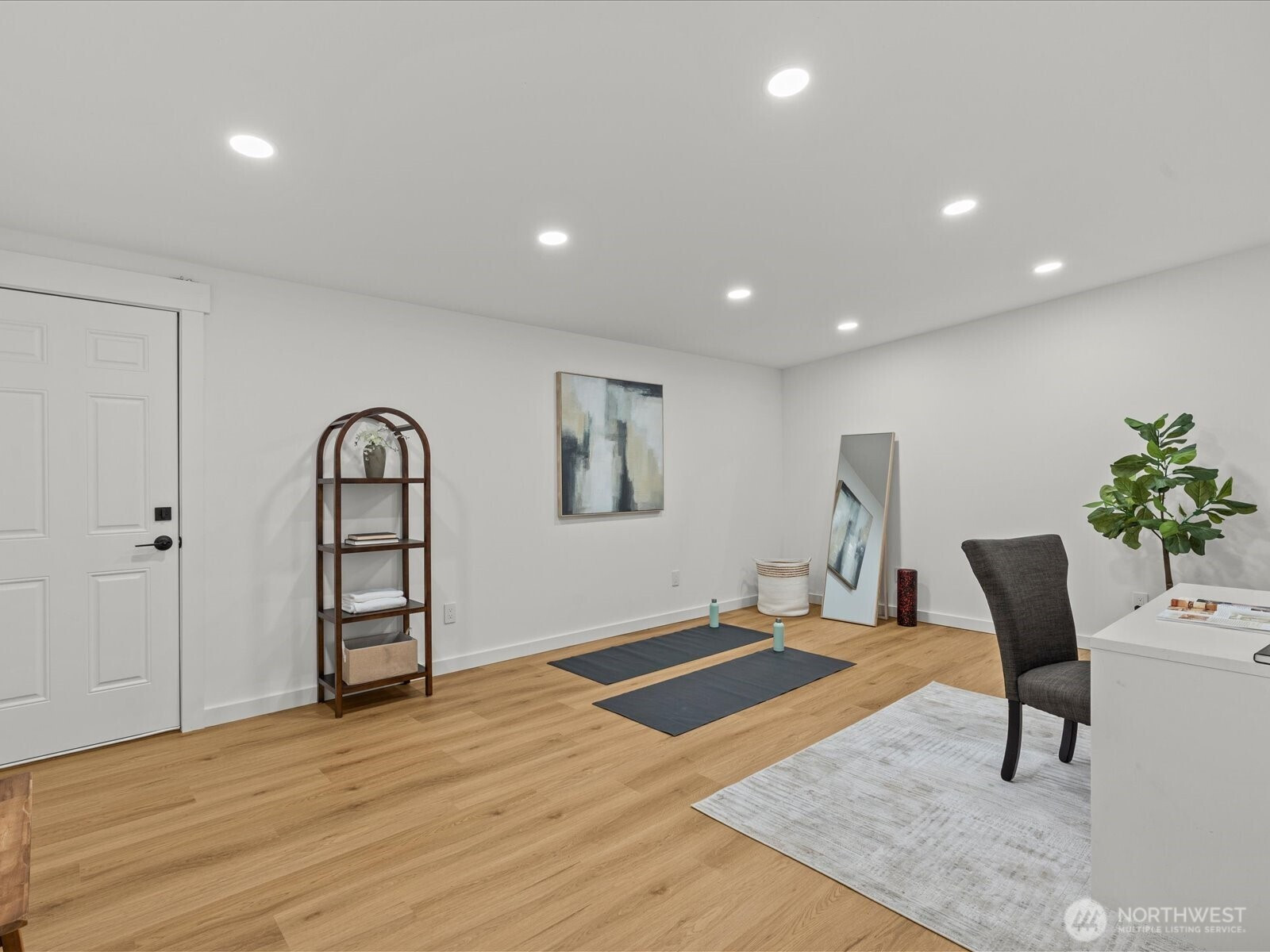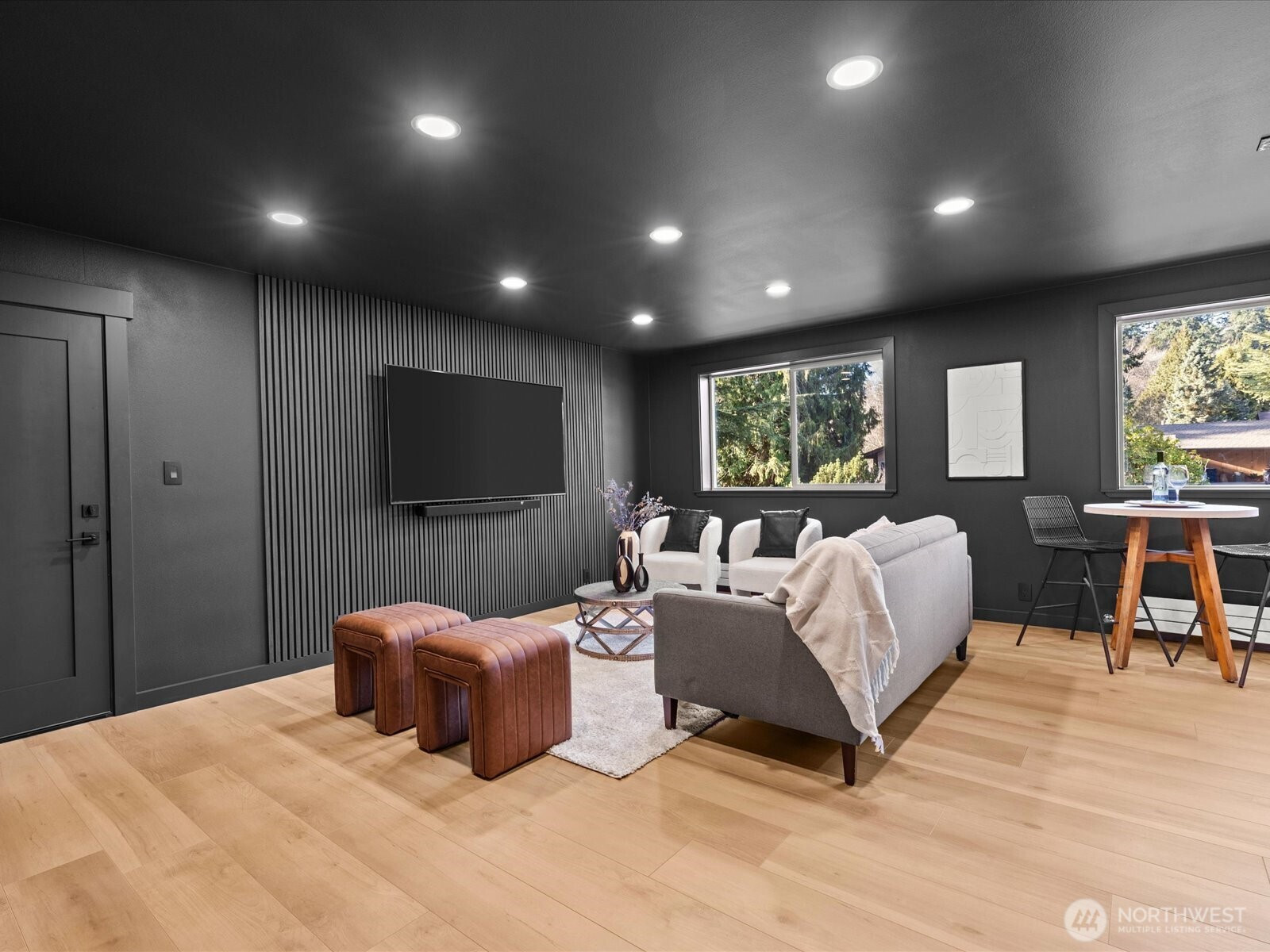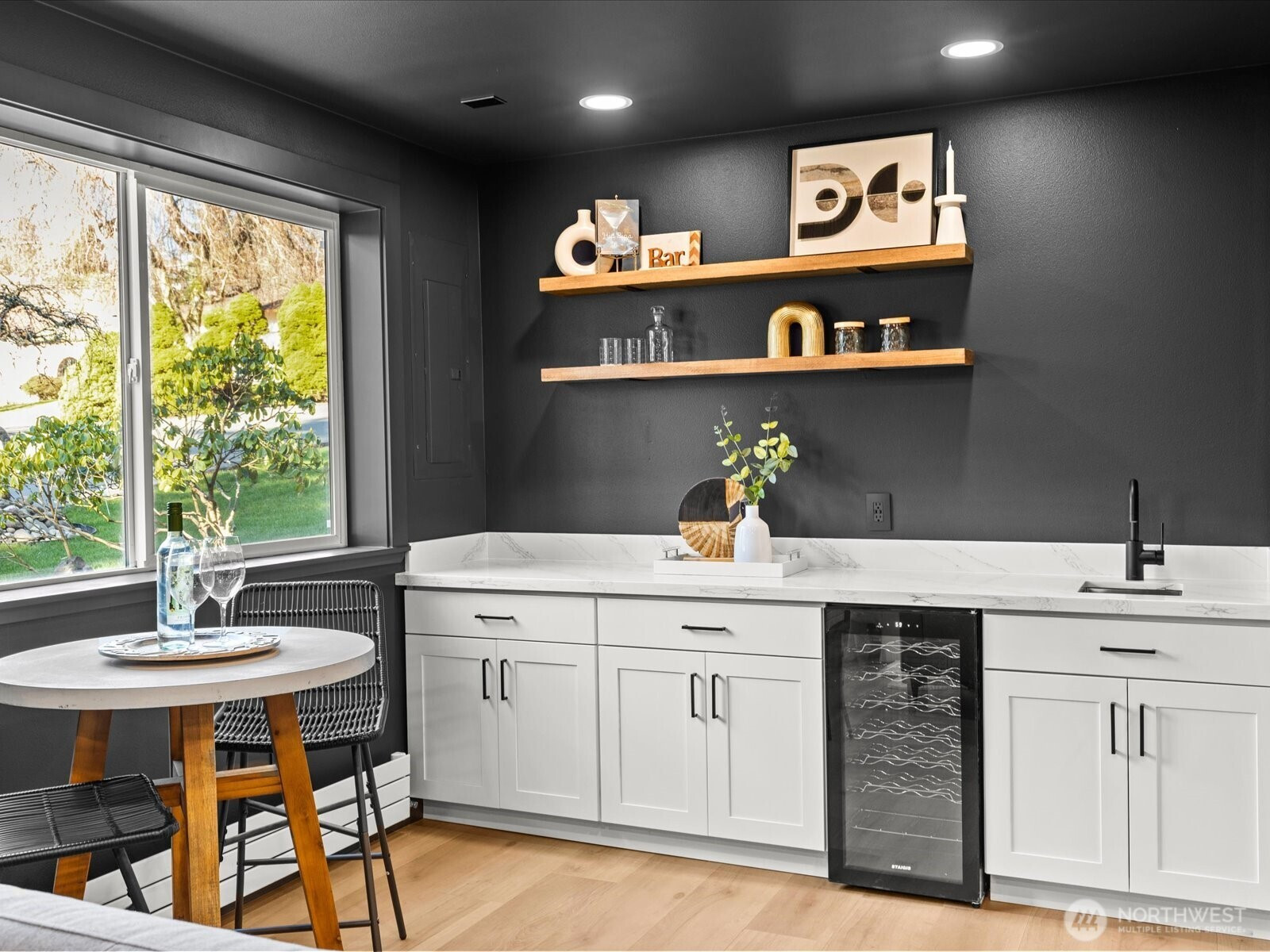 Discover your Normandy Park Oasis: a move-in ready, like-new masterpiece home with stunning Sylvan views, offering state-of-the-art features such as: SMART Glass entry and SMART mirror, Bluetooth shower speakers, LED lighting, heated towel racks and radiant heat. Designer chef's kitchen with entertainment sized island and double ovens. This light-filled home boasts a great room concept floor plan and a primary suite with a high end, walk-in closet and spa-like bath. Downstairs is an over-sized, ready to go media room with TV and soundbar included and a wet bar with sink and beverage refrigerator. An ideal flexible finished room off garage for an office, gym or hobby room. Enjoy a private, fenced backyard, Trex-like deck, patio, shed and ample parking, RV/Boat extra driveway, and low maintenance fresh landscaping. Coveted Lot A Beach Rights to the Cove for Puget Sound waterfront access, event available clubhouse, tennis courts, boat launch, trails, playground and field. This home perfectly blends modern luxury with natural beauty, offering unparalleled community amenities in a serene setting. Don't miss this rare opportunity to own a piece of paradise in Normandy Park.