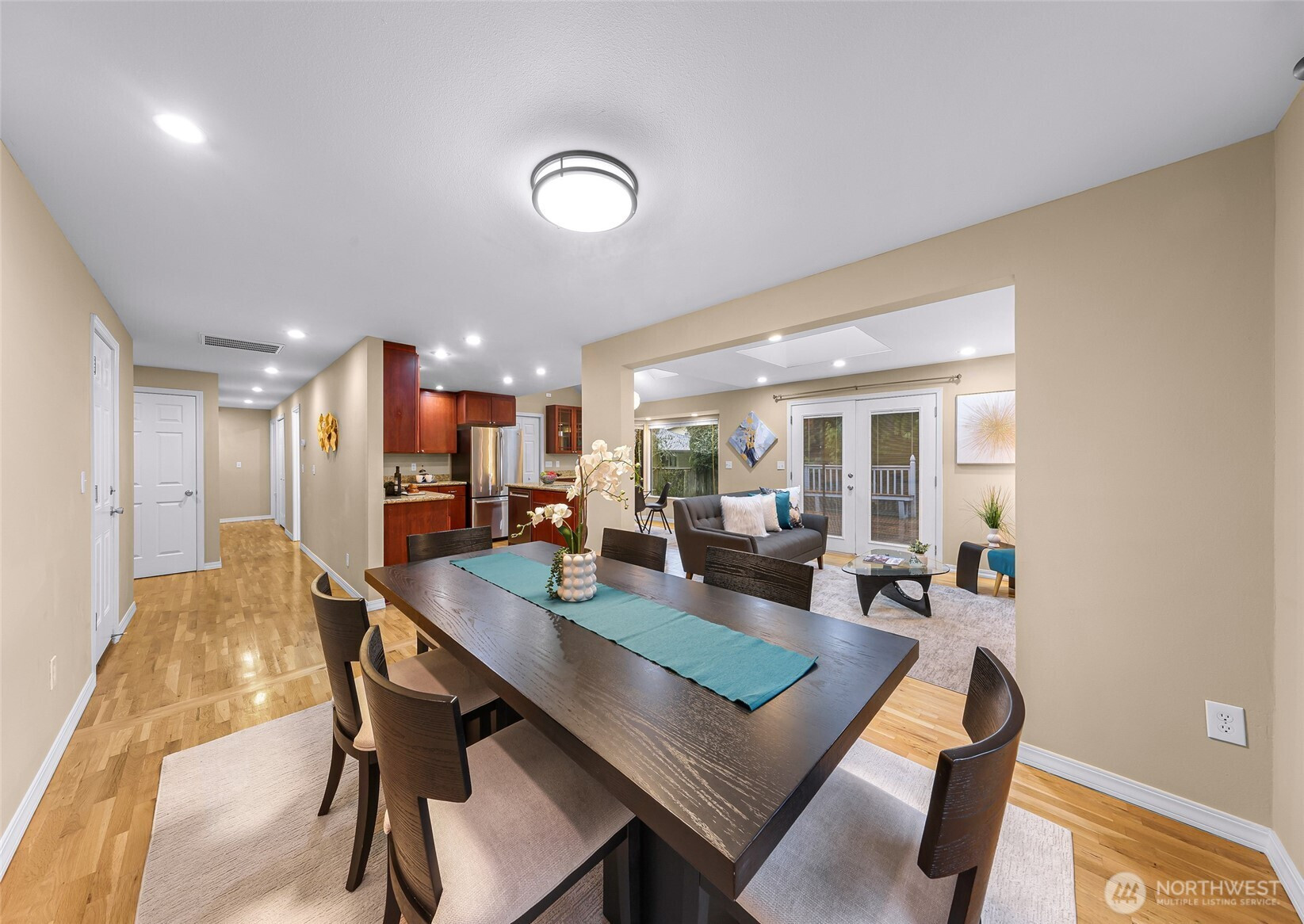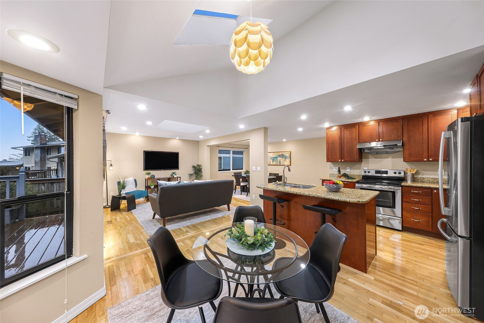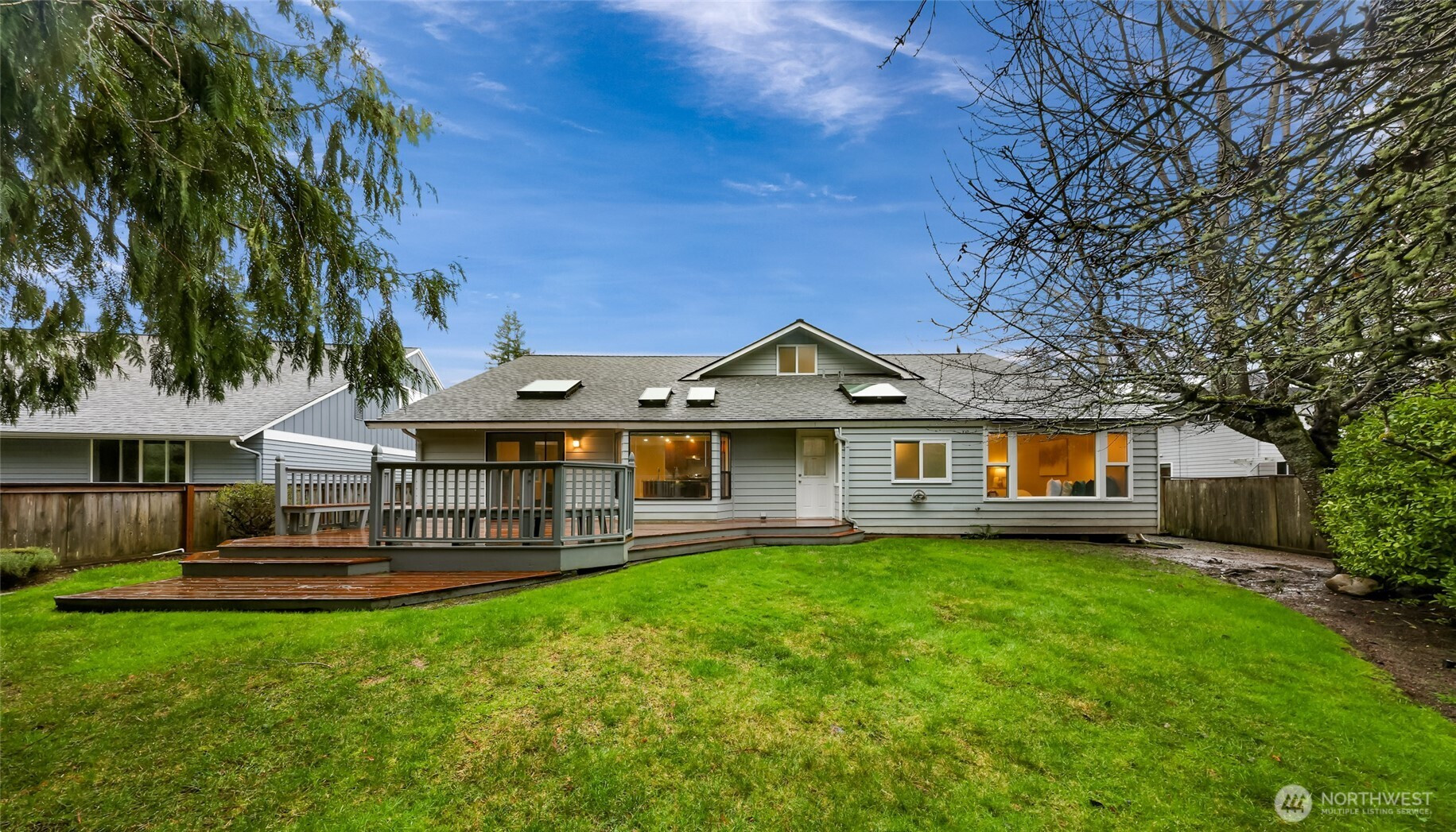 Over 3,000 sq ft of classic PNW design beautifully updated throughout! Just minutes to Microsoft & Crossroads, walking distance to top-rated schools -Interlake HS & Sherwood Elementary. Thoughtful floorplan features hardwood floors on main & lots of large windows & skylights allows tons of natural light! Living room w/wood burning FP off entry. Open great-room kitchen w/island & nook flows easily into family & dining rooms, making it ideal for everyday living & entertaining. Spacious primary retreat w/bump out sitting area & elegant 3/4 bath. Large & flexible upstairs to use as you wish (plenty of space to add 2nd kitchen). Flat, fully fenced backyard w/large deck for outdoor enjoyment. Pre-inspected, move-in ready—classic Bellevue living.