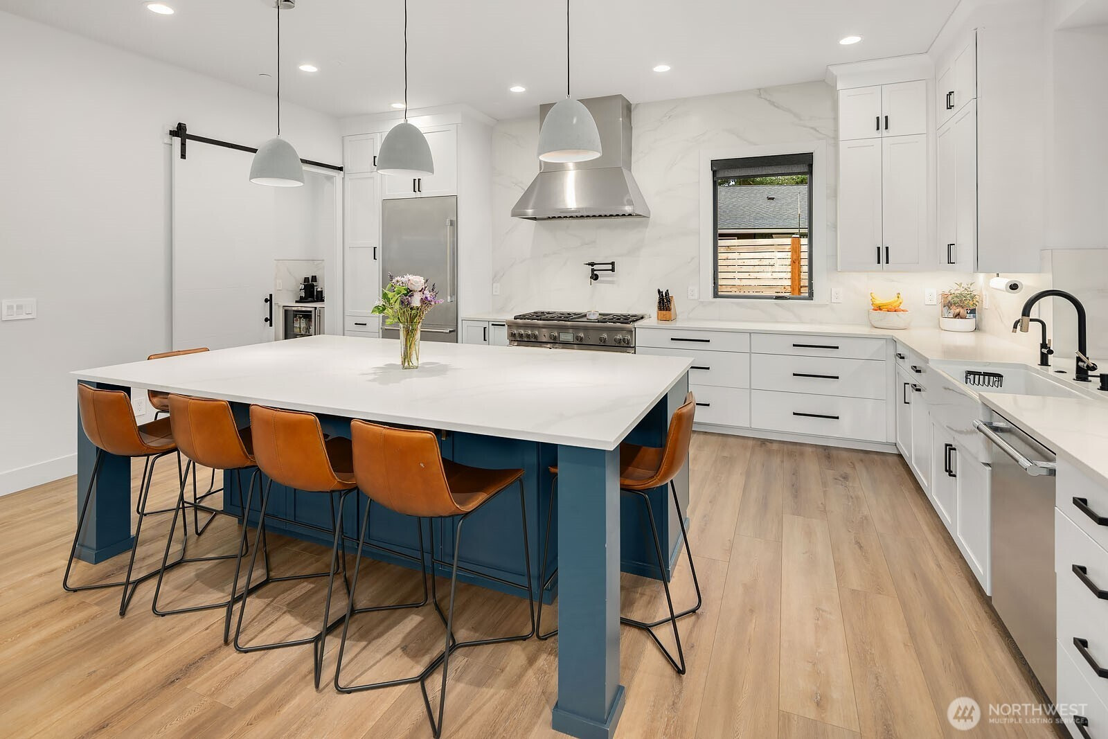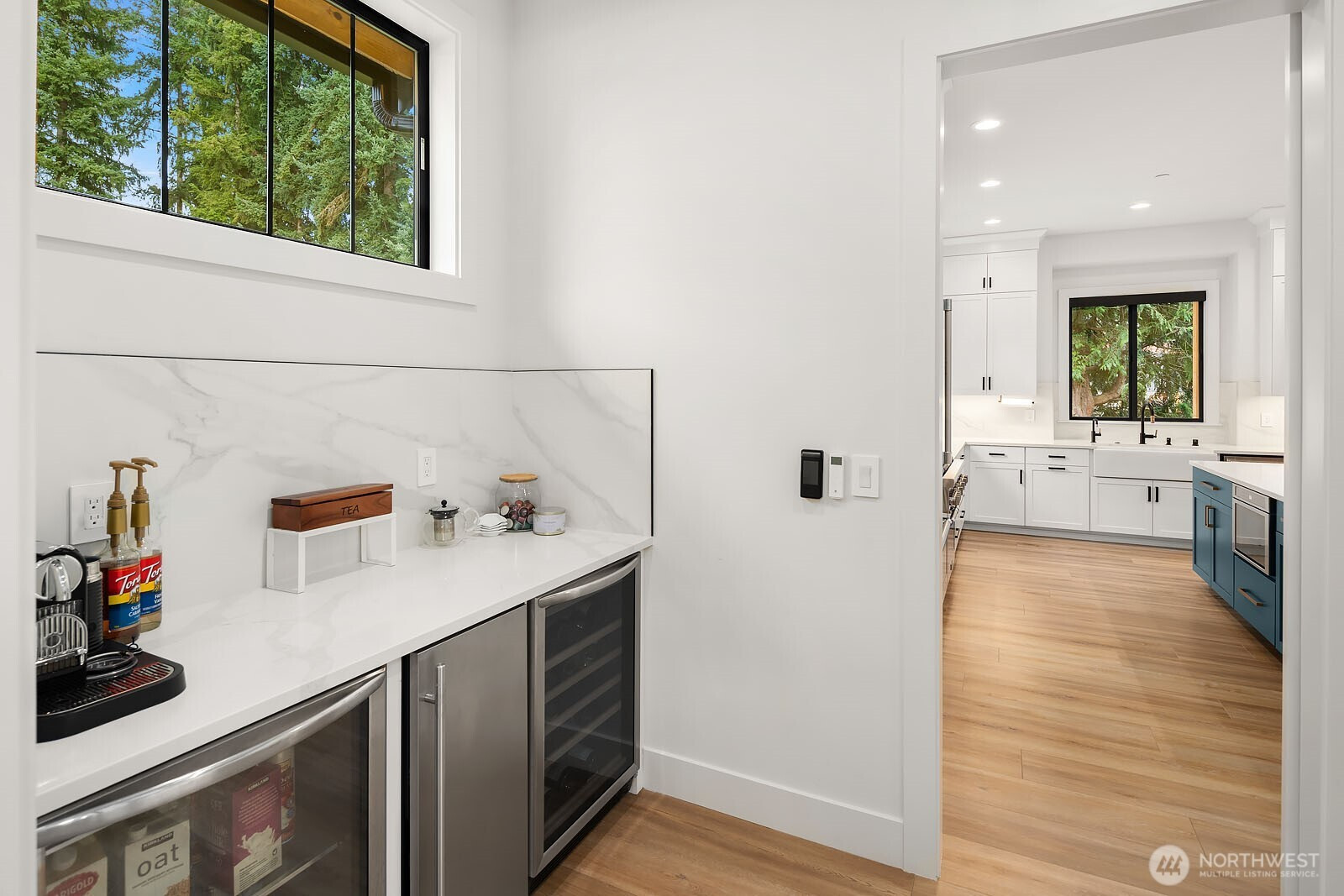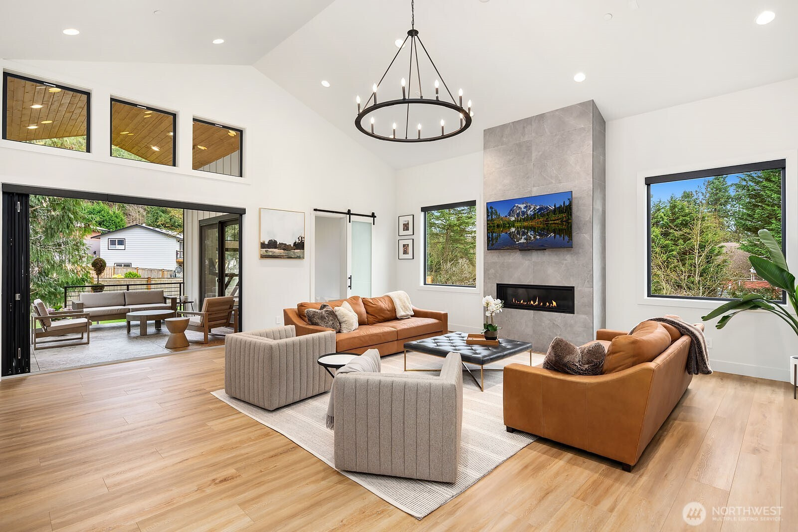 {{Modern Living in Downtown Woodinville}} Design-forward and expertly executed, this 4,120 sq ft. 4-bedroom Woodinville residence delivers modern luxury with warmth and intention throughout. Wide-plank floors, smooth wall finishes, double entry doors, and curated lighting flow into a striking great room anchored by a floor-to-ceiling fireplace. The chef’s kitchen features a 10-ft island, premium Thermador appliances, hidden storage, and a fully appointed butler’s pantry. A main-level guest suite, office study, plus a studio featuring heated floors with patio access offer exceptional first-floor living flexibility. The primary suite is thoughtfully designed with heated floors, a steam shower, and a huge soaking tub. The second level includes two additional spacious bedrooms with walk-in closets & custom packages, one with a private ensuite, plus a bonus loft area ideal for flexible living. NanaWall opens to outdoor spaces, including a covered patio, level yard, and garden space. 2-car garage with ample storage, RV parking, and room for a shop and/or ADU round out the grounds. Ideally located and walkable within minutes to downtown Woodinville, its renowned wineries, amenities, and convenient access to Redmond, Bellevue, and Seattle. A rare offering where thoughtful design, modern comfort, and walkable Woodinville living come together effortlessly on a private 1/2 acre lot.