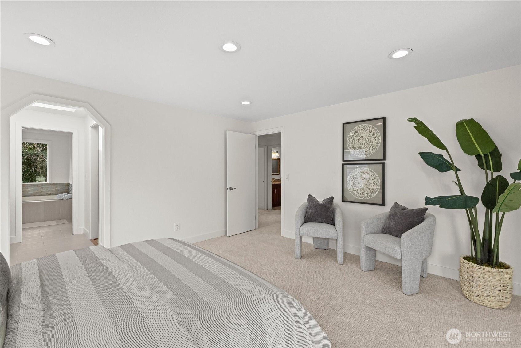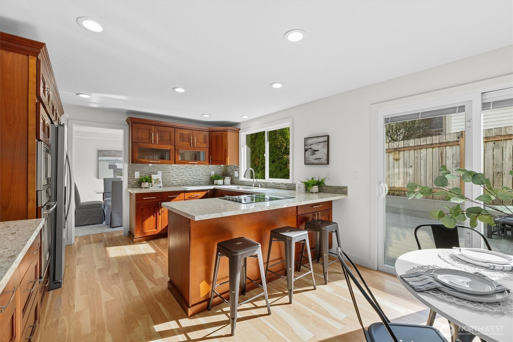 Location & Light! Nestled on a coveted cul-de-sac in Redmond, this beautifully updated home offers the perfect combination of natural light, modern comfort, and an unbeatable Eastside address. Skylights throughout fill every room with a bright, airy warmth, while fresh interior and exterior paint, new carpet, and refreshed trim, doors, and closets make it truly move-in ready. The spacious primary suite is a genuine retreat, featuring a California Closets walk-in and a recently updated ensuite shower. Upstairs, a versatile loft adapts effortlessly to your lifestyle — home office, reading lounge, or creative escape — and two separate entries add everyday formal and functional flexibility that modern living demands. Outside, a brand-new Trex deck overlooks a fully fenced yard lush with greenery, perfect for summer gatherings or peaceful evenings at home. All of this just minutes from Microsoft, Highway 520, Redmond Town Center, Marymoor Park, and Lake Sammamish parks and trails — with top-rated Audubon Elementary, Rose Hill Middle School, and Lake Washington High School rounding out one of the Eastside's most complete lifestyle packages.